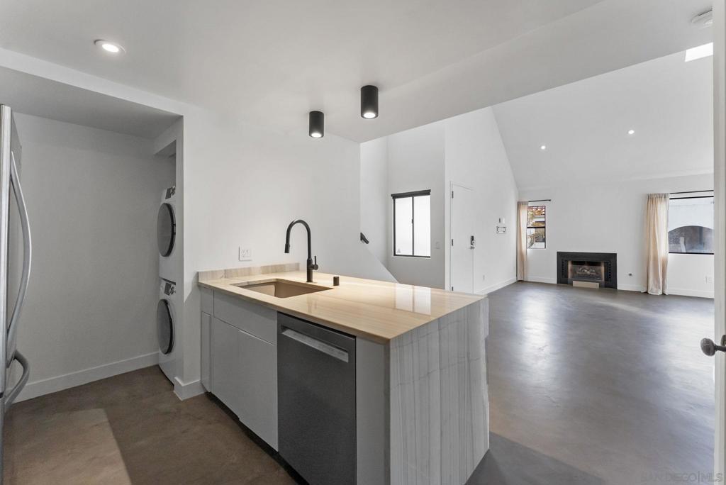 Experience elevated urban living in this beautiful top-floor modern loft-style condo at Park Row, perfectly designed for those who appreciate contemporary architecture, clean lines, and effortless style. This spacious 2-bedroom residence features dramatic ceiling heights, polished concrete floors, and an open-concept layout that blends form and function. The sleek kitchen is a focal point, showcasing modern cabinetry, premium appliances, and an ideal flow into the living and dining areas. Large windows fill the space with natural light, leading you out to a west-facing balcony where you can unwind each evening with panoramic sunset views and the glow of the downtown skyline. The primary bedroom is conveniently located on the main floor, offering a peaceful retreat with a stunning ensuite bathroom finished in contemporary, spa-inspired materials. Upstairs, the open loft provides a versatile second bedroom, office, or creative space—ideal for guests or flexible living. Additional features include one secure garage parking space and access to an impressive suite of amenities, including a resort-style pool, and a stylish clubhouse perfect for gatherings or a change of scenery while working from home. Situated in the heart of downtown, you're truly close to everything—waterfront park, top-rated dining, cafés, boutiques, and the buzzing lifestyle of Little Italy and the Marina District. The San Diego Bay is only a couple minutes’ walk away, providing an unbeatable connection to the outdoors. Modern design, premier amenities, and an unbeatable location.