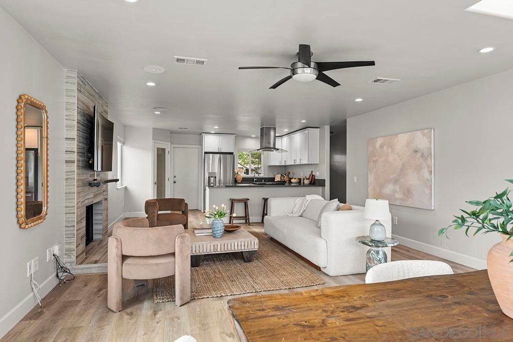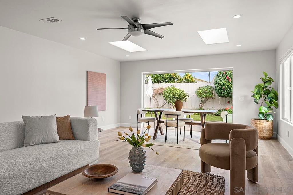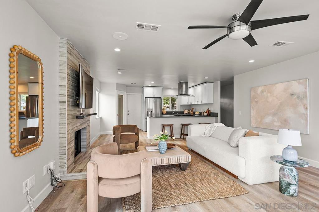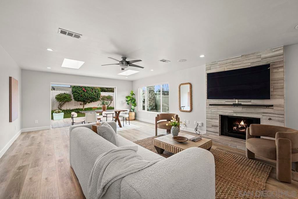 Clairemont Glam!!! Totally remodeled, newly paint throughout, new flooring, new refrigerator and gas stove. Kitchen and both baths remodeled in the recent past. Solar!! All rooms at least 20% larger than the average. XXL all 3-bedrooms, 2-bathrooms. 2 large walk-in-closets. This home offers comfort, flexibility, and an ideal indoor/outdoor lifestyle living with full Cantina Doors. Bright, inviting living spaces flow easily on to the manicured with lemon, lime, grapefruit and other fruit trees. Centrally located quick access to freeway, La Jolla beaches, parks, local eateries, shopping, schools, colleges. The best of San Diego living!!!