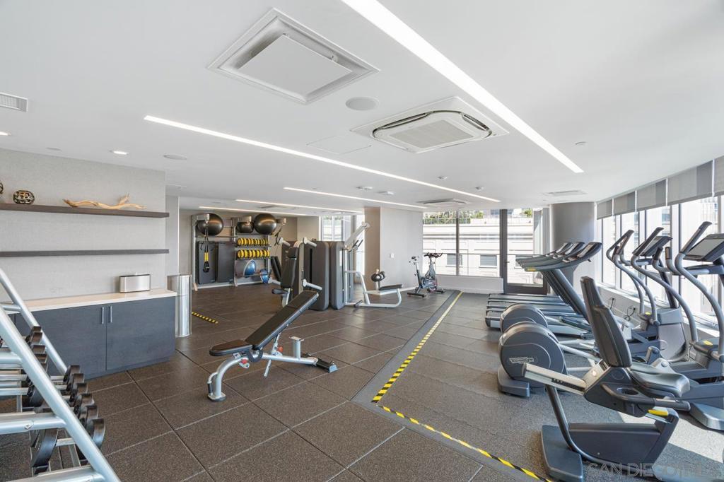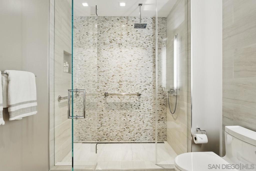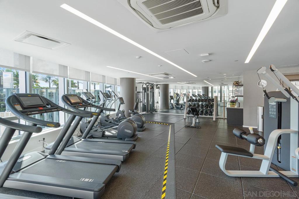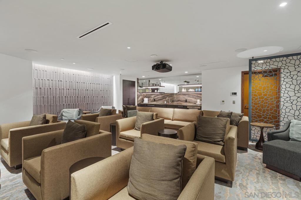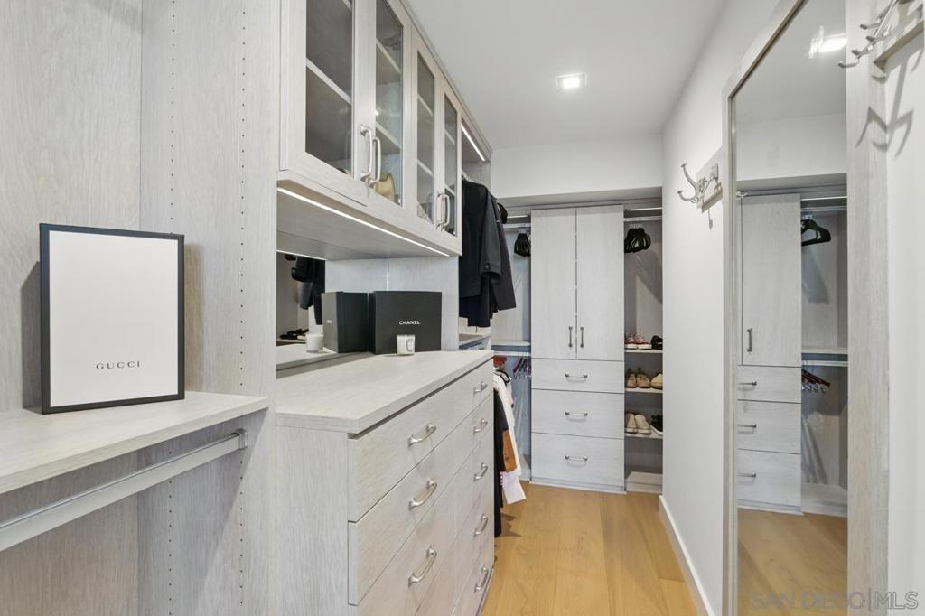Turnkey and ready to enjoy day one! Designer furnishings included. Discover refined coastal living at the Super Prime building Pacific Gate, the crown jewel of San Diego’s skyline. This updated and unique residence is one of just 5 units on the 5th floor and has a layout and placement equivalent to an ‘06 unit and is just one floor above the amenity deck for ultimate convenience. This home features designer lighting and an audio visual system with premium surround sound, floor-to-ceiling windows with automatic shades, high end Wolf and Sub-Zero appliances, motorized upper cabinets made of walnut, luxury hardwood flooring, marble tile, and more. The spacious primary suite offers sunny tree top views and is joined by a spa-inspired bathroom featuring heated floors, a walk-in shower, soaking tub, dual vanities, and an LED mirror with integrated TV. Attached is a custom walk-in closet offering elevated storage. The second bedroom makes a fantastic office or cozy guest quarters. A generously sized and covered (shaded) private outdoor area extends directly from the main living space. This home also includes fantastic underground parking. The unit has two premium ADA accessible corner parking spaces (not tandem!) and two! private storage lockers all located on P1. Residents at Pacific Gate enjoy unparalleled amenities: 24-hour concierge service, a 45-foot yacht share, luxury car fleet, movie lounge, business center, doggy station, bike room, residents’ lounge with catering kitchen, a fully equipped fitness center featuring a sauna and steam room, and a resort-style pool terrace with cabanas and grilling stations just one floor below. Next door to some of San Diego’s best waterfront restaurants and cultural destinations. It’s the ultimate living and travel hub location.