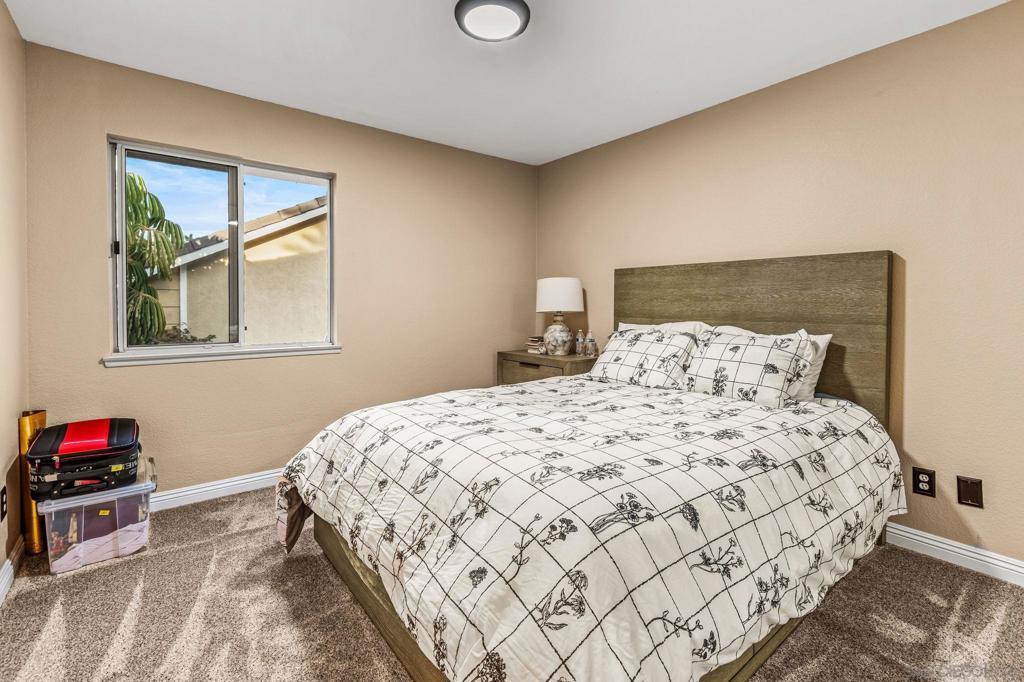 Exquisite two-story residence offering 4 bedrooms and 3 bathrooms with a bright, open floor plan and soaring ceilings. Abundant natural light throughout enhances the home’s refined yet inviting design. Features include wood flooring, granite countertops with granite backsplash, and an open-concept kitchen with modern appliances and walk-in pantry, flowing seamlessly into the family room with fireplace—ideal for entertaining. A full bedroom and bathroom on the main level provides flexibility for guests, multigenerational living, or a home office. All bathrooms have been fully remodeled with elegant tile work. The upstairs primary suite offers tranquil treetop views and a spa-inspired en-suite with natural stone walk-in shower, oversized soaking tub, dual sinks, ample storage, and walk-in closet with organizers. Two additional bedrooms share a dual-sink bath. Private backyard with no neighbors behind, featuring low-maintenance turf, fruit trees, and 30-ft enclosed dog run. Near Libby Lake Park and approx. 8 miles to Oceanside Pier and Beach.