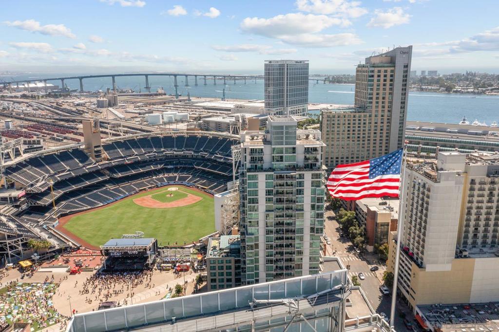 Welcome to Residence 1901, a rare opportunity to own in The Legend—the only luxury high-rise built inside the gates of Petco Park. Perched above the city, this stunning condo blends modern design with one-of-a-kind views, placing you at the center of San Diego’s vibrant downtown lifestyle. Step inside to find brand-new flooring, an open-concept kitchen, and dramatic floor-to-ceiling windows that flood the space with natural light. The private balcony is perfect for morning coffee or evening cocktails while enjoying panoramic skyline views. Two beautifully finished marble bathrooms add a touch of timeless elegance, and the residence also includes a dedicated storage unit and secure parking. At The Legend, every detail is designed for resort-style living. Amenities include a grand lobby with full-time front desk staff, sparkling pool and spa, state-of-the-art fitness center, and an expansive 7th-floor rooftop deck overlooking the Padres’ home plate—arguably the best sports-viewing deck in the city. You’ll also enjoy an outdoor lounge with barbecue grills and direct views into Gallagher Square for concerts and events. Beyond the building, some of San Diego’s best restaurants, coffee shops, and nightlife are just steps away. The Bayfront, Gaslamp Quarter, Seaport Village, and Convention Center are all within walking distance, making this residence the perfect blend of excitement, convenience, and comfort. Residence 1901 isn’t just a home—it’s a front-row seat to the best of San Diego.