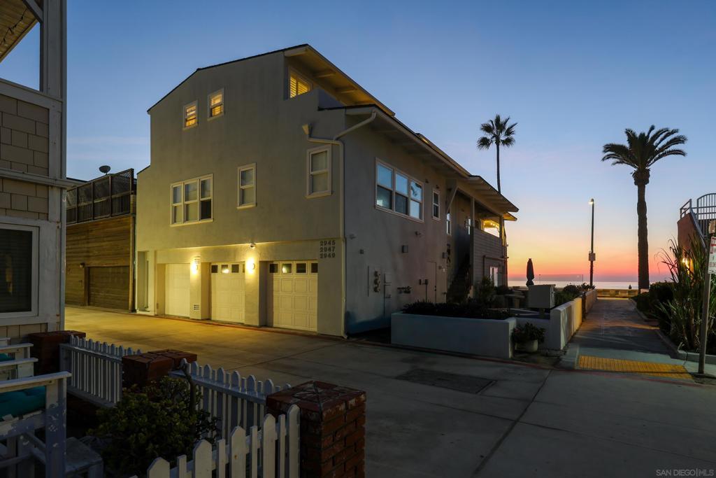 Introducing an extraordinary oceanfront residence at 2949 Ocean Front Walk, where elevated coastal living meets the rare luxury of a private beachfront retreat. Perfectly positioned along San Diego’s most prestigious oceanfront corridor, this top-floor sanctuary offers a lifestyle that seamlessly blends panoramic vantage points with direct proximity to the sand—an exceptional combination seldom found on the coastline. Awash in natural light, the residence is illuminated by skylights throughout and expansive floor-to-ceiling windows that frame endless ocean views and dramatic sunset skies. The three-bedroom, three-full-bath layout provides a thoughtful balance of comfort and discretion, while three private balconies offer intimate ocean outlooks and refreshing sea breezes. What truly sets this property apart is the bonus ground-level patio, a rare and highly coveted feature that places you just steps from the sand while maintaining a sense of exclusivity and retreat. This unique outdoor space offers the ease and immediacy of beachfront living while the elevated residence above provides privacy and commanding views. Completing this exceptional offering is an attached tandem two-car garage, an invaluable luxury along the oceanfront and a defining element of convenience and prestige. A residence of rare distinction, offering the best of both worlds—elevated ocean views above and private beachfront access below. This is coastal luxury, masterfully realized. Please see matterport and virtual tour. Just a couple of blocks to Belmont Park and all of Mission Beach's best restaurants, shops, and fun! Bay is right across Mission Blvd. Seller may need short rentback.