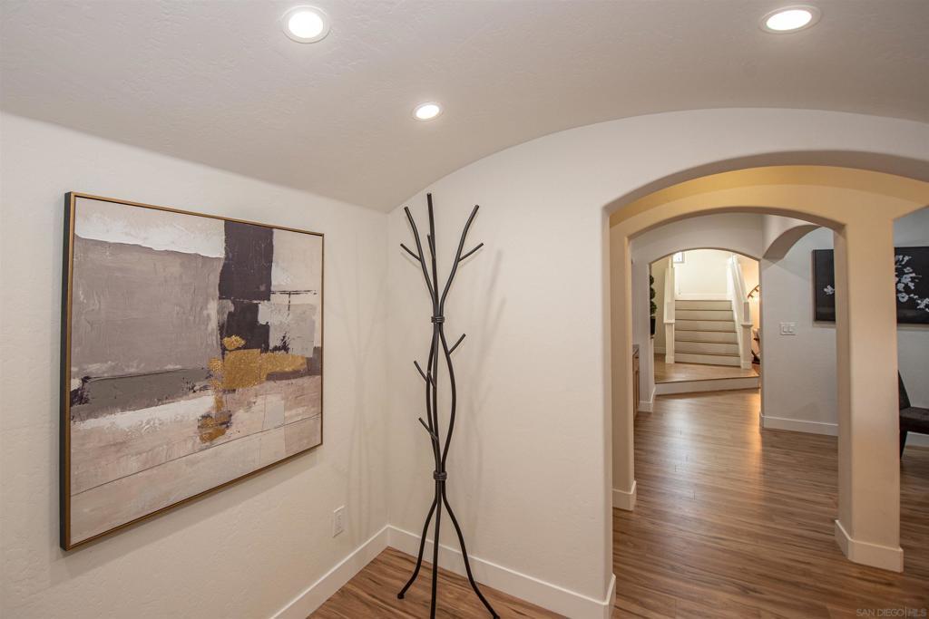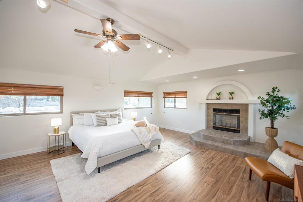 No need to look further! This beautiful 4 bdrm, 3 bth home located in Poway, the "city in the country", has been lovingly remodeled and is ready for you and your loved ones to make your own. As you step inside, the home greets you with a warm hug, welcoming you to the large gourmet kitchen, perfect for anyone who loves to cook. Equipted with a gleaming Viking double oven, 2 new side by side refrigerators, Lg pantry, and an island perfect for enjoying a quick meal. Separate laundry room with new cabinets, countertops, and folding station. Mohawk laminate wood flooring throughout, including stairmaster LVT in kitchen & laundry room. Spacious family room with crackling fireplace, perfect for social gatherings and/or game night. Large bonus room with many possibilities including the potential for an ADU with its own private entrance. The home features central air and heat and a whole-house fan that cools everything down in minutes. owned solar panels ensuring comfort and energy efficiency year-round. Two bedrooms and remodeled baths conveniently located downstairs. Upstairs the beautiful primary suite awaits, complete with it's own fireplace and adjoining room perfect for an office, gym, guest room, reading nook or whatever you choose. The home main has been upgraded with 3/4" copper piping, 1/2" in attic. New paver driveway and walkways, new retaining wall, 3 backyard sheds, one wired, BBQ area. Front porch is perfect for enjoying sunsets in a friendly community atmosphere. No HOA or Mello Roos,RV'S PERMITTTED. esteemed Poway Unified schools.