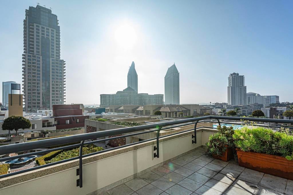 Deliberately conceived as a Terrace Level "penthouse" and distinguished as being uniquely one of over 70 different floor plans, MERIDIAN 501 presents a rarefied opportunity to immediately enjoy a just-completed dramatic remodel that offers a totally unexpected urban oasis. Impeccably crafted, sleek, modern bespoke interiors are both timeless and thoughtfully designed. Gleaming marble floors, polished cabinetry, top-of-the-line fixtures and appliances, abundant storage, high ceilings, and wraparound luminous interiors with walls of glass and sliding doors complement the inviting spacious living and entertaining areas. Located on the 5th floor, offering privacy and the luxury of space are the primary suite and second bedroom en suite. For the ultimate in convenience, there is the clever kitchenette with a sink, dishwasher, Sub-Zero refrigerator/freezer, and generous space for the cappuccino maker to start your day or nightcap refreshments as you wish. Unexpected are the luminous interiors that seamlessly flow to the outdoors. Each bedroom hosts an expansive open terrace overlooking the well-maintained European-styled formal gardens and the host of other inviting resort-style amenities just steps away on the 2/3-acre outdoor plaza. Gracious entertaining and design options abound on the 4th floor Plaza level with two entrances, walls for art and personal treasures, a grand-scaled kitchen for the serious gourmet chef, a flexible separate dining/library/den space, and more. The coveted wraparound courtyard offers a continuous alfresco living experience to make your own. MERIDIAN CONDOMINIUMS, a landmark residential community deliberately conceived and impeccably crafted, remains without peer. Incomparable services are offered by an attentive staff consisting of 24 hour Parking Attendants for Residents and their Guests, Door Person, Porter, Concierge and more. A completely separate service entry with loading dock and service elevator is staffed with Porters to accept packages, deliveries and tradespeople. For your convenience, groceries, packages, dry cleaning, luggage and more can be delivered to your door. Impeccably maintained, pride of ownership abounds. Whether you are entertaining on a grand scale or merely relaxing by the sparkling pool, MERIDIAN’s accommodations are sure to exceed your expectations. Greeted by a sophisticated private art gallery, the Plaza Level boasts limitless accommodations to guests and residents alike. The MERIDIAN Room, designed with a catering kitchen, bar, cloakroom, and restrooms offers an elegant entertaining environment for both large-scale and intimate parties. Elegant formal gardens, a grove of citrus trees, an outdoor spa and adjoining fire pit complement the inviting pool and lounging/sunning areas on the unique 2/3 of an acre outdoor plaza elevated high above the cityscape. Other features adding to the convenience and comfort at MERIDIAN include two resort-caliber spa and fitness facilities, five lovely Guest Suites to welcome visiting friends and family, and Conference Room ideal for business meetings and presentations or small-scale entertaining. At the foot of MERIDIAN lies MERIDIAN PLACE, offering a myriad of fine retailers to conveniently complete the needs of your lifestyle. Salon and spa services, cosmetic dentistry, medical services, dry cleaning, fine dining, and much more are literally an elevator ride away. Take advantage of MERIDIAN’s premier downtown location and explore the countless restaurants, cultural attractions, and miles of scenic pathways. Enjoy a lifestyle that is without parallel . . . enjoy MERIDIAN living!
