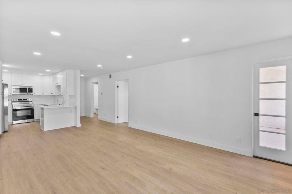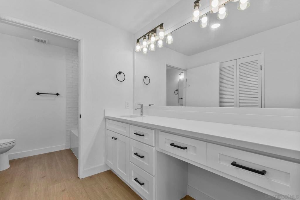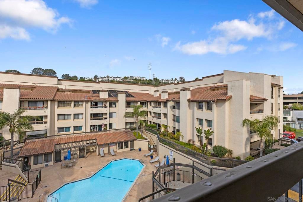 Fully remodeled top-floor 1 bed, 1 full bathroom plus an additional powder room, with brand new appliances—and the rare convenience of a private single-car garage and private on-site storage room! Step into a modern, move-in ready home featuring an open layout, luxury vinyl plank flooring, recessed lighting, and fresh paint throughout. The upgraded kitchen includes brand new quartz countertops, shaker-style cabinets, and all-new stainless-steel appliances including a refrigerator, dishwasher, electric range, and built-in microwave. The home offers a unique setup with three separate sink areas, a dedicated makeup vanity, and a beautifully updated shower. Enjoy indoor-outdoor living with a private balcony overlooking the pool and scenic mountain views. Located in a quiet, well-maintained community within walking distance to Fashion Valley Mall and minutes to Mission Bay, USD, downtown, and major freeways, and positioned next to the transformative Riverwalk development for exceptional convenience, future upside, and walkability. ***