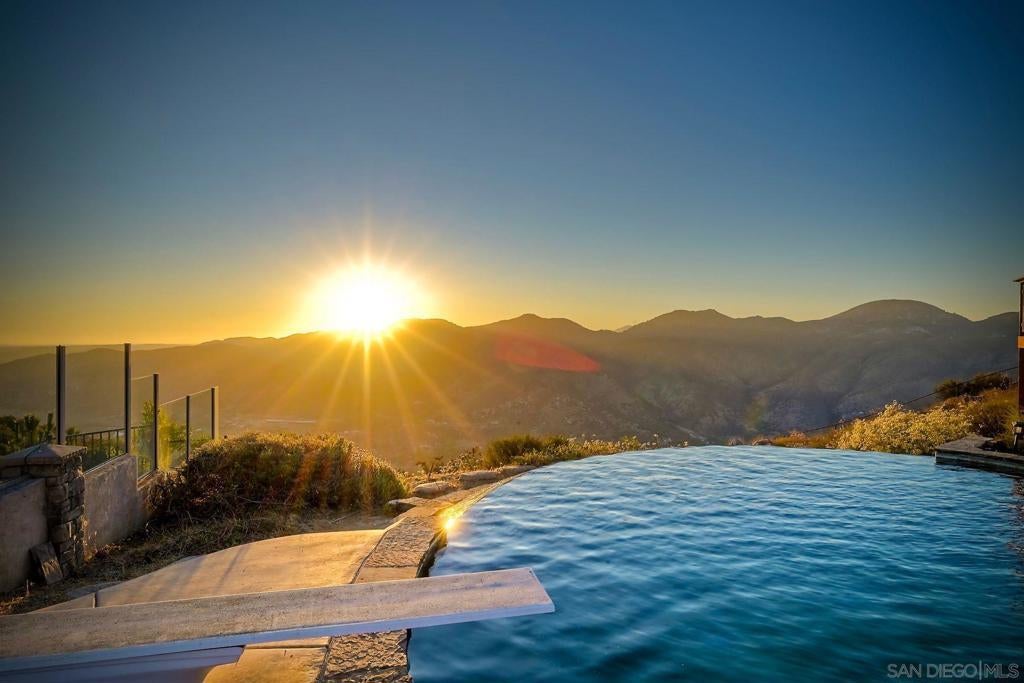 Perched atop a tranquil hillside in the highly coveted Blossom Valley, this exceptional estate delivers the ultimate private resort-style living experience. Enjoy sweeping panoramas, breathtaking views of Lake Jennings, and unforgettable sunsets that transform the sky into a living work of art. Elegance meets comfort in a thoughtfully designed layout. The main level offers a full bedroom and bath, along with both formal living and family rooms, each warmed by its own cozy fireplace. The gourmet kitchen is a chef’s dream, seamlessly connecting to the formal dining area—perfect for both everyday living and elevated entertaining. Designed for true indoor-outdoor living, the home opens to a spectacular backyard retreat. Host intimate dinners or lively gatherings while enjoying tranquil water features, a shimmering Infinity-edge pool with rockslide, a serene grotto waterfall, and a luxurious spa—beautifully illuminated at night to create a magical ambiance. Grill, dine alfresco, swim, relax, or simply unwind in your own private sanctuary. The primary suite is a retreat unto itself, featuring a spacious sitting area with fireplace, an expansive walk-in closet, dual vanities, oversized enclosed shower, and a deep soaking tub—ideal for relaxing after a long day. If breathtaking views, refined luxury, and peaceful seclusion are at the top of your wish list, this mountaintop gem is the home you’ve been waiting for. Short Term and Long Term Lease available