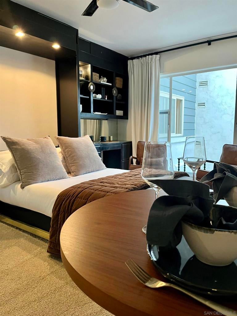MID- & LONG-TERM FURNISHED RENTAL — La Jolla Studio with Private Beach Access Experience La Jolla from a truly rare oceanfront setting. This thoughtfully designed studio is available for mid- and long-term stays only and is located within an oceanfront complex offering direct access to the Pacific, a shared oceanfront patio, and a private beach experience just steps from the door. The studio features a smart, efficient layout with a queen Murphy bed that transforms the space from a comfortable sleeping area at night into an open living space during the day. Thoughtful furnishings create a cozy place to relax after time by the ocean. The compact kitchen includes a refrigerator, induction cooktop, toaster oven, and essential kitchenware—ideal for simple meals and easy evenings at home. Complimentary shared washer and dryer are available within the complex. While the studio itself is interior to the building, the outdoor experience is exceptional. From the ocean-facing exit, walk down six steps and open directly onto the Pacific. At high tide, the water sits just beyond the threshold, creating a unique, boat-like sensation. A shared oceanfront patio with seating offers front-row views of sunsets, tide changes, and marine life. Just steps in the opposite direction is Marine Street Beach, perfect for swimming, sunbathing, and peaceful shoreline walks. Sleeping Setup (max 2): Queen Murphy Bed 1 Bathroom Rates vary by season and length of stay. Please inquire for exact pricing and availability. NXT offers short, mid, and long-term furnished rentals throughout San Diego. View live