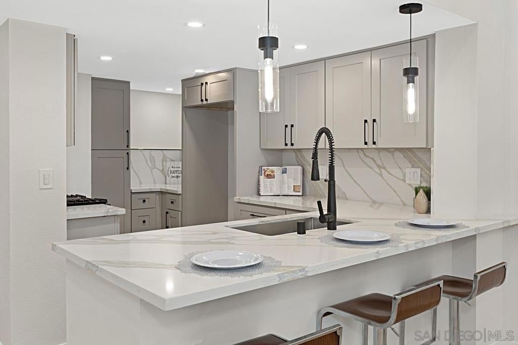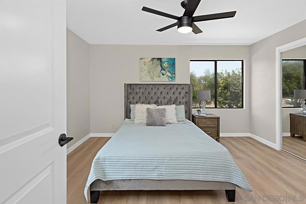 Gorgeous, move-in ready 2-bedroom, 1-bath upper-level condo in the heart of Scripps Ranch, offering modern finishes, resort-style amenities, and an exceptionally convenient location. This beautifully remodeled home features an efficient open-concept floor plan designed for low-maintenance living. Recent upgrades include all-new flooring, fresh interior paint, new doors, and updated cabinetry in today’s top designer colors. The stunning kitchen showcases stainless steel appliances, quartz countertops, and a full quartz backsplash, flowing seamlessly into the living and dining areas. Vaulted ceilings enhance the space, creating a bright, airy feel throughout. The spa-inspired bathroom is finished with quartz countertops and elegant designer tile accents. Enjoy the best of indoor-outdoor living with a private balcony overlooking lush, tree-lined views—perfect for morning coffee or unwinding at the end of the day. The west-facing front door and east-facing patio with sliding glass door provide beautiful natural light throughout the day. The well-maintained community offers multiple sparkling pools, mature landscaping, and a peaceful residential atmosphere. Ideally located just minutes from I-15 freeway access, shopping, dining, and outdoor recreation, this home delivers the perfect balance of style, comfort, and convenience in one of **San Diego’s most desirable neighborhoods.