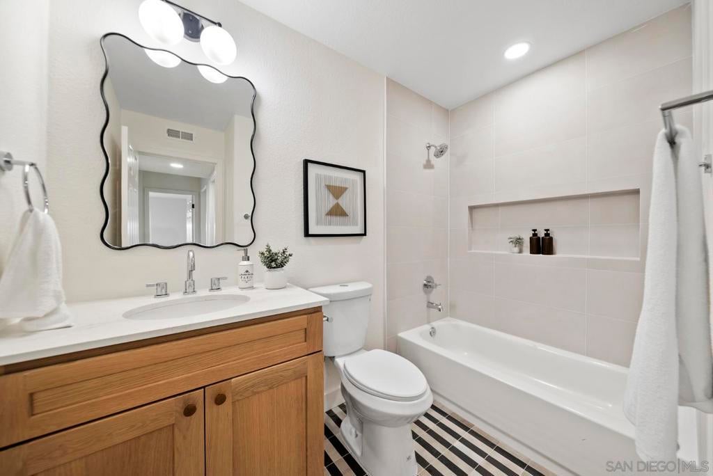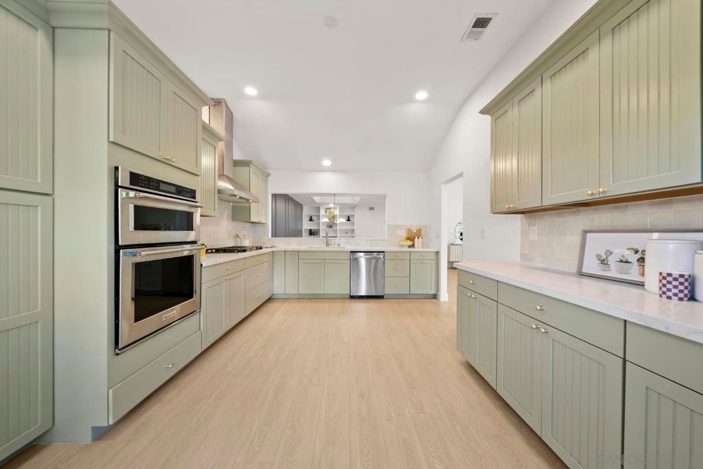 Situated on a quiet cul-de-sac in sought-after Ocean Hills, this newly remodeled single-story residence offers 2 beds & 2 baths with a thoughtfully curated, open-concept design. The light-filled living space is enhanced by soaring vaulted ceilings, recessed lighting, and wide-plank flooring, flowing seamlessly into a spacious kitchen appointed with quartz countertops, eye-catching sage cabinetry, breakfast bar, striking tile backsplash, and sleek modern fixtures. Serene primary retreat features a spa-inspired bath with dual vanities and a walk-in tiled shower. Low-maintenance yard with patio area—perfect for enjoying Southern California’s year-round sunshine. Surrounding a private 18-hole golf course, this coveted 55+ community offers exceptional amenities including a heated, Olympic-sized swimming pool, spa, lighted tennis courts, bocce ball courts, fitness center, billiards, and a secure RV storage area. 40 to 50 clubs & classes to stay active and social! Miles of scenic walking paths, biking trails, and a dedicated dog park for outdoors lovers!