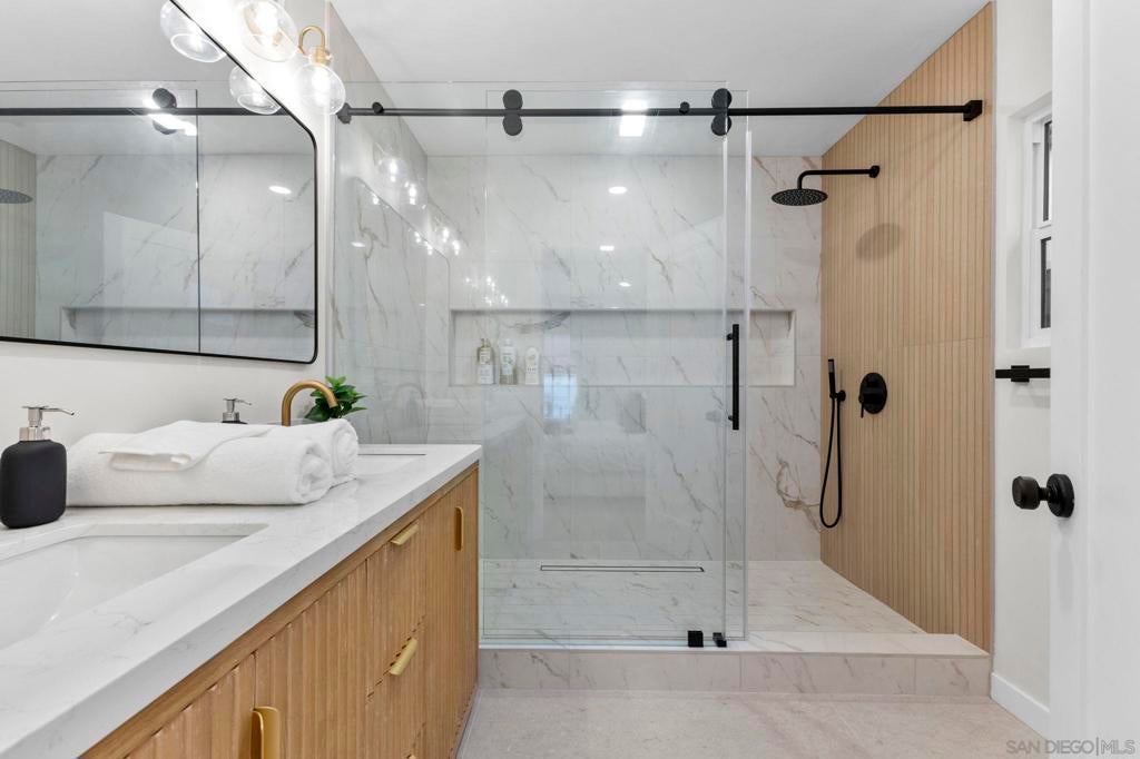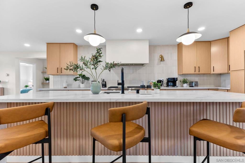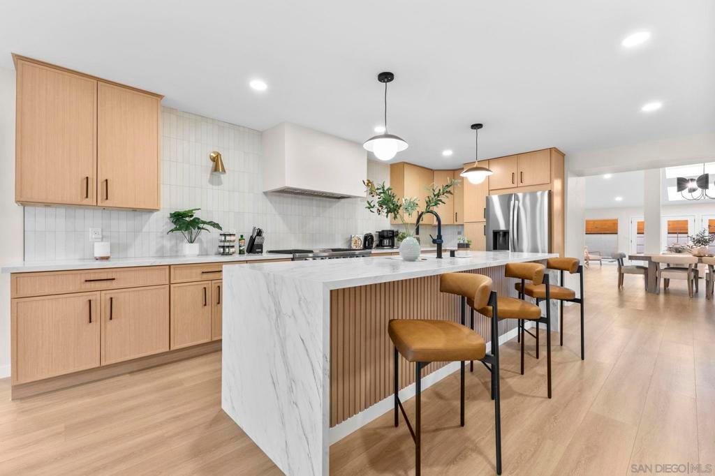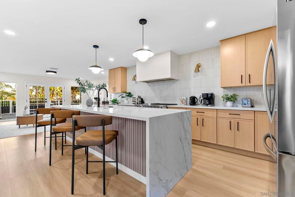 Welcome to this beautifully upgraded 4-bedroom, 2-bath single-family home located on a quiet, non-through street in one of Pacific Beach’s most desirable neighborhoods. Offering approximately 2,660 sq ft of thoughtfully designed living space on a 6,300 sq ft lot, this home seamlessly blends modern upgrades with coastal charm. Inside, enjoy vaulted ceilings, abundant natural light, and two spacious living areas ideal for both daily living and entertaining. The gourmet kitchen features Calacatta countertops, upgraded appliances, and ample storage, while the spa-inspired bathrooms showcase contemporary finishes and a deep soaking tub. The home truly shines outdoors with three private patio areas, a fully fenced yard with real grass, and a backyard kitchen complete with a built-in BBQ and pizza oven. A front deck with peekaboo ocean views adds to the coastal appeal. Additional highlights include all-new major systems (roof, plumbing, electrical, central A/C), an attached garage, ample parking, and a prime location close to beaches, dining, shopping, and top-rated schools. One of the few fully upgraded homes in Pacific Beach priced under $1,000 per square foot—an exceptional value for coastal living.