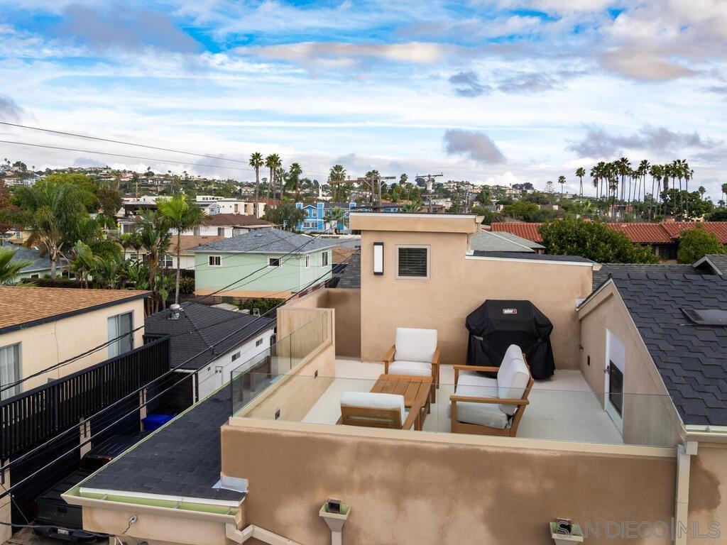 Built in 2018, this North Pacific Beach modern coastal home has been immaculately maintained, boasts high end stainless appliances and designer finishes throughout, and comes with an open and intelligent floor plan perfect for formal entertaining or just casual day to day beach living. The recent addition of a detached, fully permitted 1BR/1BA 602sqft ADU complete with separate entrance, laundry and its own private roof deck, only adds to the flexibility of this offering with just under 3000sqft of total living space. Three blocks to the beach, walk to restaurants, shops, and both elementary and middle schools. Enjoy bay, ocean and coastline views south to the Coronados. see supplement for more property details... The main house is 2331sqft, with 3BR/3.5BA, an optional den/family room/office on main floor and an additional suite on the 3rd level with full bath, wet bar area, wine fridge, and expansive deck with fireplace and views of the coastline to the south. Finishes include shaker cabinets in the kitchen, quartz counters, Jenn-Air extra wide range with hood and pot-filler and custom back splash. La Cantina doors open from the family room to the front patio, while large wall to wall sliders open the living area to the back yard patio providing a seamless flow of indoor/outdoor living. The master suite has its own private lanai, fireplace, walk in closet and bath with custom tile work and fixtures, rainfall shower and separate tub. There's a 2-car detached garage off the alley with ample height for overhead storage. Above the garage sits the newly constructed ADU, providing an additional 602sqft (as per plans) of living space with the same quality of finishes as the main house. The ADU has its own private entry, separate bedroom from living area, laundry closet and a large private roof deck with views. ***Please note the main house is 3BR/3.5BA 2331sqft (assessor's records), ADU is a 1BR/1BA 602sqft (as per approved plans, not yet in assessor's records). MLS description of property combines both.
