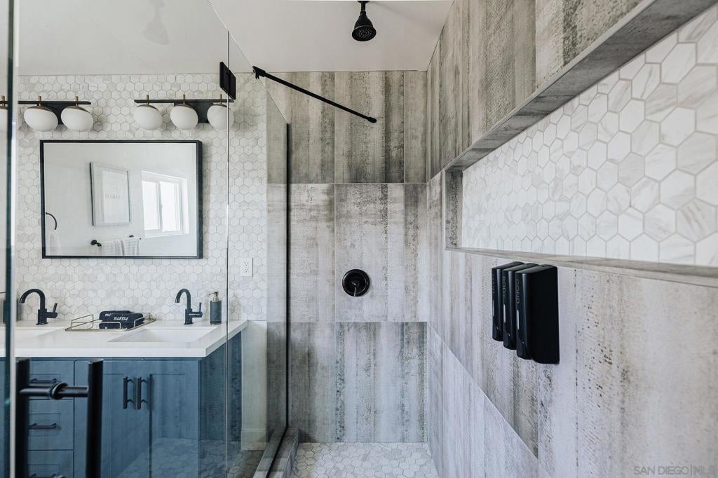 Welcome to your modern coastal retreat in the heart of Ocean Beach! This fully remodeled 3-bedroom, 2-bathroom home has been thoughtfully designed with high-end furniture, designer finishes, and a seamless open floor plan that invites effortless indoor-outdoor living. Sliding glass doors connect the living spaces to both front and back decks, creating the perfect flow for entertaining or relaxing. The gourmet kitchen features an oversized island, stainless steel appliances, and ample storage, opening to the spacious living room with a pool table, large-screen TV, and plenty of seating. The primary suite offers a spa-like bathroom with a dual shower, while two additional bedrooms provide flexible accommodations for family and guests. Outside, a true backyard oasis awaits, complete with a covered jacuzzi, propane BBQ, outdoor dining and lounge areas, turf game zone with bocce, corn hole, and ring toss, as well as string lighting for magical evenings. Additional highlights include central A/C and heat, EV charger, 2-car garage plus driveway parking, laundry, fast WiFi, and kid- and dog-friendly amenities. Ideally located just minutes from the beach, Ocean Beach pier, dining, shopping, and surf, this home offers the perfect blend of modern comfort and coastal charm. Welcome to your modern coastal retreat in the heart of Ocean Beach! This fully remodeled 3-bedroom, 2-bathroom home has been thoughtfully designed with high-end furniture, designer finishes, and a seamless open floor plan that invites effortless indoor-outdoor living. Sliding glass doors connect the living spaces to both front and back decks, creating the perfect flow for entertaining or relaxing. The gourmet kitchen features an oversized island, stainless steel appliances, and ample storage, opening to the spacious living room with a pool table, large-screen TV, and plenty of seating. The primary suite offers a spa-like bathroom with a dual shower, while two additional bedrooms provide flexible accommodations for family and guests. Outside, a true backyard oasis awaits, complete with a covered jacuzzi, propane BBQ, outdoor dining and lounge areas, turf game zone with bocce, corn hole, and ring toss, as well as string lighting for magical evenings. Additional highlights include central A/C and heat, EV charger, 2-car garage plus driveway parking, laundry, fast WiFi, and kid- and dog-friendly amenities. Ideally located just minutes from the beach, Ocean Beach pier, dining, shopping, and surf, this home offers the perfect blend of modern comfort and coastal charm.