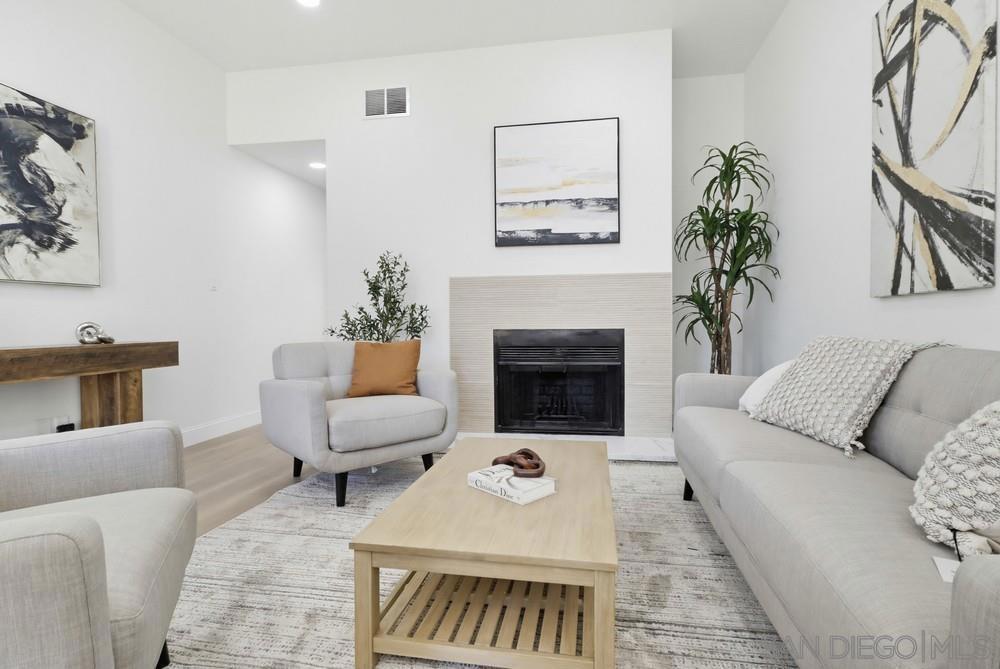 Discover this rare end-corner unit in the desirable Corsica community—a beautifully renovated 2-bedroom, 2-bathroom townhome-style condo that blends modern coastal vibes with everyday comfort and convenience. Step inside to light-filled living spaces featuring modern luxury vinyl plank flooring and fresh paint throughout, creating a bright and inviting oasis. The open-concept main level flows seamlessly from the stunning renovated kitchen—complete with sleek quartz countertops, new white shaker cabinets and stainless-steel appliances. Intimate dining room and expansive living room with soaring vaulted ceilings and a contemporary fireplace surround. Elegant plantation shutters adorn the windows, offering perfect light control and enhanced privacy. Both bathrooms have been fully renovated with tasteful, high-end finishes for a spa-like feel. Enjoy the convenience of in-unit full-size laundry, making chores a breeze. Practicality meets style with an attached single-car garage offering direct interior access, plus an additional assigned parking spot right out front and plenty of guest parking available. Residents love the resort-style amenities at Corsica, including a sparkling pool and tennis courts—perfect for relaxing or staying active. Centrally located in San Diego, this home puts you minutes from shopping, gyms, dining, freeways, and more, with easy access to all the city has to offer. VA approved for eligible buyers! Don't miss this turnkey gem—schedule your private showing today and make it yours before it's gone! Discover this rare end-corner unit in the desirable Corsica community—a beautifully renovated ?2-bedroom, 2-bathroom townhome-style condo that blends modern coastal vibes with everyday comfort and convenience. Step inside to light-filled living spaces featuring modern ?luxury vinyl plank flooring and fresh paint throughout, creating a bright and inviting oasis. The open-concept main level flows seamlessly from the stunning renovated kitchen—complete with sleek quartz countertops, ?new white shaker cabinets and stainless steel appliances?. Intimate dining room and expansive living room with soaring vaulted ceilings and a contemporary fireplace surround. Elegant plantation shutters adorn the windows, offering perfect light control and enhanced privacy. Both bathrooms have been fully renovated with tasteful, high-end finishes for a spa-like feel. ?Enjoy the ?convenience of in-unit full-size laundry, making chores a breeze. Practicality meets style with an attached single-car garage offering direct interior access, plus an additional assigned parking spot right out front and plenty of guest parking available. Residents love the resort-style amenities at Corsica, including a sparkling pool and tennis courts—perfect for relaxing or staying active. Centrally located in San Diego, this home puts you minutes from shopping, gyms, dining, freeways, and more, with easy access to all the city has to offer. VA approved for eligible buyers! Don't miss this turnkey gem—schedule your private showing today and make it yours before it's gone!