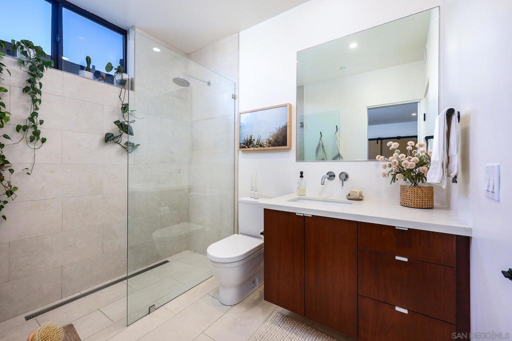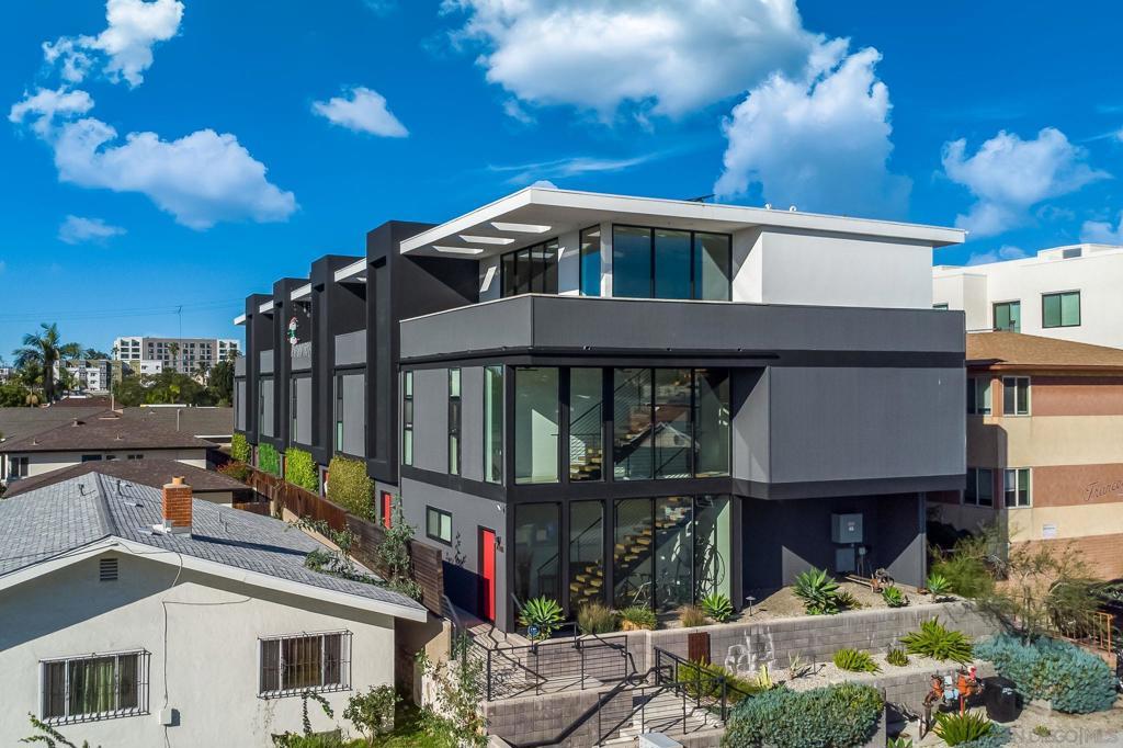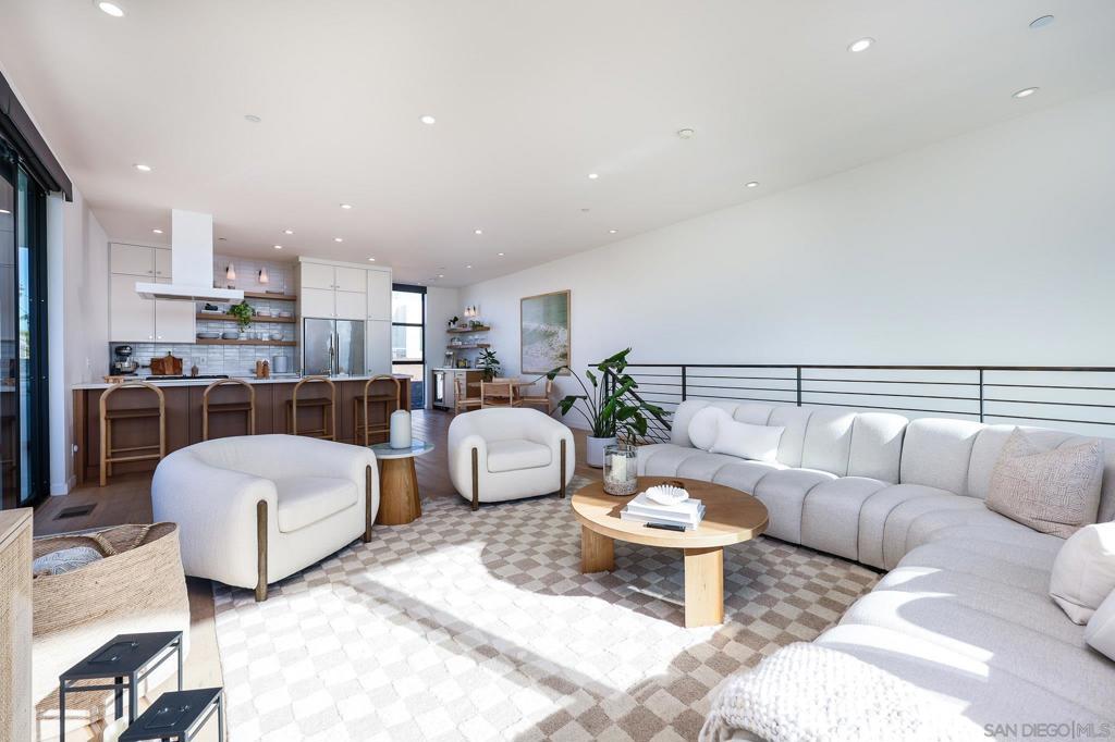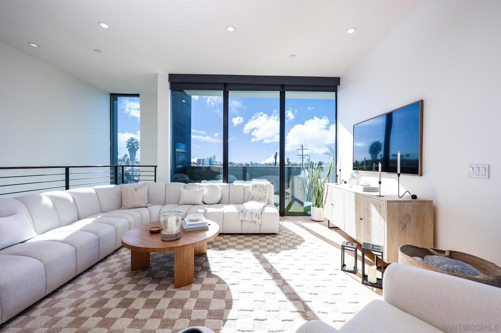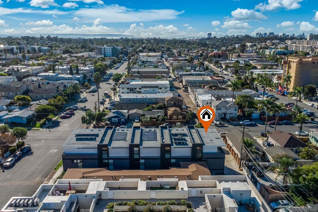 Stunning, design-forward 2-bed, 2-bath corner townhome reimagined for modern luxury living in the heart of North Park, offering 1,570 sq ft of light-filled, elevated space. Soaring ceilings and coveted southwest/west exposure deliver exceptional natural light, glowing city lights, and unforgettable sunset views. The open-concept living area is anchored by a statement island kitchen with upgraded cabinetry, quartz countertops, a built-in wine cooler, Bosch appliances, and a newly installed water filtration and softener system. A thoughtful interior concept by Solstice Design creates a refined, cohesive aesthetic throughout. Floating stairs finished in white oak, paired with porcelain tile and engineered hardwood floors, lead to a wraparound private deck—an inviting extension of the living space ideal for entertaining or unwinding at golden hour. The spacious primary suite features dual sinks, a walk-in closet, and an oversized rain shower for a spa-like retreat. Additional highlights include Hunter Douglas remote-controlled window coverings, alarm system, keyless entry, and a recently painted building exterior reflecting ongoing care throughout the development. Ideally located near the Historic Lafayette with walkable access to North Park’s celebrated dining, culture, and lifestyle. Private 2-car garage included.