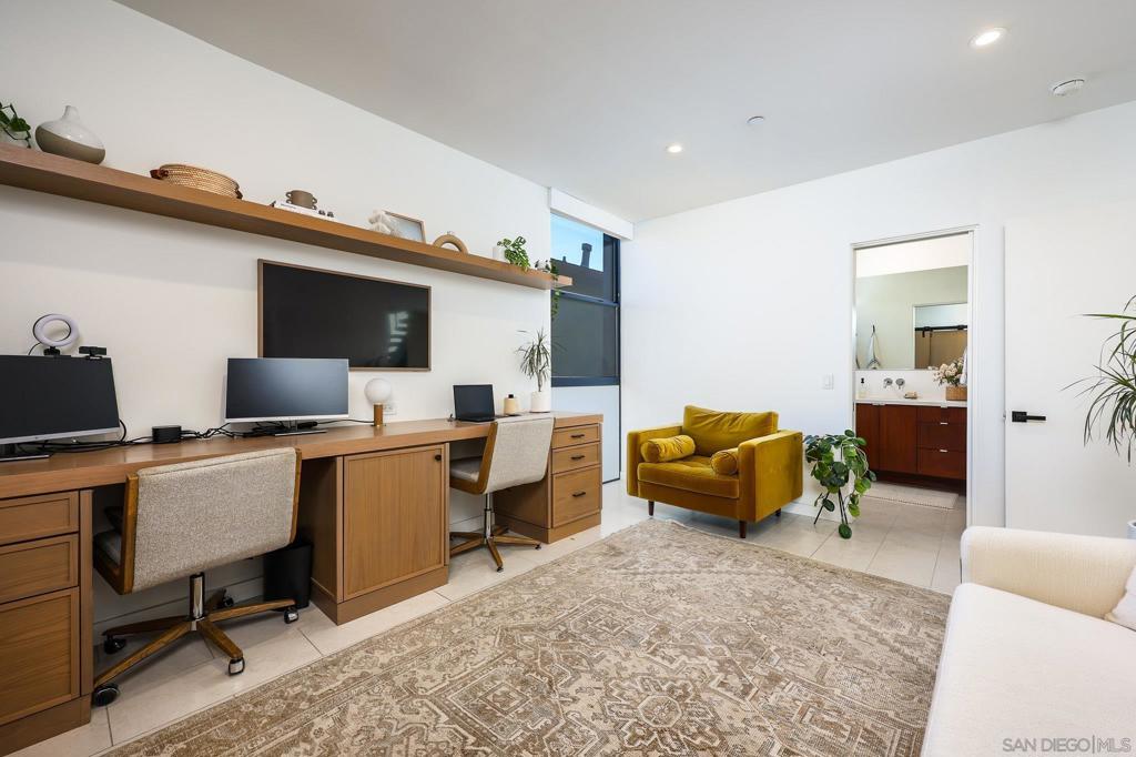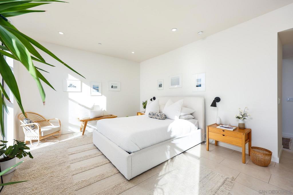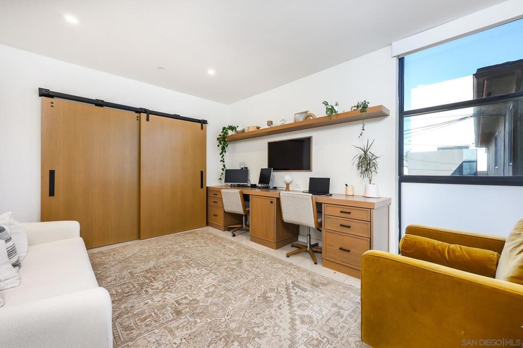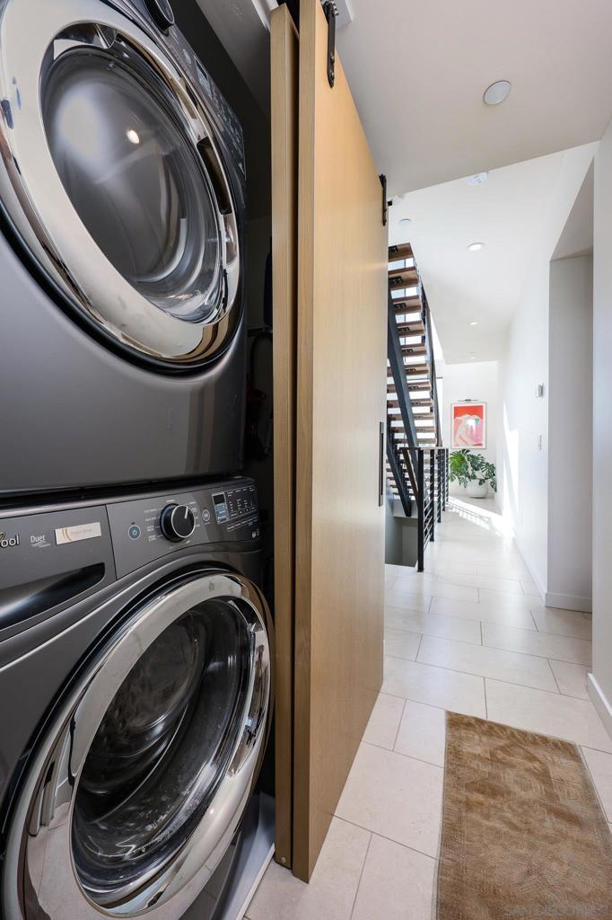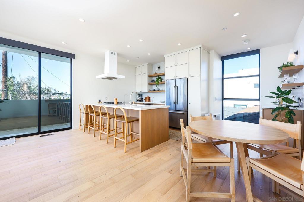 Stunning, design-forward 2-bed, 2-bath corner townhome reimagined for modern luxury living in the heart of North Park, offering 1,570 sq ft of light-filled, elevated space. Soaring ceilings and coveted southwest/west exposure deliver exceptional natural light, glowing city lights, and unforgettable sunset views. The open-concept living area is anchored by a statement island kitchen with upgraded cabinetry, quartz countertops, a built-in wine cooler, Bosch appliances, and a newly installed water filtration and softener system. A thoughtful interior concept by Solstice Design creates a refined, cohesive aesthetic throughout. Floating stairs finished in white oak, paired with porcelain tile and engineered hardwood floors, lead to a wraparound private deck—an inviting extension of the living space ideal for entertaining or unwinding at golden hour. The spacious primary suite features dual sinks, a walk-in closet, and an oversized rain shower for a spa-like retreat. Additional highlights include Hunter Douglas remote-controlled window coverings, alarm system, keyless entry, and a recently painted building exterior reflecting ongoing care throughout the development. Ideally located near the Historic Lafayette with walkable access to North Park’s celebrated dining, culture, and lifestyle. Private 2-car garage included.