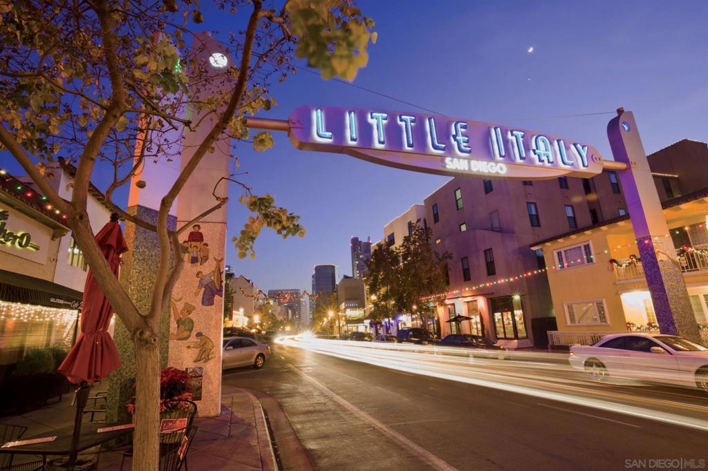 Beautiful 2 story condo in Heart of LITTLE ITALY! Former model, corner property w/ views to Harbor, City Lights & Little Italy. Almost 1,000 s.f. w/ rich finishes throughout. Features large kitchen, stainless appliances, wrap-around counters & an abundance of cabinetry. Includes washer/dryer, wine chiller, new refrigerator & new AC/Heating unit. As you follow the beautiful curved stairway to 2nd level, you will find spacious bedroom, closet & full bathroom w/ tub & shower. 1 secure parking space, well-equipped fitness & community room for entertaining. Huge common area patios for enjoying the outdoors w/ friends & neighbors. Walk to all in Little Italy. 1 bedroom & office space. Offered Furnished or Unfurnished. AVAILABLE for MOVE-IN by MARCH 1, 2026