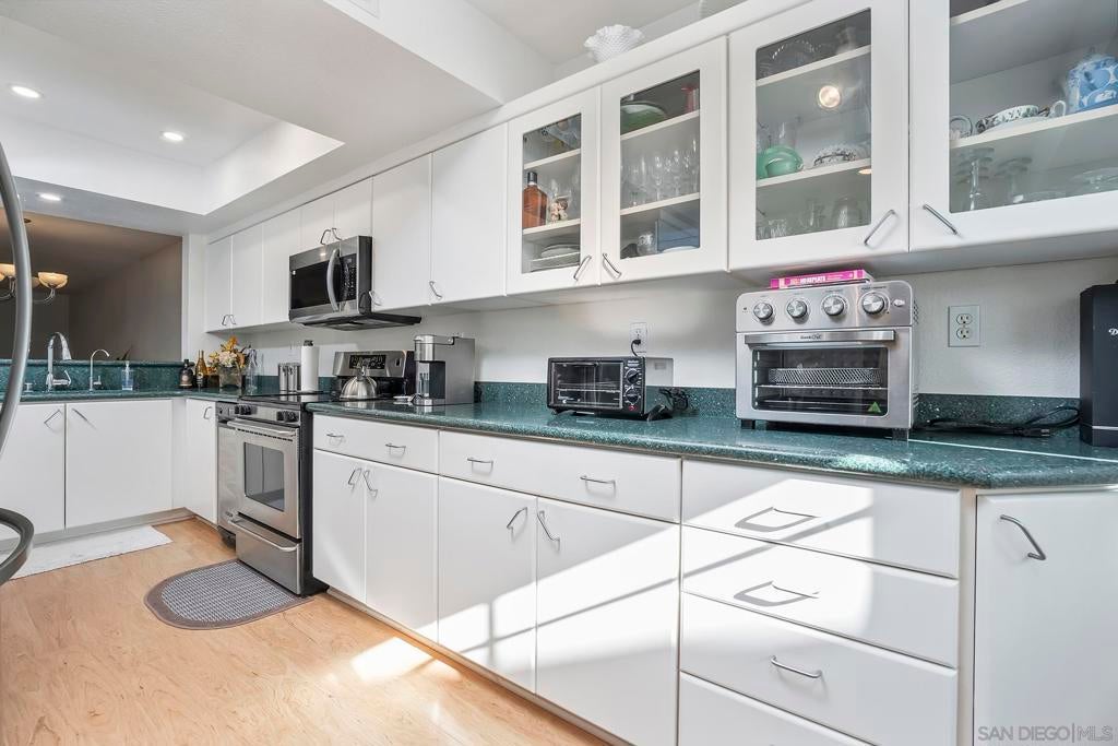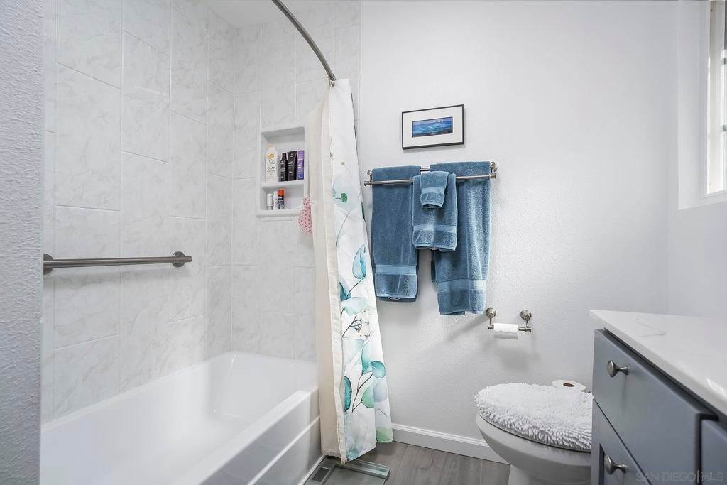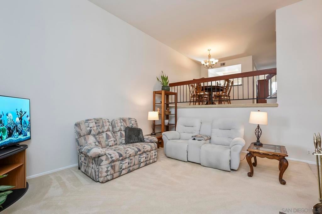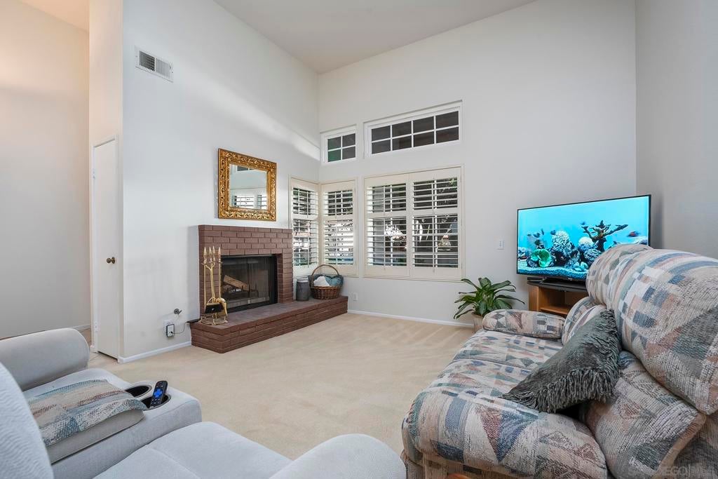 Come see this light and bright townhome in the desirable Mariposa community of Del Cerro. The townhome is ideally located toward the back of the complex and away from Mission Gorge Road. This provides a quiet, peaceful setting to enjoy your morning coffee on the private patio. The upgraded kitchen features stainless steel appliances, upgraded cabinetry, a separate breakfast nook, and overlooks the dining room and downstairs living room, ideal for entertaining. The interior has been freshly painted and includes recently updated bathrooms, dual-pane windows, plantation shutters, and fireplace in living room. The top level offers two primary bedrooms with vaulted ceilings, updated bathrooms, and a large walk-in closet in one suite. A half bath on the kitchen level is perfect for guests. The main living space with fireplace is on the 1st floor and a 2nd living space off of kitchen provides flexibility for a home office, media room, or potentially covert to a third bedroom as seen done by other owners in the complex. Additional highlights include interior laundry, ample storage, a two-car attached garage, and all appliances conveying with the sale. Mariposa amenities include manicured green spaces and a pool all in a prime Del Cerro location just minutes to Mission Trails Regional Park, shopping and more. Easy and quick access to Mission Gorge Rd. Complex is FHA and VA approved!