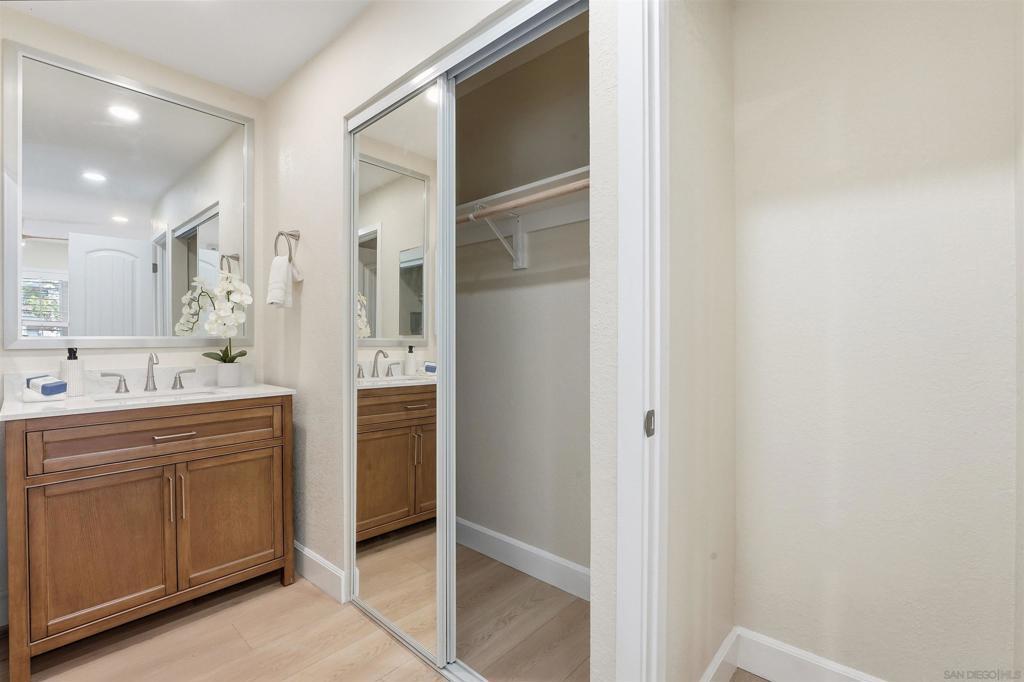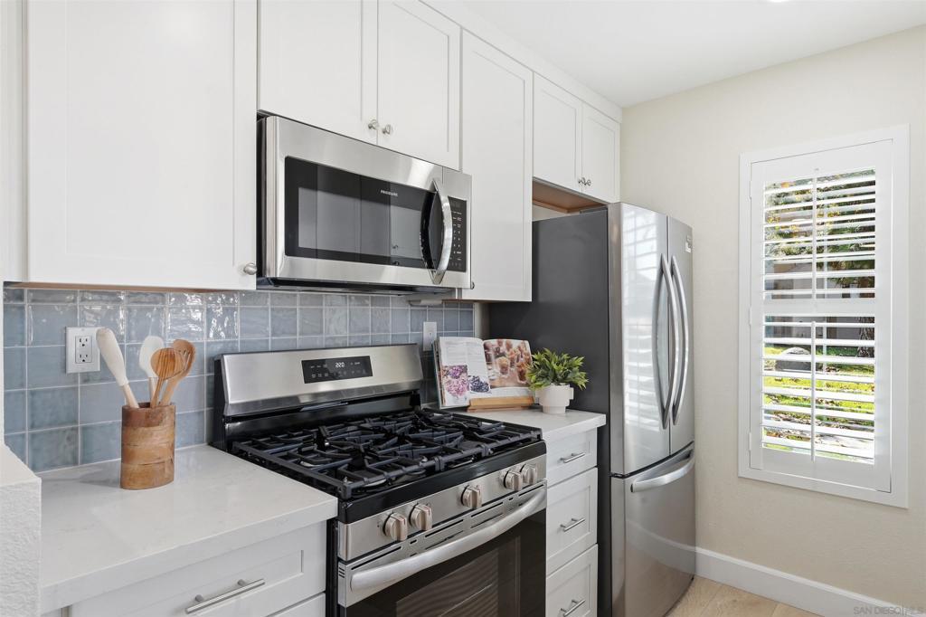 VA Approved! Welcome to this gorgeous renovation. Spending over $110,000, no expense was spared when the owner meticulously transformed this condo with custom craftsmanship and high-end finishes. Two standout upgrades you won’t find anywhere else in the complex: (1) A wall-mounted mini-split system with its own dedicated condenser - providing your AC, heating and cooling. (2) the owner built a second closet in the primary suite - yes, two closets in your bedroom! The designer kitchen features Quartz countertops, a porcelain tile backsplash, and premium Frigidaire appliances, including a gas range. The bright living area shines with new recessed lighting, a new Milgard sliding door, and Avalon plantation shutters that give you both natural light and privacy. Additional highlights include a brand new washer and dryer, and a tankless water heater. Everything is under manufacturer warranties. Across the street the city is completing a $43million renovation project on the local park. It will have an aquatic center, pickleball courts, and much more! With grocery stores and delicious eateries, like Little Sakana’s all-you-can-eat sushi, just down the street, you'll fall in love with this neighborhood and this condo. This is the home people say, “I wish I’d bought it when I had the chance.”