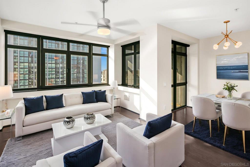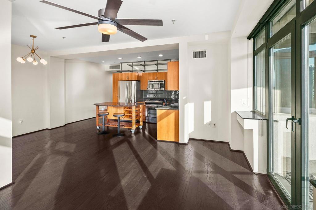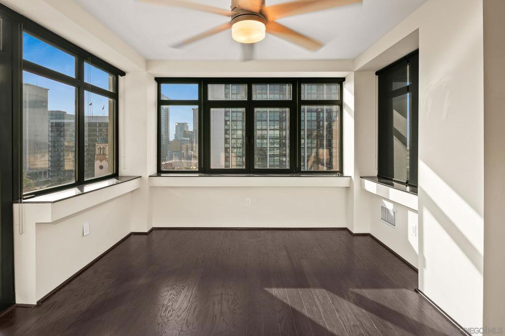 Experience sunsets and spectacular city views from your private balcony in the intimate and boutique Solara Lofts. Located in San Diego’s gem neighborhood of Cortez Hill this extra large, contemporary one bedroom boasts an open floorplan flooded with natural light, hardwood floors, and a large balcony to take in the San Diego skyline from the highest point in Downtown San Diego. The kitchen is complete with stainless steel appliances, ample storage, and a mobile island to customize the kitchen configuration to your needs. Enjoy all the incredible amenities at Solara Lofts including TWO parking spaces, fob-secured storage locker, pool/spa, racquetball court, gym, sauna, day spa, and massage room! Located in the vibrant Cortez Hill you are walking distance to top restaurant, bars and nightlife. Gated guest parking included and dogs allowed upon approval with additional deposit.