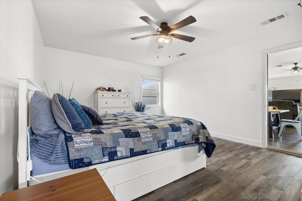 Welcome to 342 Billow Drive, a beautifully upgraded single-story home offering 4 bedrooms, 2 bathrooms, and 1,487 square feet of comfortable living space in San Diego’s 92114 community. This inviting residence features paid-off solar for long-term energy savings and unobstructed panoramic views of East County and San Miguel Mountain, creating a truly special setting. The open-concept layout is highlighted by a vaulted ceiling in the living room, enhancing natural light and creating an airy feel ideal for everyday living and entertaining. Recent upgrades include new interior paint, laminate flooring throughout, a stylish kitchen backsplash, and gorgeous tile installed in the bathroom showers, showcasing thoughtful improvements throughout the home. The space feels warm, cozy, and functional, blending comfort with modern touches. Outside, enjoy a low-maintenance lifestyle with turf installed in the front yard and a fully fenced property offering privacy and security. Retaining walls have been flattened to create usable outdoor hangout areas, perfect for relaxing, entertaining, and taking in the spectacular East County views. The home also offers a driveway for parking along with plenty of convenient street parking for guests. With scenic views, energy-efficient features, and upgrades throughout, this move-in-ready home is a rare opportunity to enjoy single-level living in the desirable Lomita Village neighborhood, offering comfort, convenience, and an exceptional San Diego lifestyle.