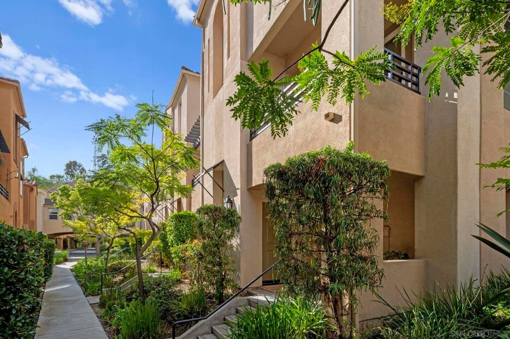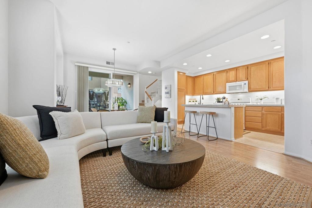 Tucked within the gated community of Bridges at Escala, this home offers both privacy and convenience—just minutes from beaches, shopping, dining, downtown, freeways, and Snapdragon Stadium. The well-designed layout features an open-concept main level with an island kitchen, dining area, and living room filled with natural light. One bedroom and full bath are located on the second level, while two ensuite bedrooms occupy the third—providing flexibility and privacy for guests or family. Recent updates include new carpet, fresh interior paint. The home also includes laminate flooring on main level, a two-car attached garage and a prime location set back from traffic and surrounded by trees for a tranquil feel. Residents enjoy Escala’s resort-style amenities with pools, spa, clubhouse, fitness center, and tennis courts.