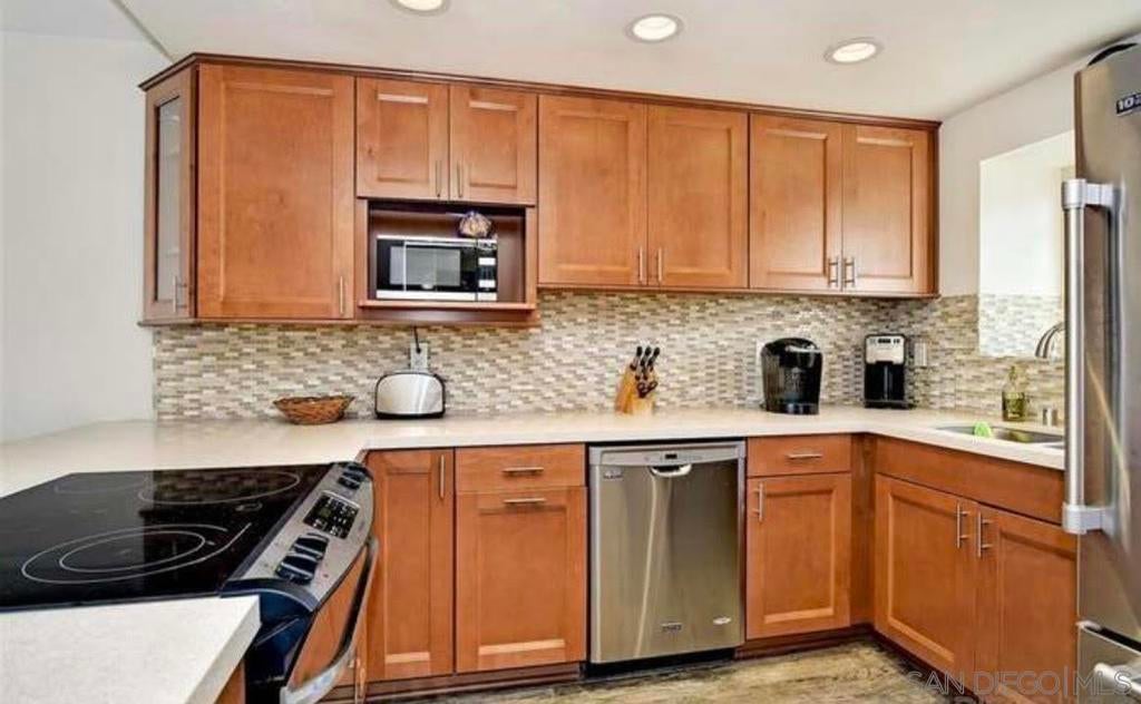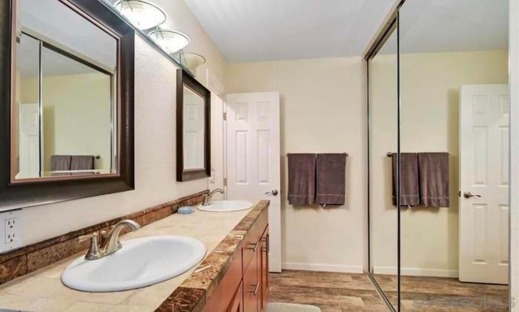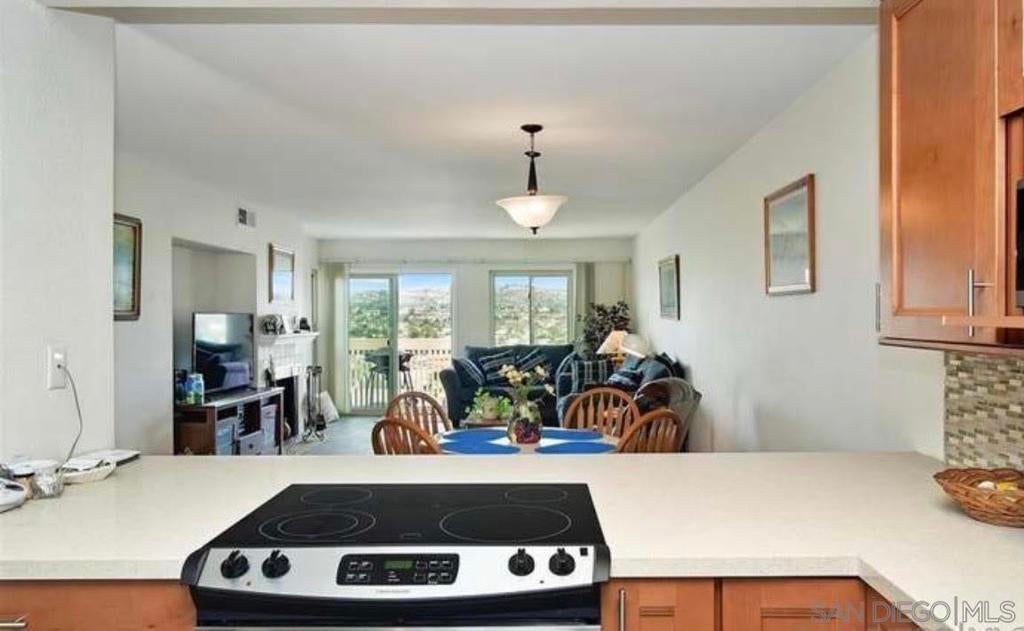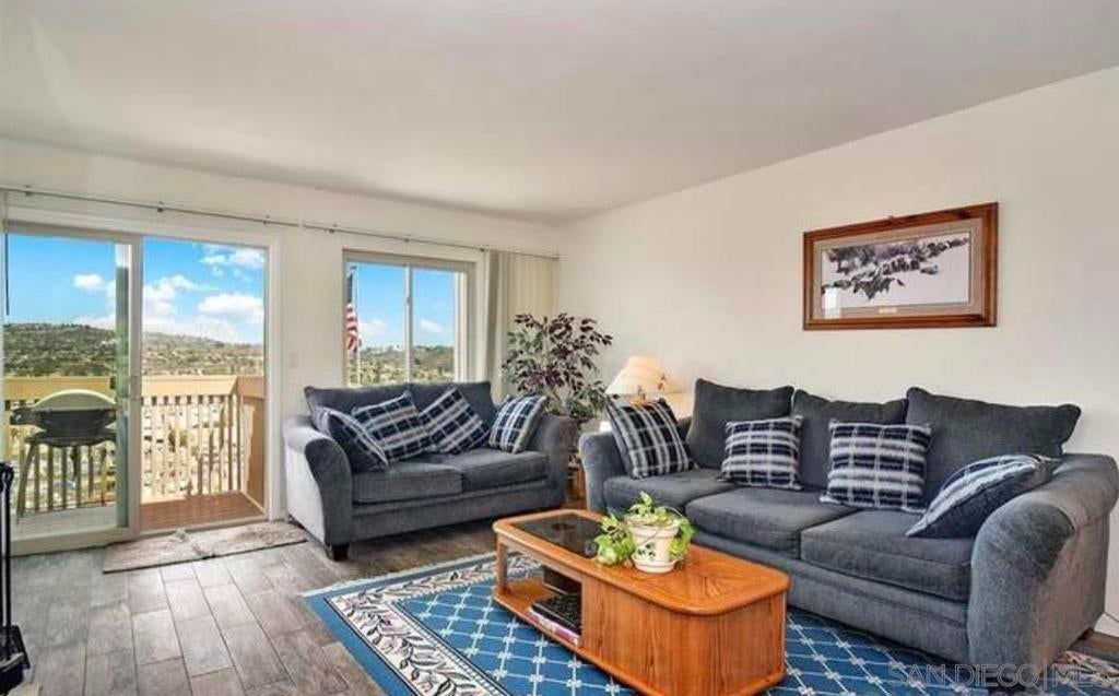 Large remodeled top floor condo with stunning 180 degree views of Cowles Mountain, Tierrasanta, Admiral Baker golf course, historic Mission Gorge and Del Cerro. Completely remodeled with faux wood ceramic tiling throughout. Stone counters and backsplashes, beautiful cabinetry, stainless appliances, stone showers and baths. Cerro De Alcala has two pools and spas, a tennis court and lush landscaping. Full size washer and dryer in unit along with private detached garage.