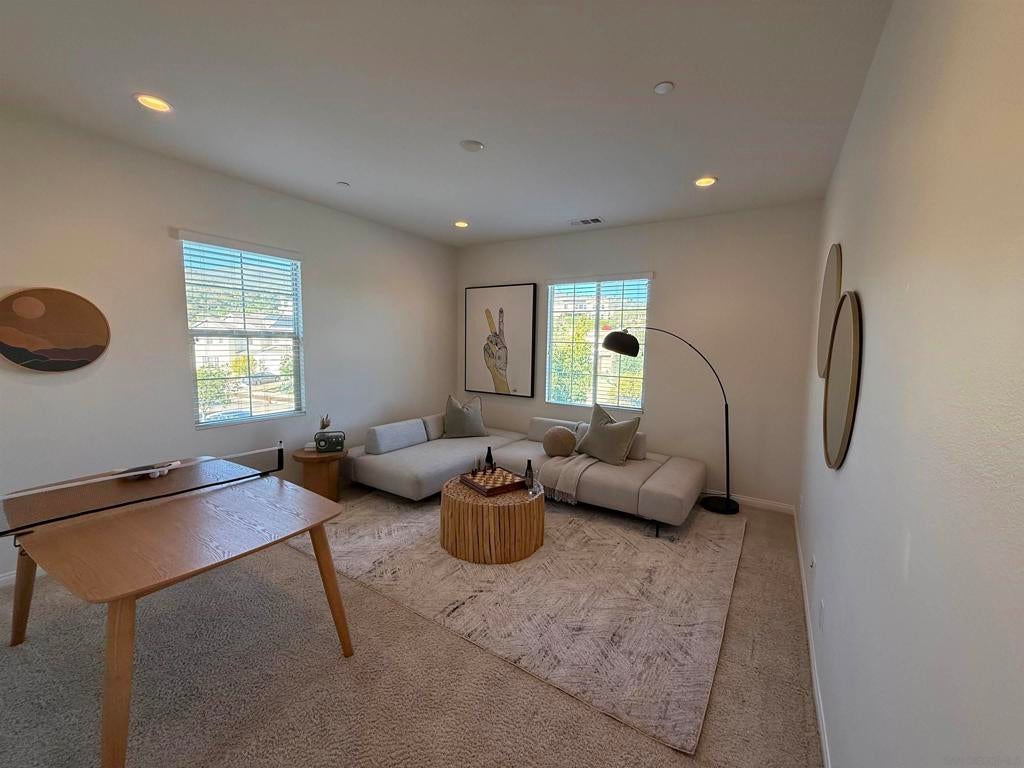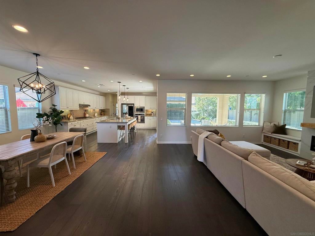 Harmony Grove Village is one of San Diego's Best Family Communities !! Designer touches Throughout, Amazing Kitchen flows into Huge Great-room with Custom Electric Fireplace, "OWNED" solar, Bedroom & Full bath on first level, Bonus room could easily be converted to 5th bedroom, Private Office with French Doors, Loft area upstairs, 3 car garage, Enjoy SD weather in your extended California Room / Very Private courtyard, Community Pool, 8 different parks, horse trails