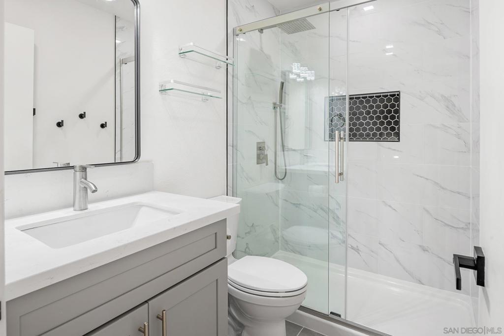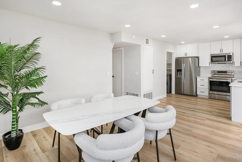 Absolutely stunning, this beautifully renovated home is a testament to luxury and modern living. From the moment you step inside, you’ll appreciate the meticulous attention to detail. Impeccably upgraded, this residence offers a lifestyle of unparalleled comfort and style, with no shared walls. The interior boasts new luxury vinyl flooring that exudes elegance and is incredibly easy to maintain. The downstairs bedroom offers convenience and solitude with its privacy glass. The primary bedroom offers a finished attic space. The kitchen and bathrooms have been masterfully remodeled, featuring solid countertops, new cabinets and mirrors. All stainless steel appliances are brand new including: refrigerator, dishwasher, microwave with fan, washer and dryer. The home is also upgraded with a new water heater. Natural light floods the space, courtesy of new dual pane windows and tempered glass sliding doors that lead to the meticulously landscaped backyard oasis. Every inch of this home has been thoughtfully designed and accentuated by new fixtures, LED recessed lights and ceiling fans. Step outside to discover a custom landscaped paradise with artificial turf, and concrete step stones, ensuring a lush, green space year-round. Additionally, this home offers a carport, that can be converted in to a garage, with 3 parking spaces and an oversized storage closet! Don’t miss the opportunity to make this extraordinary residence your own. It’s more than a home; it’s a lifestyle, and it’s waiting for you to embrace it fully.