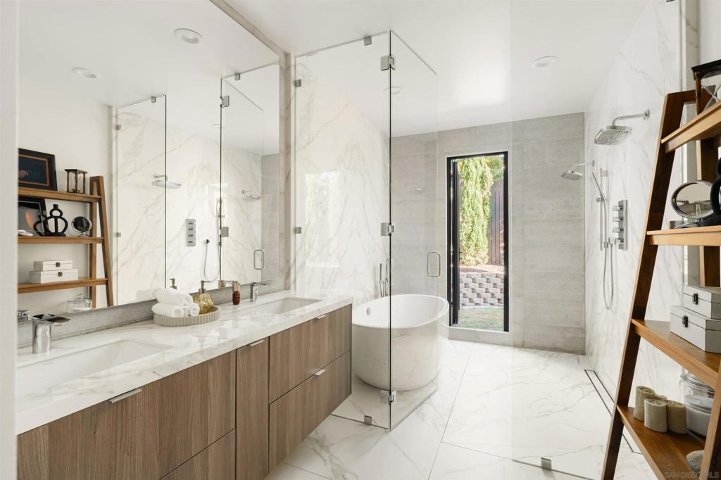 Discover the ultimate modern retreat in this immaculate single-level 4BR/3.5BA home — a perfect blend of style, comfort & privacy. Tucked on an intimate yet exceptionally secluded lot, this turnkey gem features a serene spa, refreshing outdoor shower, cozy fireplace & intimate covered patio ideal for effortless indoor-outdoor living. The gated front courtyard sets the tone, leading you to a stunning entry and steps from the ocean-view pavilion that delivers serious wow-factor sunsets. A rare find that feels like your own private resort. Key features and materials: Wolf range and oven, Subzero refrigerator, Blanco Steel Art sink, Slab limestone flooring, LED low energy lighting, Oversized custom pivot front door, Wide planked hardwood floors in the bedrooms. Primary bath with seamless slab walls, spa-like bath with soaking tub, Hansgrohe hardware, heated floors and direct access to outside shower & spa. Solar remote control skylights, Nest thermostats, Smart phone control and Electric car outlet in garage.