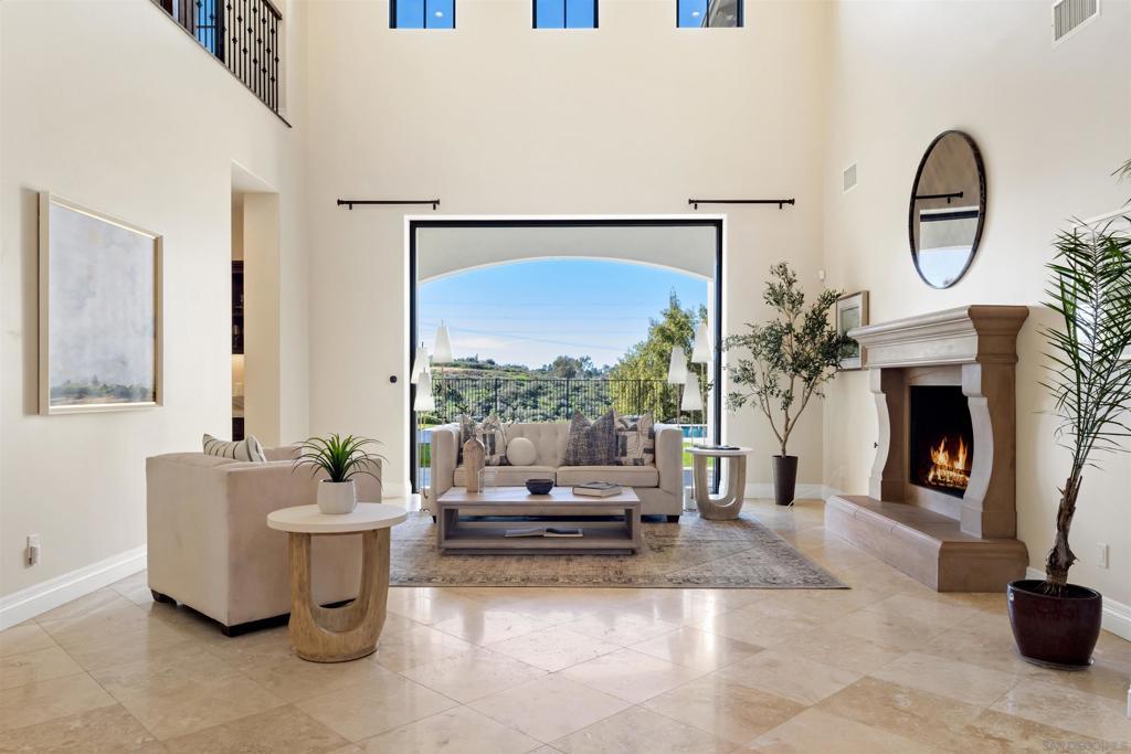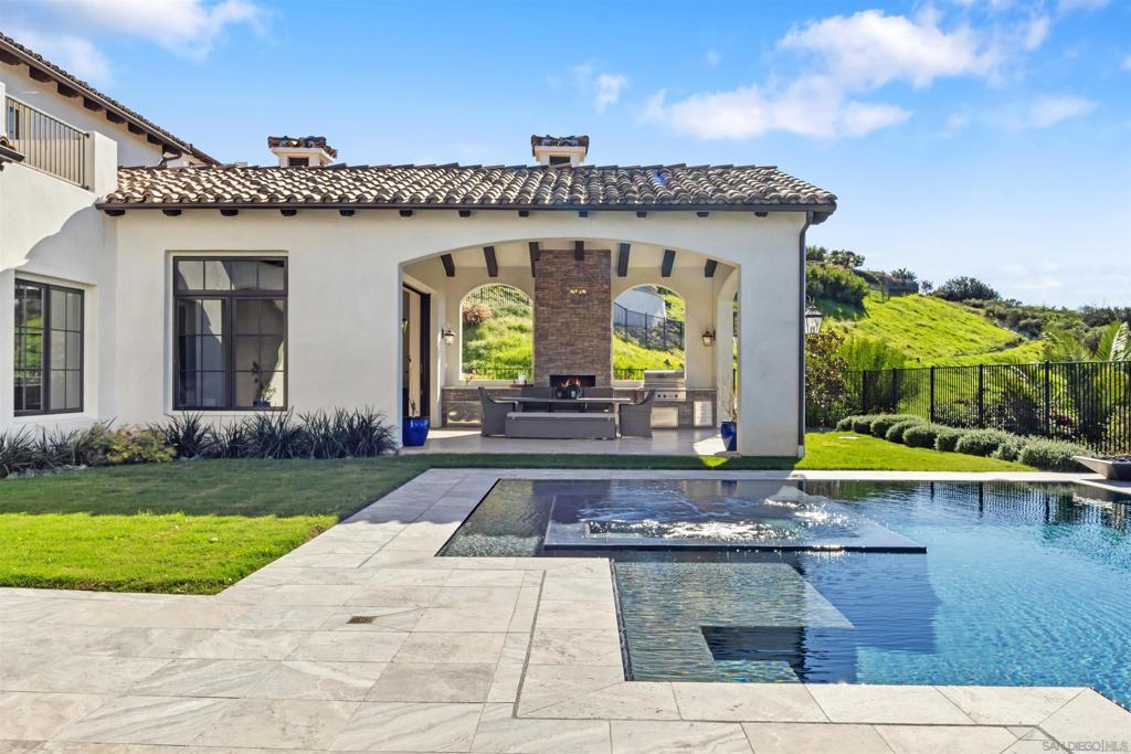 Absolutely stunning custom estate completed in 2022—among the newest homes in the prestigious Crosby at Rancho Santa Fe. Ideally located on a quiet, beautifully curated street of luxury residences within the highly rated Solana Santa Fe (K–8) and Torrey Pines High School districts, and near top private academies. Designed by local architect Scott Grunst, this 6,523 sq. ft. residence blends timeless elegance with modern luxury. A dramatic 22-foot foyer sets the tone with soaring arched windows, hardwood floors, exposed solid wood beams, and a grand staircase with wrought-iron railings. The chef’s kitchen is equipped with an eight-burner Wolf range with infrared charbroiler, 64" Electrolux refrigerator/freezer, double Electrolux dishwashers, custom stained alder cabinetry, and Brazilian quartzite countertops. Entertain effortlessly with a full wet bar featuring a built-in kegerator and a custom, climate-controlled 800-bottle wine cellar with additional storage. Disappearing pocket doors create seamless indoor-outdoor living, opening the main living space to a covered loggia with fireplace, full outdoor kitchen, and Wolf BBQ. The resort-style backyard offers exceptional privacy with no close neighbors and showcases a rim-flow PebbleTec® pool, vanishing-edge spa, raised fire pits, and unobstructed sunset views over a protected natural preserve. The thoughtful floor plan includes an elegant executive office on the main level with built-ins and fireplace, a main-level guest or secondary primary suite ideal for multigenerational living, and a spacious upstairs primary retreat. Upstairs also features two additional ensuite bedrooms and a game room overlooking the living room below. Additional highlights include an owned solar system, oversized motor court, and a four-car garage configuration: attached two-car garage with Tesla charger plus a detached, insulated two-car garage with A/C wiring—ideal for a gym, studio, or yoga space. Residents enjoy access to The Crosby’s Fred Couples-designed golf course, 35,000-sq.-ft. clubhouse, tennis and pickleball courts, Olympic-size pool, spa, fitness center, dining, and active social calendar. Conveniently located with quick access to Rancho Santa Fe Village via the north gate and Hwy 56, Hwy 15, and Hwy 5 via the south gate for beaches, shopping, and dining.