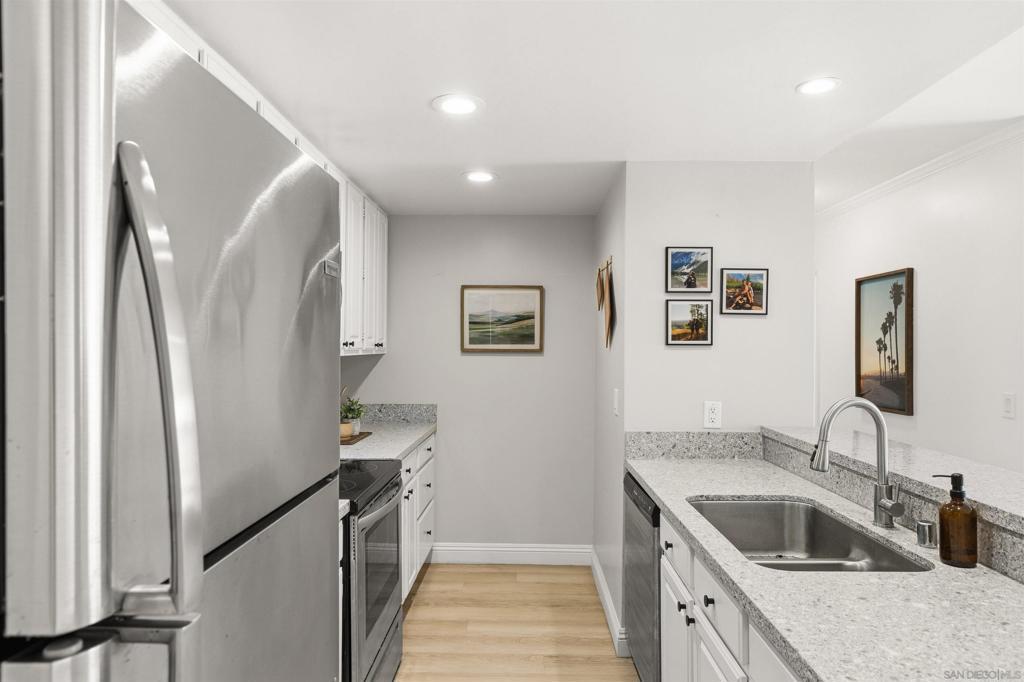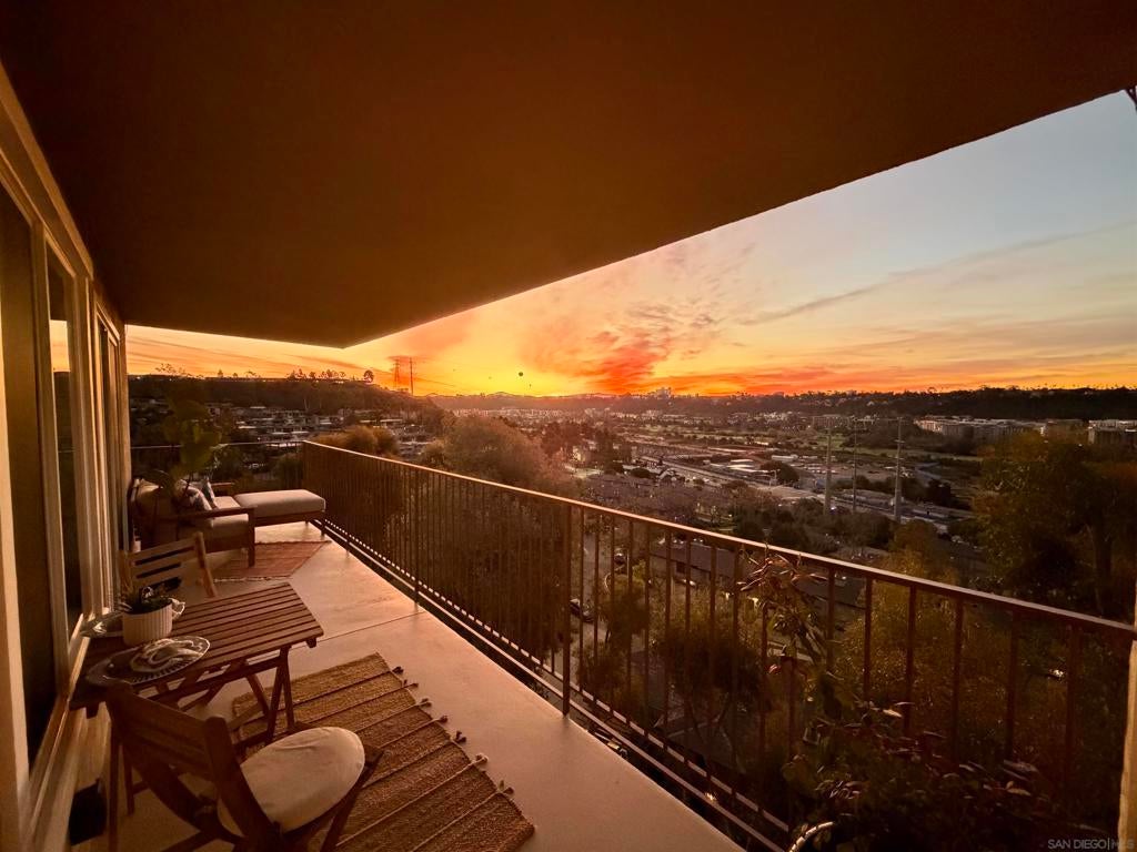 Incredible top-floor corner condo with sweeping views from every room, in the heart of Fashion Valley and just blocks from USD. This exceptional home offers the perfect blend of privacy, natural light, and indoor-outdoor living—highlighted by a massive balcony with 180° Mission Valley vistas and peek ocean views to enjoy year-round. Inside, an open and airy layout shines with modern upgrades including light oak LVP flooring throughout, an updated kitchen and baths, and a freshly painted interior. The spacious primary suite features a large walk-in closet, dual vanities, and a dual-head shower. Additional perks include assigned garage parking with storage. Ideally located minutes to University of San Diego, Mission Bay trails and parks, beaches, major freeways, and the trolley—perfect for students, professionals, or anyone who wants peaceful living close to it all. A must-see!