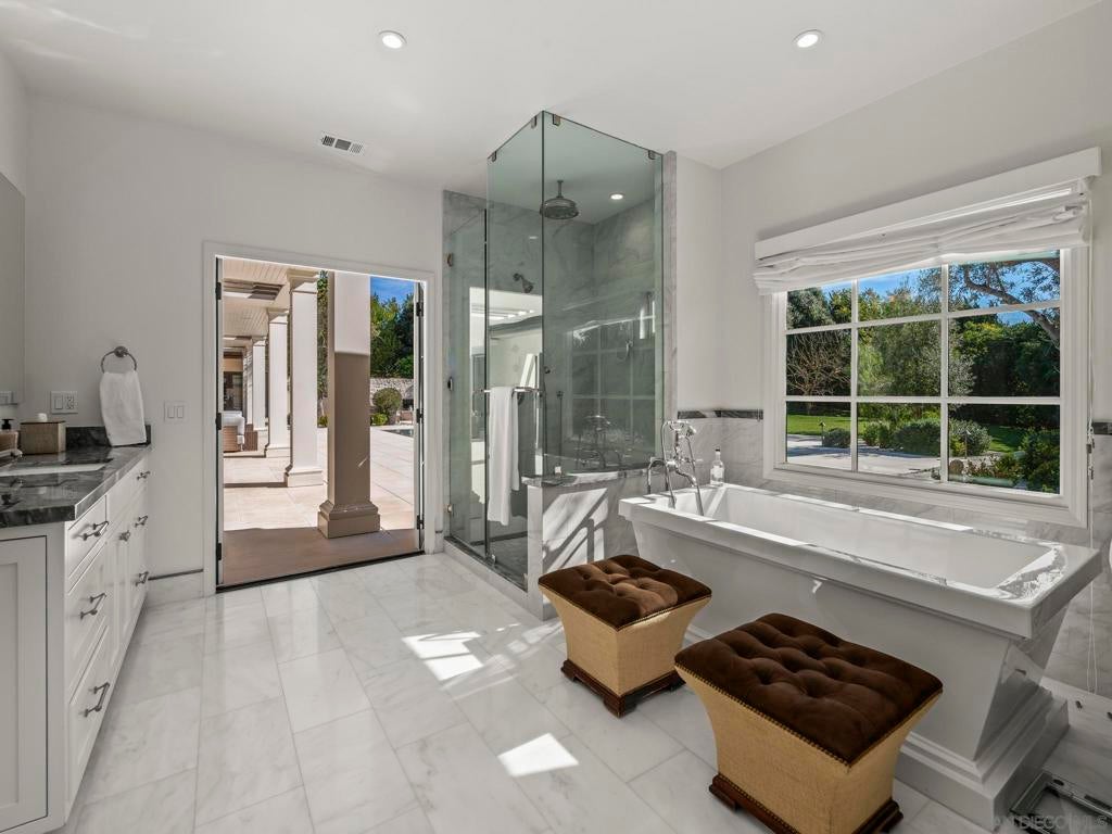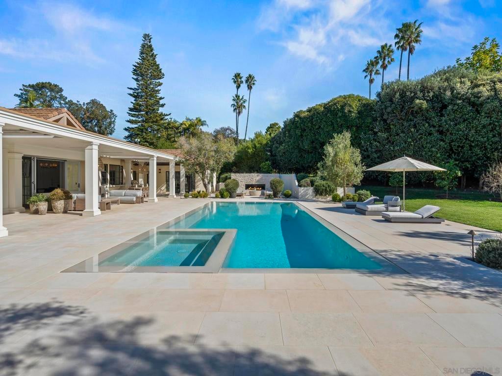 Gated and approached by a long, private drive with ample parking for parties, 1009 Solymar unfolds as a rare Muirlands sanctuary of almost an acre —an estate offering extraordinary privacy, scale, and serenity. The grounds evoke the qualities of a five-star Four Seasons retreat with manicured gardens, expansive lawns, tennis court, resort-style pool and spa, multiple patios, outdoor fireplace, built-in barbecue, and intimate seating vignettes woven throughout a peaceful, park-like setting. Designed for both grand entertaining and effortless everyday living, the residence features voluminous living spaces with soaring ceilings, abundant natural light, and seamless indoor-outdoor flow. Every bedroom is en suite, complemented by dedicated guest and service quarters. The exceptional chef’s kitchen is oversized and beautifully appointed with premium appliances, generous wine storage, custom built-ins, and a concealed door adding an element of architectural intrigue. Additional highlights include a media and study room, private office, and multiple gathering areas ideal for hosting on any scale. This is a rare offering in the heart of the Muirlands—secure, secluded, and timeless—yet moments to La Jolla’s coastline, village, and world-class schools.