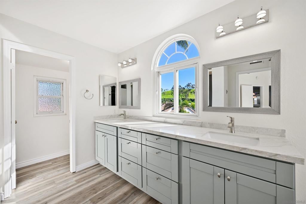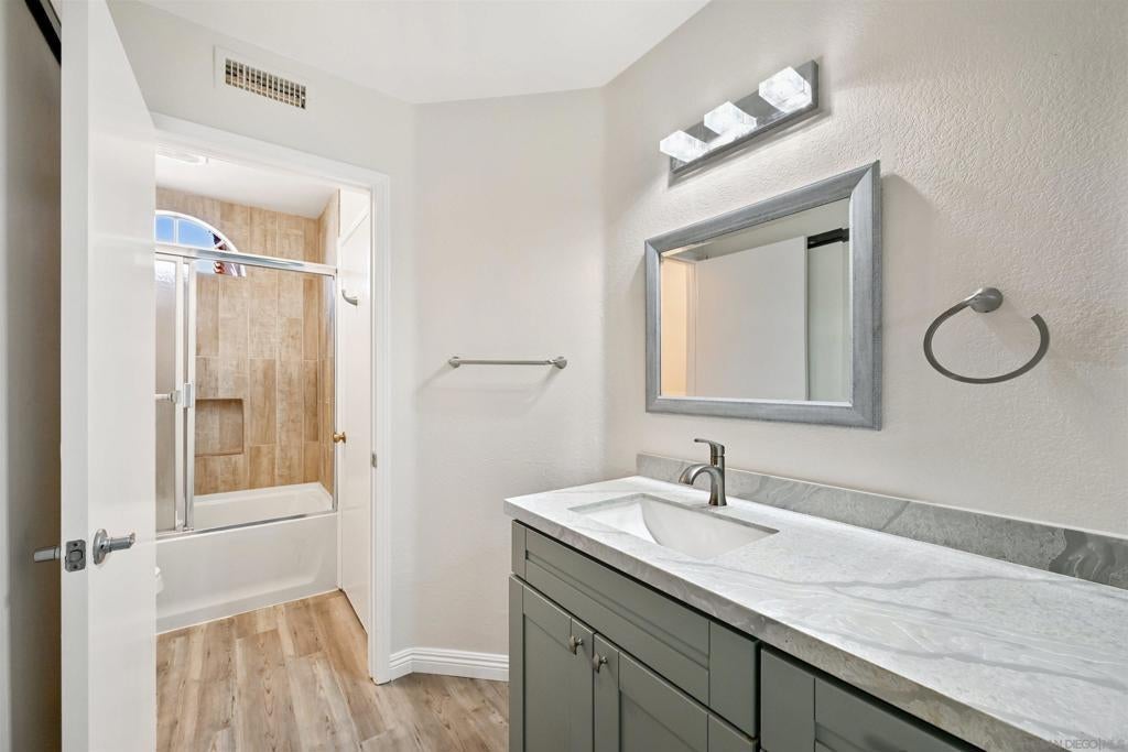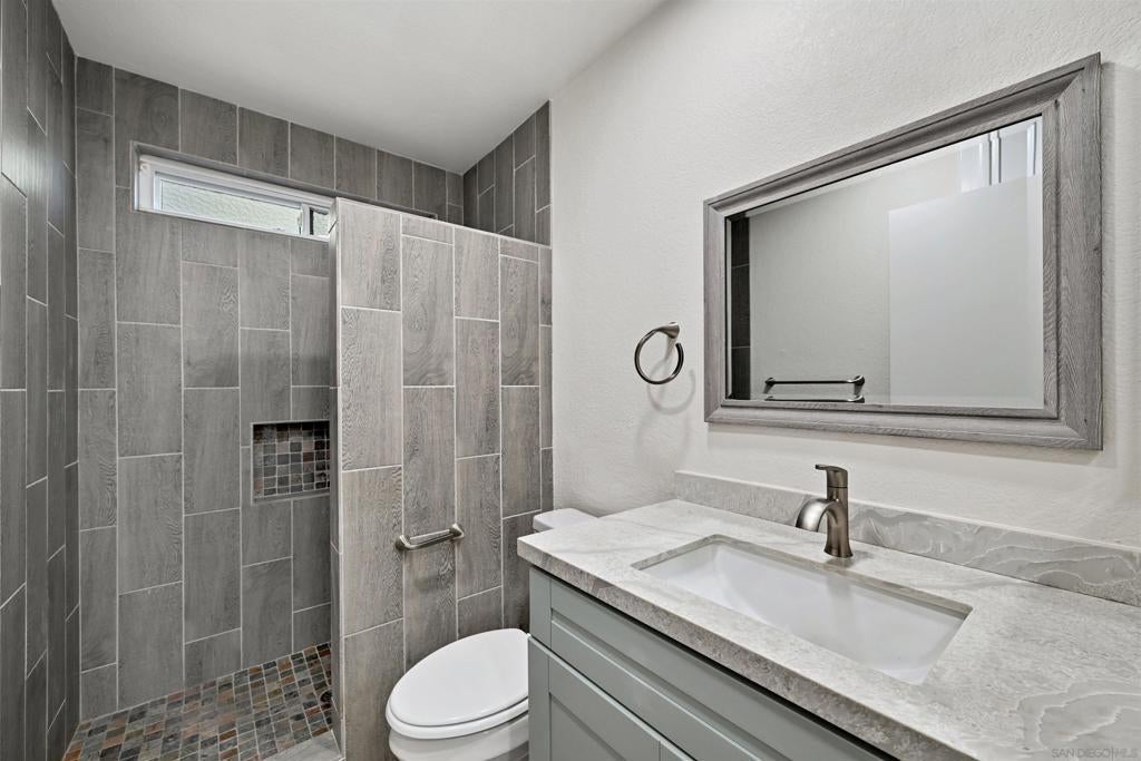 Move right into this beautifully updated Rancho Del Oro home—there’s truly nothing left to do. Featuring luxury vinyl plank flooring, quartz countertops, and stylishly tiled bathrooms with new vanities and modern lighting, this home offers both comfort and contemporary appeal. With three full bathrooms, including a bedroom and full bath on the main level, the layout is ideal for guests, multigenerational living, or a private home office. The home also offers a 2-car garage, fully owned solar, and updated windows with solar screens for energy efficiency. High ceilings and abundant windows fill the home with warm, natural light throughout, creating a bright and inviting atmosphere. Upstairs, the primary suite features a charming private balcony overlooking the backyard—perfect for morning coffee or evening relaxation. Back yard has a covered patio for dining al fresco or just enjoying the cool breeze Oceanside has to offer. Ideally located near the I-5, 76, and 78 freeways, this home provides easy access to schools, restaurants, shopping, and Orange County, making it as convenient as it is beautiful.