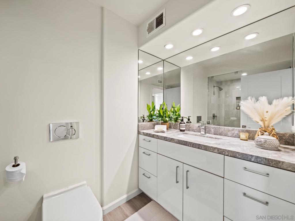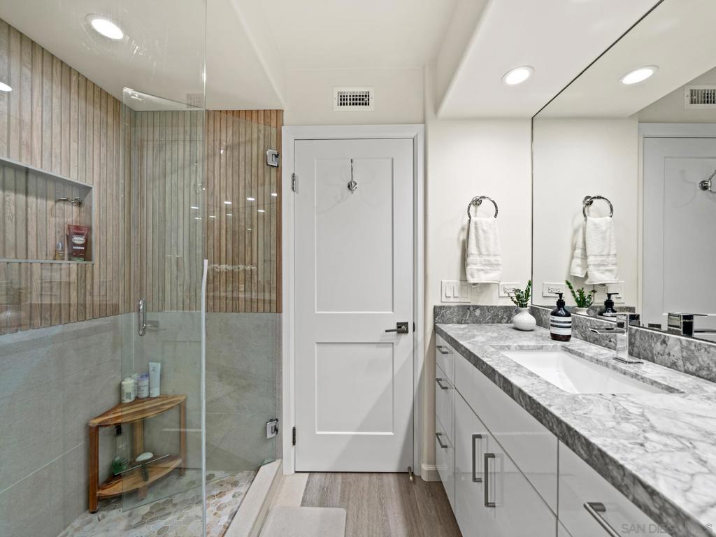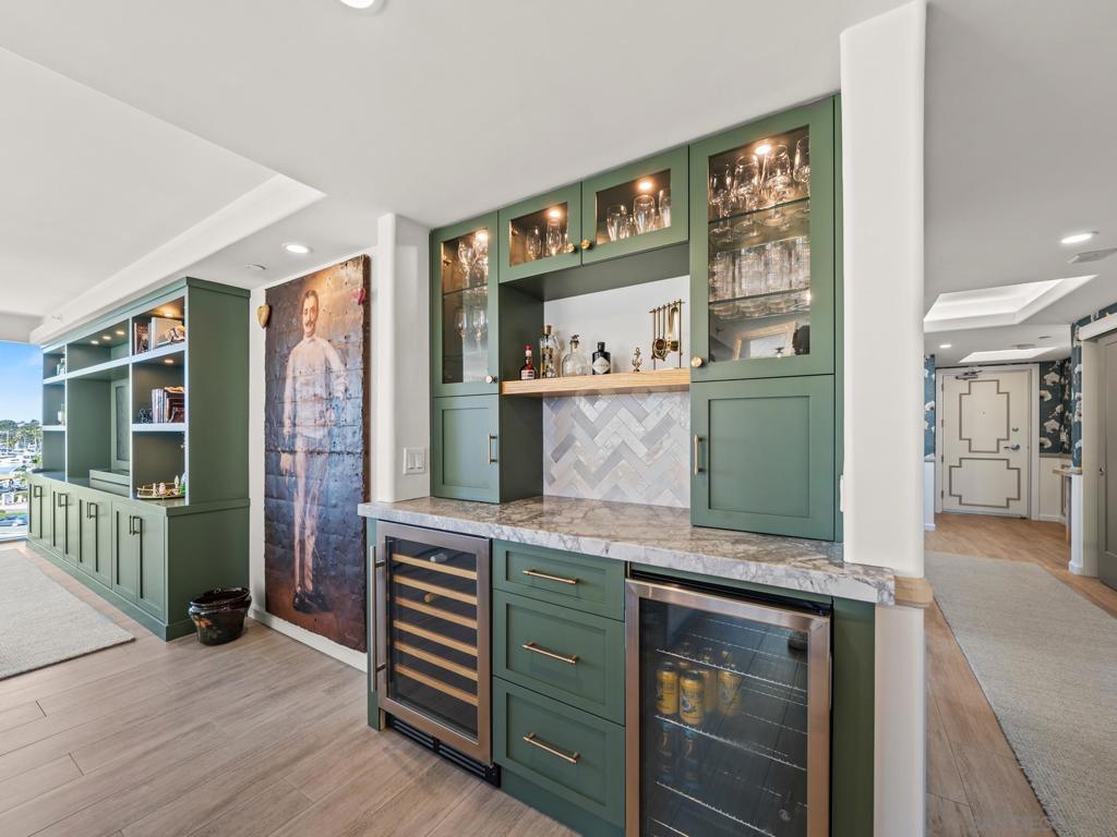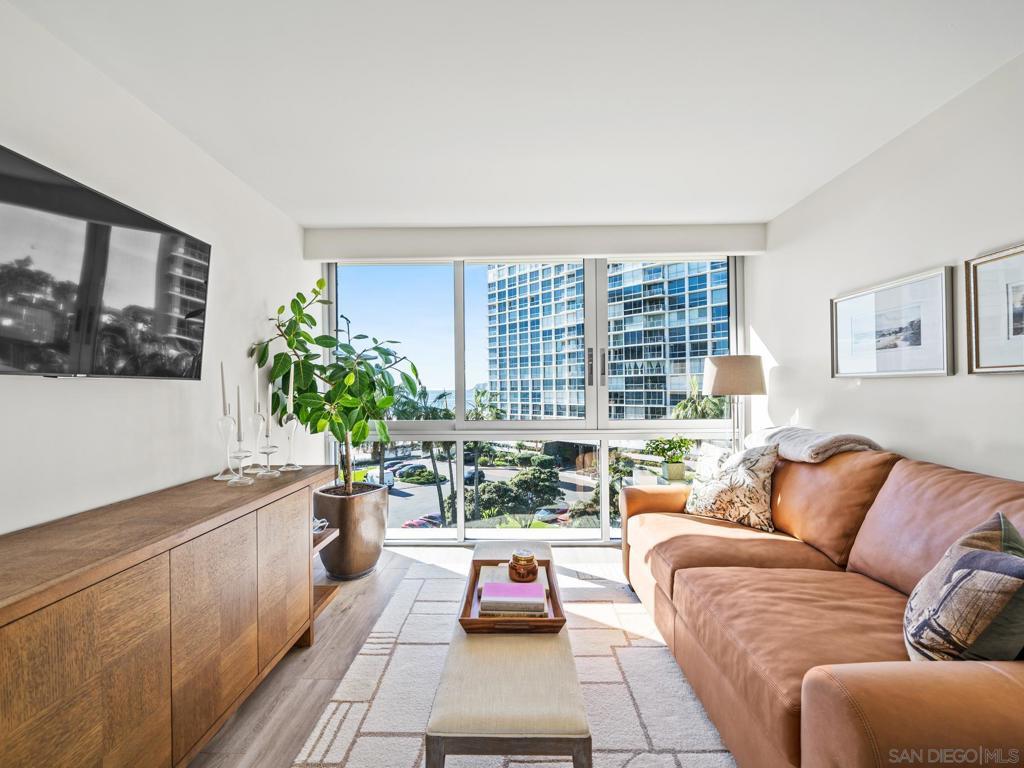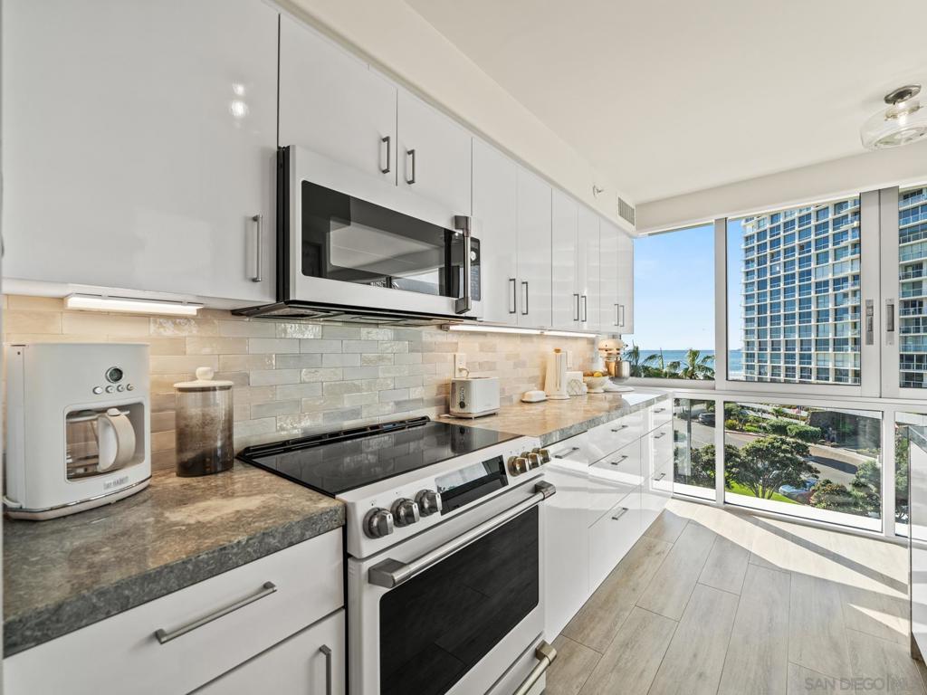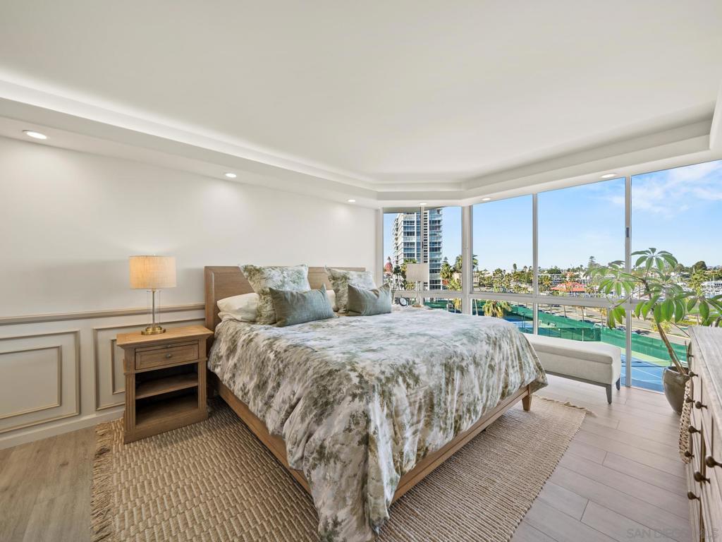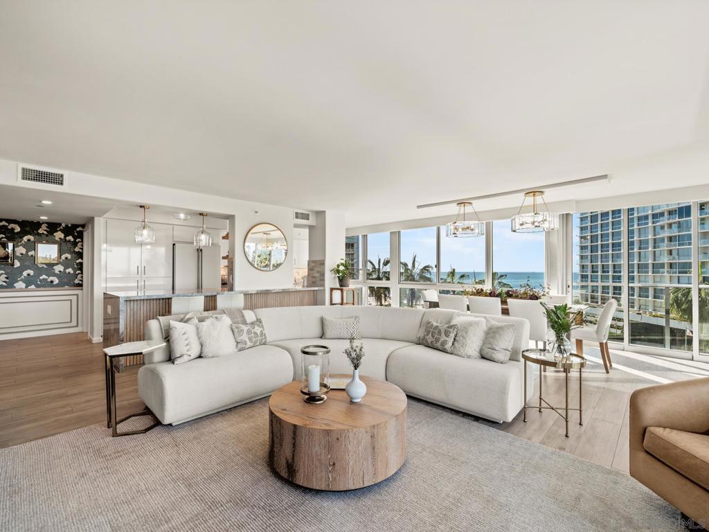 If you are a buyer seeking space, light, turnkey living, and panoramic views of the Pacific Ocean, Hotel del Coronado, the San Diego skyline, the bay, the golf course, and stunning sunsets, this home is for you. This corner residence features a thoughtfully designed layout and is offered fully furnished with high-end designer pieces. The interiors have been curated with exquisite craftsmanship and style. Highlights include hand-crafted woodwork in the living room and bar, custom trim in the hallway and primary suite, handmade tile in the kitchen and bathrooms, and designer wallpaper accents. The chef’s kitchen features all-new GE Café Signature Collection appliances. Additional upgrades include new windows, automatic blinds, new interior doors and casings, upgraded lighting and sconces, and a new washer and dryer. Located in La Princesa, the newest and recently remodeled tower at The Shores, this one-of-a-kind home is complemented by beautifully renovated modern lobbies and hallways, offering a refined balance of classic elegance and coastal charm.