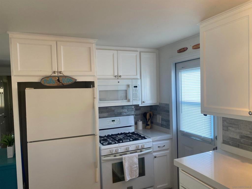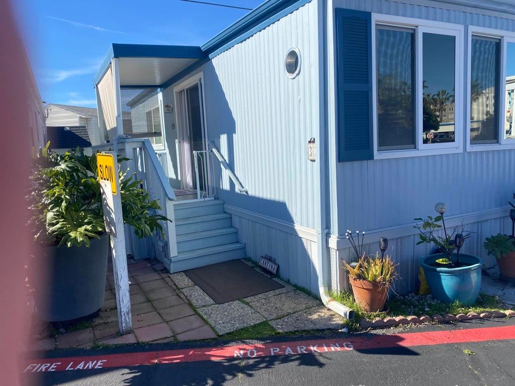 Ready to move to the beach? This immaculate 2BD/1BA home is ready for a new owner. Freshly painted, new vinyl plank flooring, updated bathroom tile, new sink and quartz countertops. Beautiful new kitchen tile backsplash, quartz countertops and island. New ceiling fans in living room and bedroom to keep it cool in the summer. Water filtration system. Dual pane windows provide tons of sunlight. Covered front porch. Mira Mar is a gated 55+ community. Enjoy the community pool, garden and laundry room and meet new friends. Walk to the beach or harbor for a swim or downtown for dinner, shopping or a movie. All this in 640 square feet and no propety taxes!
