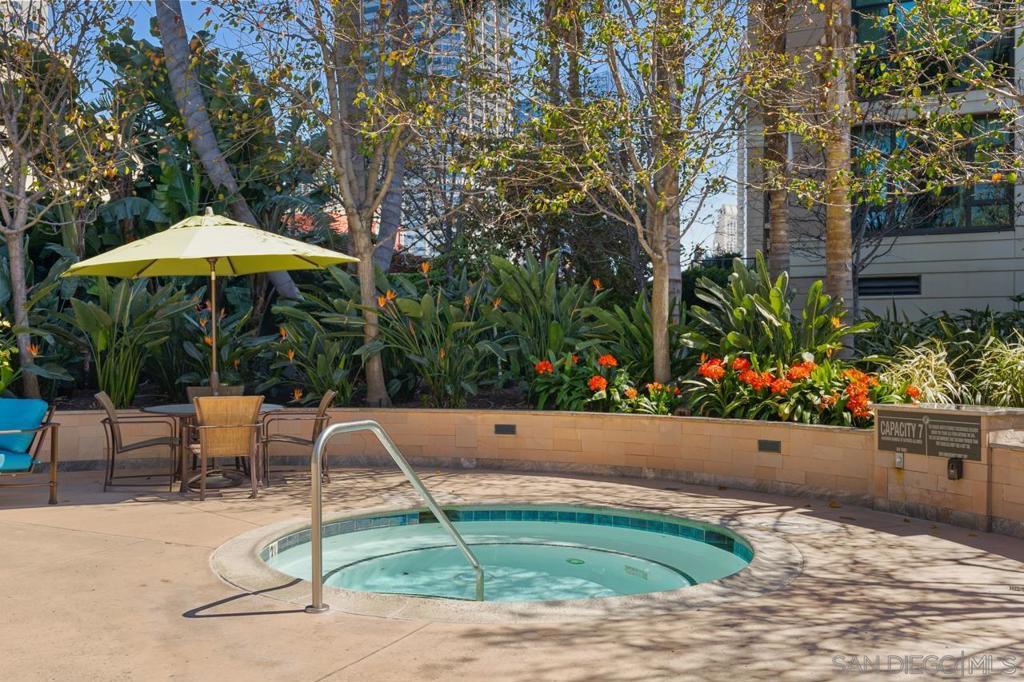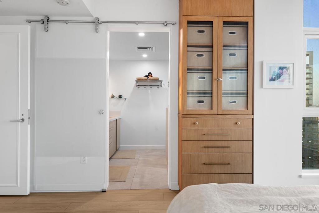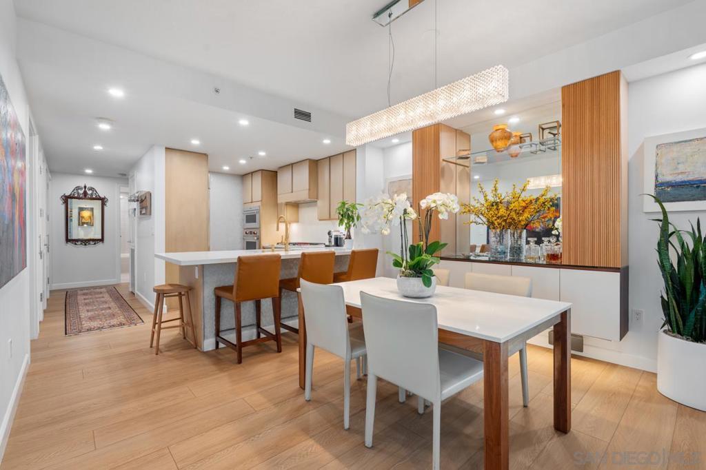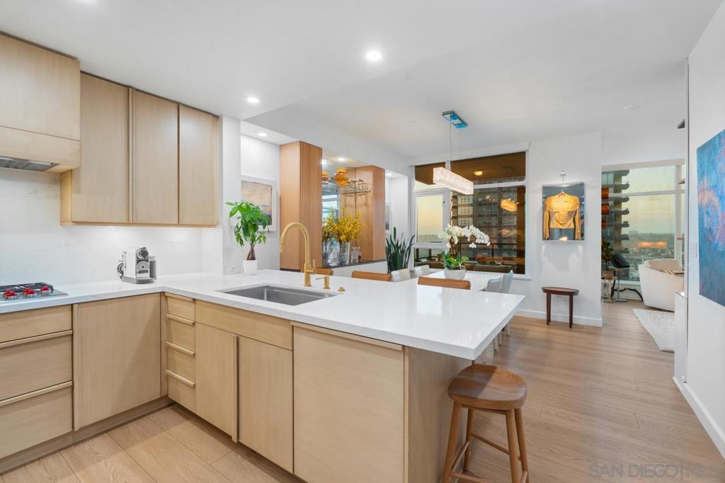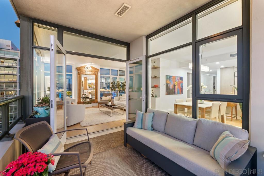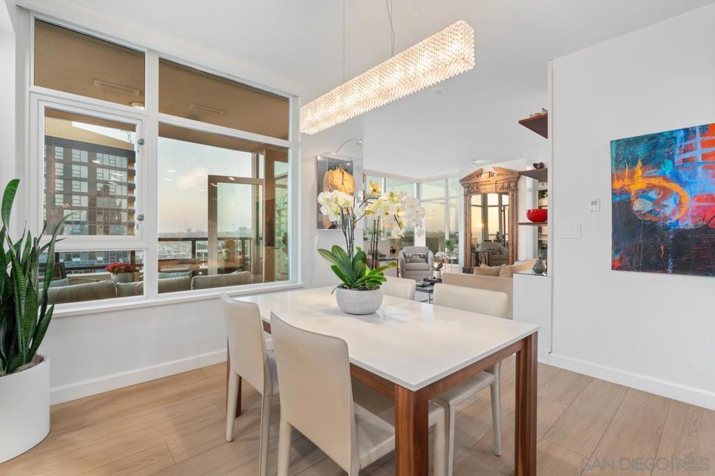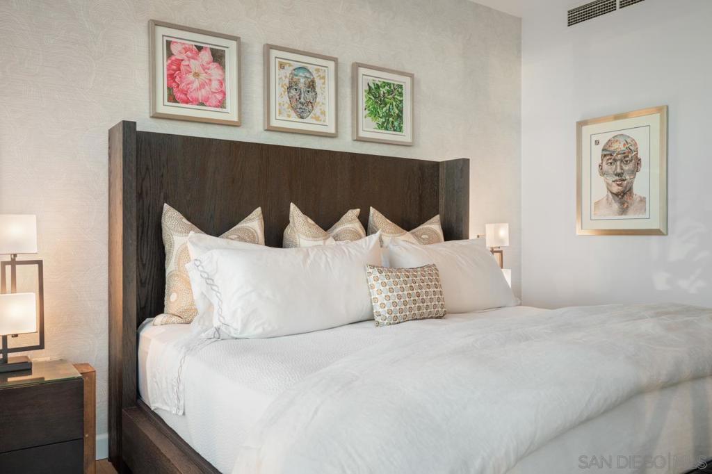 Soaring high above the city on the 31st floor of the distinguished Grande North, this rare corner residence commands a front-row seat to San Diego’s most breathtaking scenery. Walls of glass unveil an ever-changing canvas of San Diego Bay, the glittering skyline, distant mountains, and the vast Pacific beyond. From sunrise to sailboat regattas, golden sunsets to SeaWorld’s nightly fireworks—every moment is a masterpiece, best enjoyed from your own private terrace in the sky. This fully remodeled and professionally designed 2-bedroom, 2-bath home has been reimagined with a focus on luxury, comfort, and functionality. Both bathrooms have been completely renovated with designer finishes and thoughtful details. The chef-inspired kitchen is equipped with new Sub-Zero and Wolf appliances, quartz countertops, and sleek custom cabinetry. Enhancing the experience throughout the home is a state-of-the-art Bang & Olufsen surround sound system, delivering rich, immersive audio. Motorized window shades, custom closets, and built-in storage offer refined ease, while every design detail has been meticulously curated. This is more than a home—it’s a lifestyle inspired by The Art of Living. Whether you’re entertaining against a sunset backdrop or enjoying a quiet morning above the bay, this residence delivers a daily experience of beauty, style, and sophistication. Welcome home! Supplement...This residence in the sky has been completely reimagined with luxury, comfort, and style in mind. Every surface and system has been upgraded to create a refined, turnkey home. The chef’s kitchen features new Sub-Zero and Wolf appliances, custom cabinetry, and sleek quartz countertops—equally suited for everyday living and entertaining. Both the primary and guest baths have been fully renovated with spa-inspired finishes and designer touches. Thoughtful built-in storage enhances the primary bedroom, dining area, and guest room/office. Luxury vinyl flooring runs throughout, paired with electronic shades and custom lighting to elevate the ambiance. Additional upgrades include a Bang & Olufsen pre-wired sound system, new LG washer/dryer, updated plumbing with new shut-off valves, and a well-proportioned terrace perfect for enjoying panoramic sunsets and fireworks. The Grande North is one of San Diego’s most sought-after luxury high-rises, offering a full-service lifestyle just one block from the San Diego Bay and vibrant Little Italy. Residents enjoy an array of amenities including a striking lobby ( new furniture coming soon) with 24-hour security, high-definition surveillance, an 80’ heated lap pool, jacuzzi spa, BBQ area, and lush garden retreat. Additional features include concierge service, a well-equipped fitness center and elegant resident lounge. HOA covers high-speed Google fiber, gas, water, trash, and common area insurance. Moments away from the San Diego Bayfront, Rady Shell for waterfront concerts, the County Waterfront Park, Little Italy and the RADD District’s curated shops and restaurants, The Grande North blends urban sophistication with coastal charm—luxury living in the heart of San Diego. You are home!