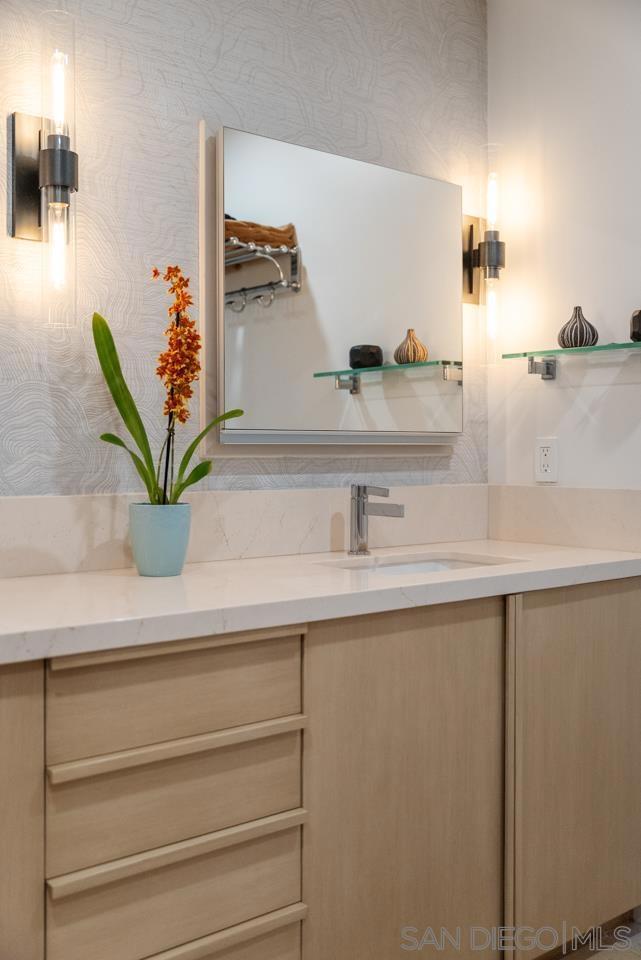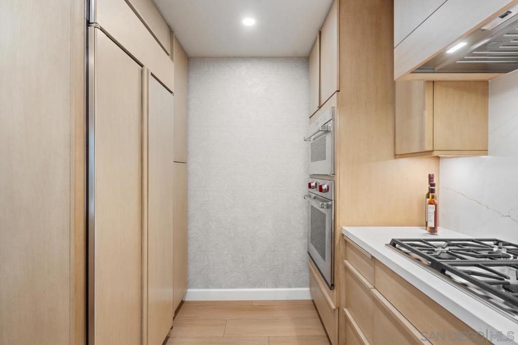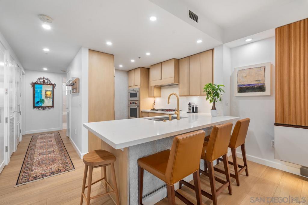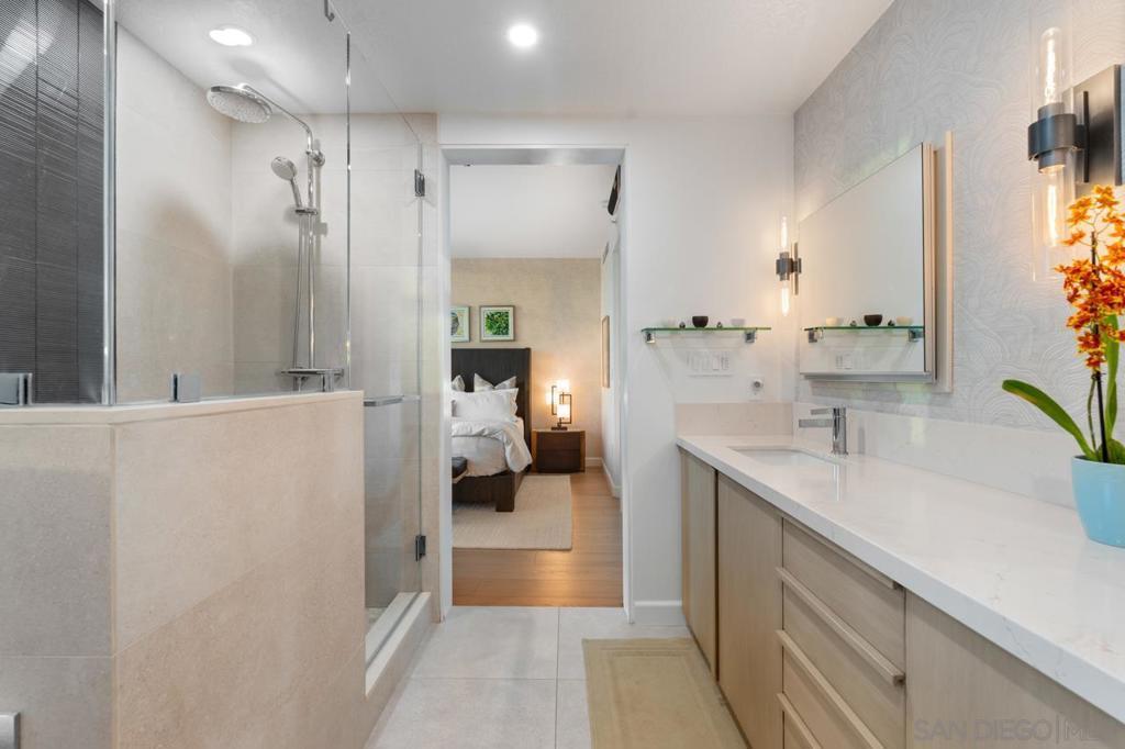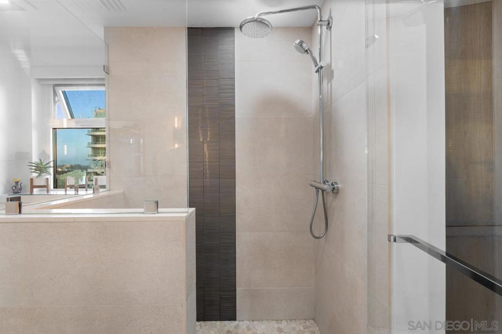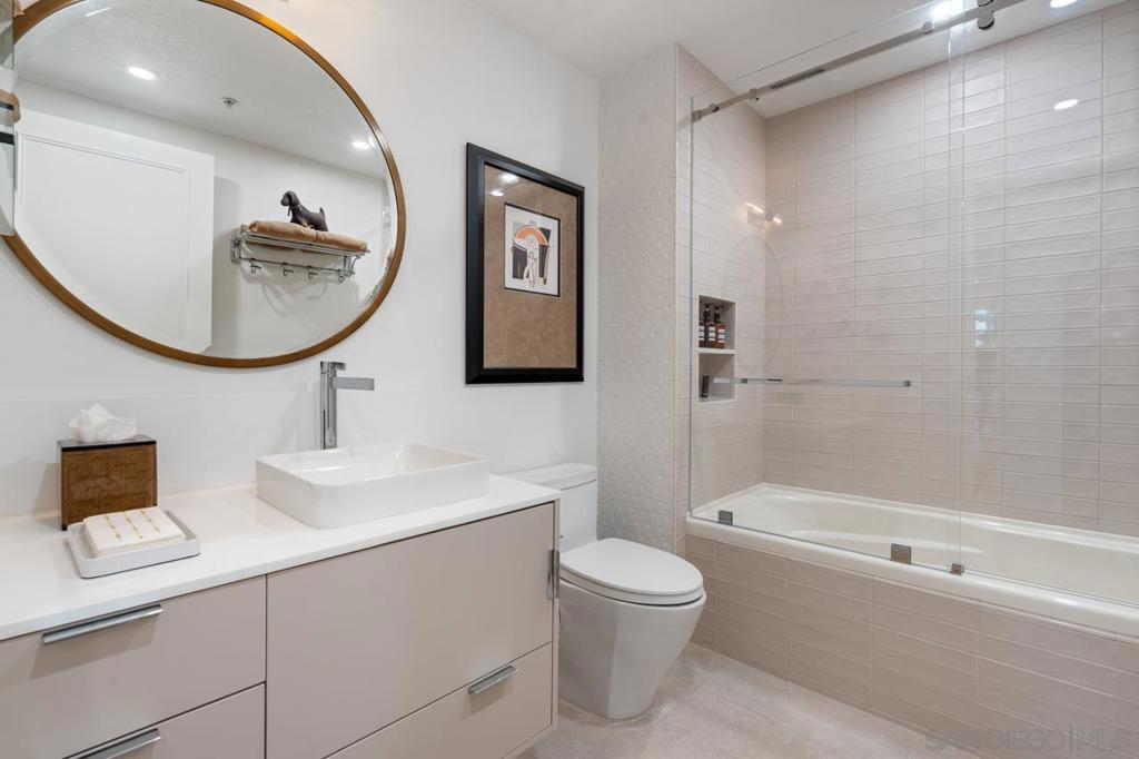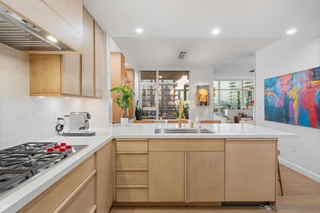 Soaring high above the city on the 31st floor of the distinguished Grande North, this rare corner residence commands a front-row seat to San Diego’s most breathtaking scenery. Walls of glass unveil an ever-changing canvas of San Diego Bay, the glittering skyline, distant mountains, and the vast Pacific beyond. From sunrise to sailboat regattas, golden sunsets to SeaWorld’s nightly fireworks—every moment is a masterpiece, best enjoyed from your own private terrace in the sky. This fully remodeled and professionally designed 2-bedroom, 2-bath home has been reimagined with a focus on luxury, comfort, and functionality. Both bathrooms have been completely renovated with designer finishes and thoughtful details. The chef-inspired kitchen is equipped with new Sub-Zero and Wolf appliances, quartz countertops, and sleek custom cabinetry. Enhancing the experience throughout the home is a state-of-the-art Bang & Olufsen surround sound system, delivering rich, immersive audio. Motorized window shades, custom closets, and built-in storage offer refined ease, while every design detail has been meticulously curated. This is more than a home—it’s a lifestyle inspired by The Art of Living. Whether you’re entertaining against a sunset backdrop or enjoying a quiet morning above the bay, this residence delivers a daily experience of beauty, style, and sophistication. Welcome home! Supplement...This residence in the sky has been completely reimagined with luxury, comfort, and style in mind. Every surface and system has been upgraded to create a refined, turnkey home. The chef’s kitchen features new Sub-Zero and Wolf appliances, custom cabinetry, and sleek quartz countertops—equally suited for everyday living and entertaining. Both the primary and guest baths have been fully renovated with spa-inspired finishes and designer touches. Thoughtful built-in storage enhances the primary bedroom, dining area, and guest room/office. Luxury vinyl flooring runs throughout, paired with electronic shades and custom lighting to elevate the ambiance. Additional upgrades include a Bang & Olufsen pre-wired sound system, new LG washer/dryer, updated plumbing with new shut-off valves, and a well-proportioned terrace perfect for enjoying panoramic sunsets and fireworks. The Grande North is one of San Diego’s most sought-after luxury high-rises, offering a full-service lifestyle just one block from the San Diego Bay and vibrant Little Italy. Residents enjoy an array of amenities including a striking lobby ( new furniture coming soon) with 24-hour security, high-definition surveillance, an 80’ heated lap pool, jacuzzi spa, BBQ area, and lush garden retreat. Additional features include concierge service, a well-equipped fitness center and elegant resident lounge. HOA covers high-speed Google fiber, gas, water, trash, and common area insurance. Moments away from the San Diego Bayfront, Rady Shell for waterfront concerts, the County Waterfront Park, Little Italy and the RADD District’s curated shops and restaurants, The Grande North blends urban sophistication with coastal charm—luxury living in the heart of San Diego. You are home!