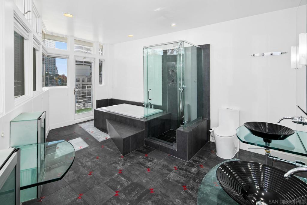 Live in one of San Diego’s most desirable locations in This award-winning architectural gem, "7 on Kettner", was one of Jonathan Segal's flagship creations. The central location is only a few blocks away from the new Rady’s shell, seaport village, police headquarters, embarcadero park and many shops and restaurants! Boasting three floors of and 2,368 sq.ft or sophisticated upscale living. This residence welcomes with modern chef inspired kitchen, new floors and a modern fireplace with a dramatic two-story great room. The new eat-in kitchen is perfectly designed to bring in light all day long. Enjoy luxury appliances, a fully re-modeled kitchen & expansive storage. The master suite enjoys the entire penthouse level of the residence, complete with a private terrace with wet bar. This space also has a fireplace, built-in drawers for clothing and media, and dual walk-in closets. Master bath includes a soaking tub, free-standing shower, dual sinks and is also flooded with natural light. This bedroom & bathroom share views of the city's skyline through 30-plus windows in this architectural gem! Experience the finest in lighting fixtures and systems throughout.