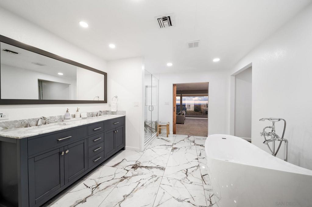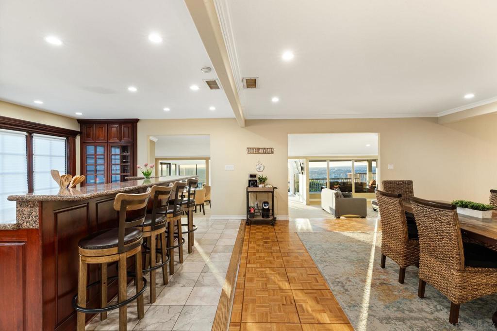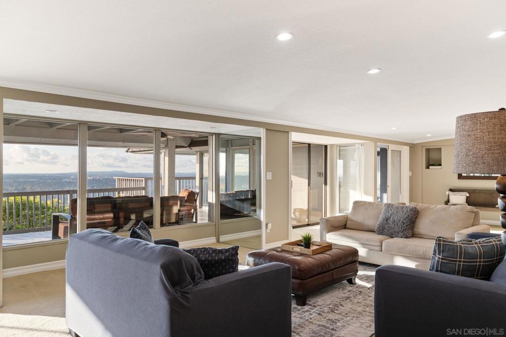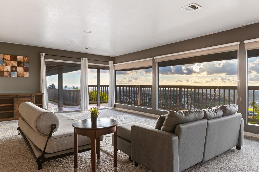 SHORT-, MID- & LONG-TERM FURNISHED RENTAL — Stunning View Estate with Pool & Game Room Panoramic ocean, city, and sunset views define this remarkable single-story hilltop estate in La Mesa. Formerly owned by a celebrity, this expansive 5,600+ sq ft home offers 6 bedrooms, 4 bathrooms, and unforgettable west-facing views from most rooms. Ideal for large families or two families traveling together, the open floor plan allows natural light and scenery to flow seamlessly throughout the living spaces. The home features a spacious living room, family room, and dedicated game room with pool table. The chef’s kitchen is fully equipped with stainless steel appliances, generous pantry space, bar seating, and multiple dining areas including a table for six, island seating, and breakfast nook. Outdoor living includes a saltwater pool with waterfall, propane fire pit, BBQ grill, and expansive patio perfect for relaxing and enjoying San Diego’s year-round climate. A removable pool fence is available upon request. This is not a party house and is best suited for respectful guests. Conveniently located minutes from La Mesa Village and a short drive to downtown San Diego, beaches, and major attractions. Sleeping setup (max 16): Primary CA King; Queen; Two Fulls; Queen; King; Kids room with Twin plus Twin bunk; plus living room sleeper sofa and twin ottoman bed. Rates vary by season and length of stay. Published amounts are estimates; final pricing, fees, and availability are subject to change until a signed agreement. Please inquire for an exact quote.
