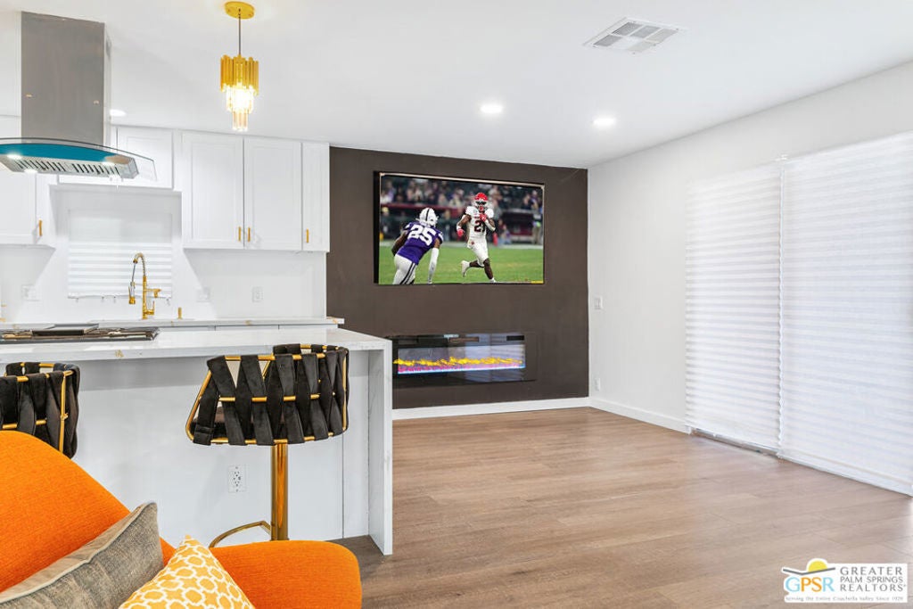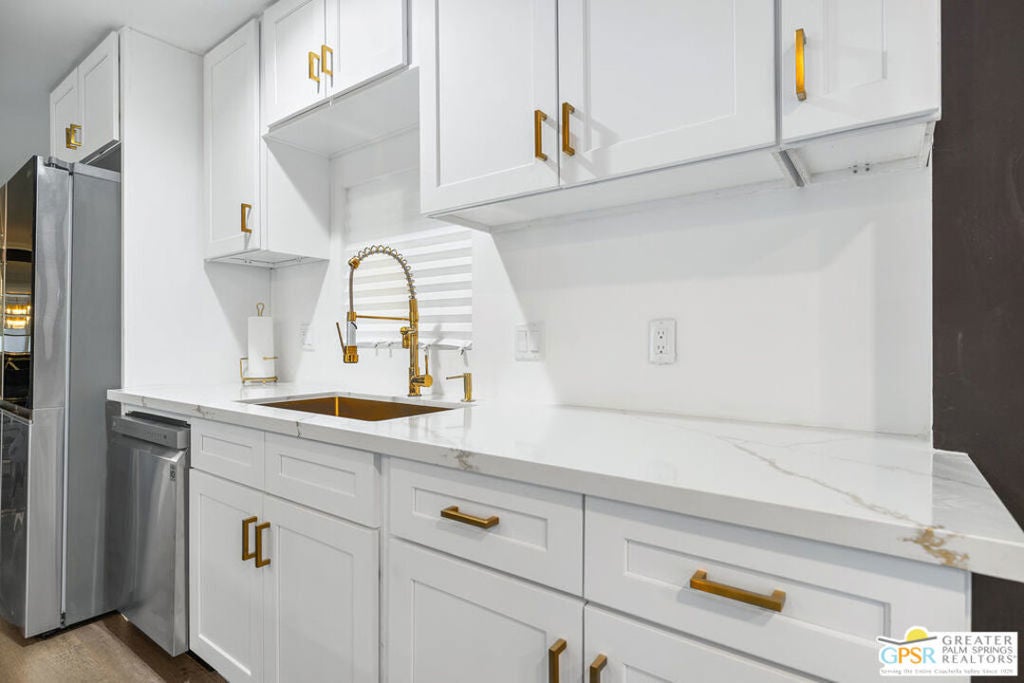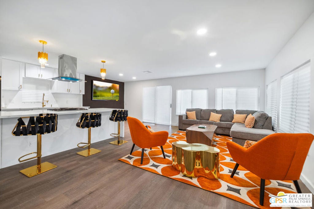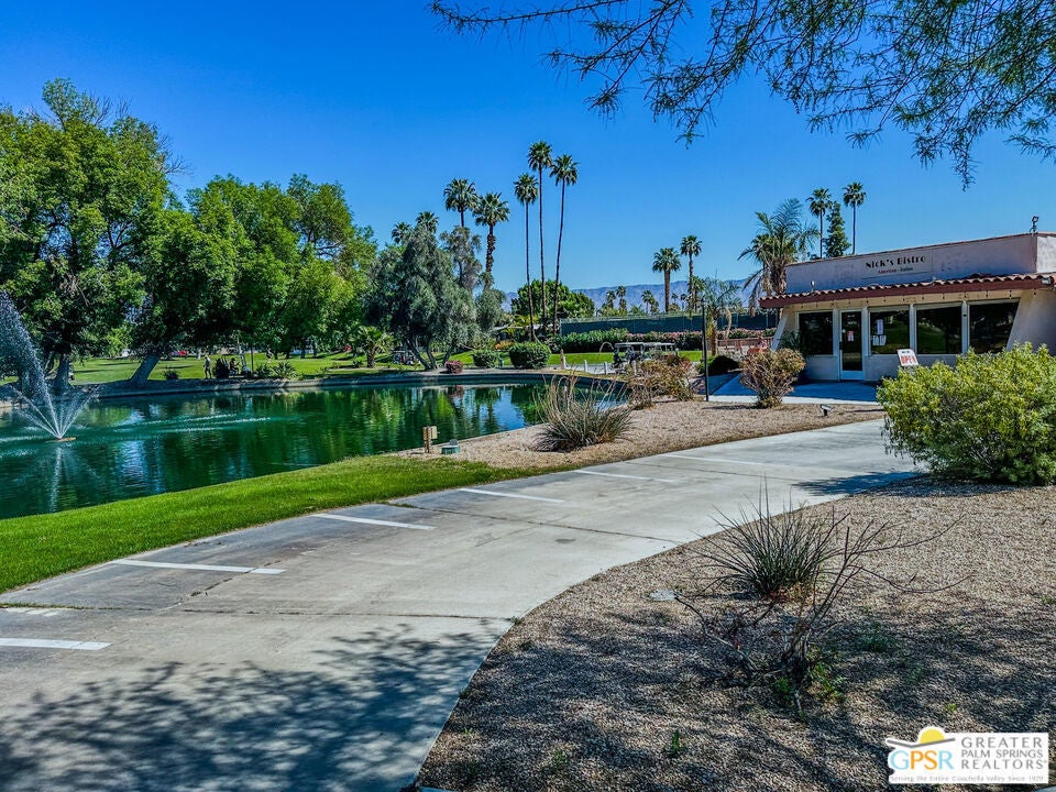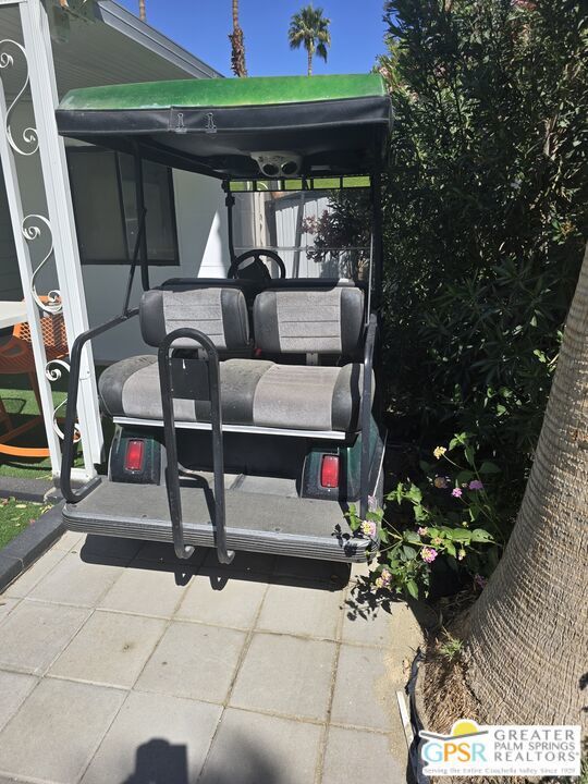 Come see this updated, newly painted inside and out, 1440 sq ft, 2bed/2bath home situated on the golf course with fabulous golf/mountain views. Property is located in one of the premier 55+ guard gated golf course communities in the valley with personal & social activities galore for the Active Adult. This home has so many NEW improvements exterior and interior which includes but is not limited to: new fencing leading to expansive and visually pleasing front door patio, desert and artificial grass landscaping with accented exterior lighting all around, your personal practice putting green (off the golf course patio) to work on the most serious part of your game or just to relax with some outdoor activity. There's an outdoor stone top table to enjoy the views, sip your favorite cocktail/enjoy your favorite meal all while watching the duffers do their magic. Interior changes start with new front door, includes drywalling throughout, vinyl flooring throughout, double pane windows for energy savings, recessed lighting, designer fans, decorative fireplace, power outlets with USB/Type C receptacles. The kitchen features stone water counters, all new appliances (all internet connectable). The wet bar has even been updated with 'live wood' bar tops and a almost ceiling to floor wine cooler. The primary bedroom features a designer full wall closet. Both bathrooms feature floating vanities, new toilets. Primary bathroom has walk in shower while guest bathroom has jacuzzi tub. Laundry room features top of the line Washer/Dryer units. All furnishings, 3 mounted TVs, golf cart come with a full price offer, otherwise negotiable outside of escrow. A full price offer will also garner a $10,000 credit that can be used by buyers for first 6 months of rent space!! Date Palm CC has many other amenities besides golf which includes onsite restaurant, tennis/pickleball courts, a sports pavilion for billiards, ping-pong tables etc, satellite pools and spas, fitness rooms, large clubhouse with main pool/spa. Don't let the space rent rate deter you. It is commensurate with what this park has to offer! over any like it in the valley. All this home really needs is... YOU!!