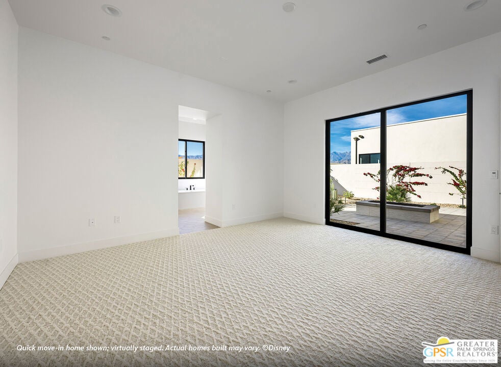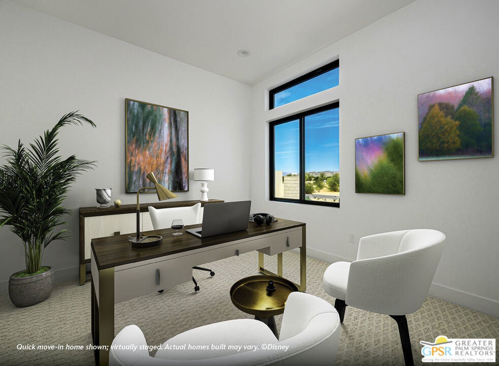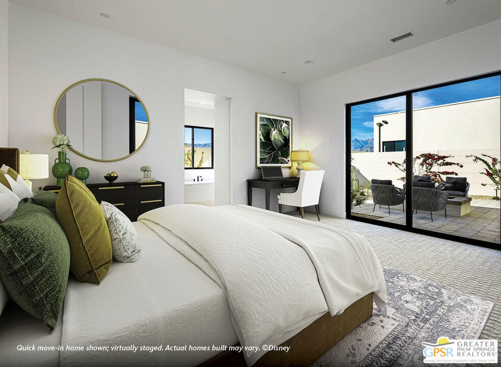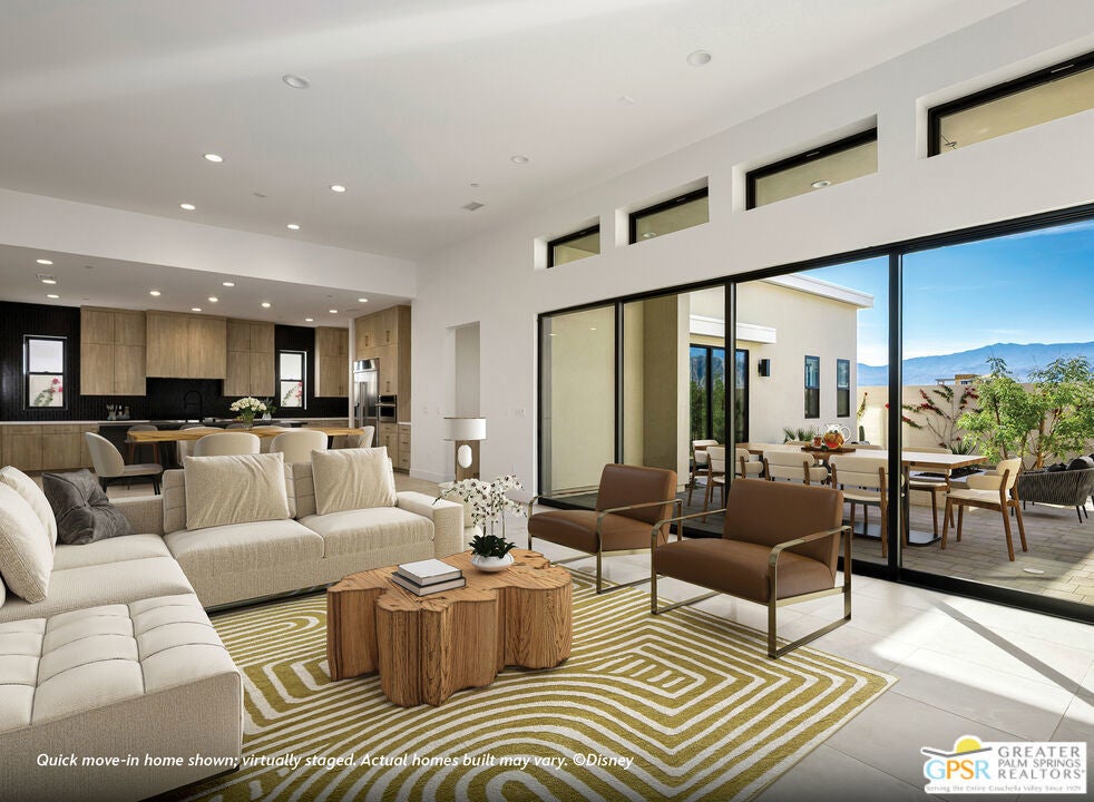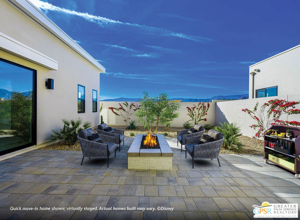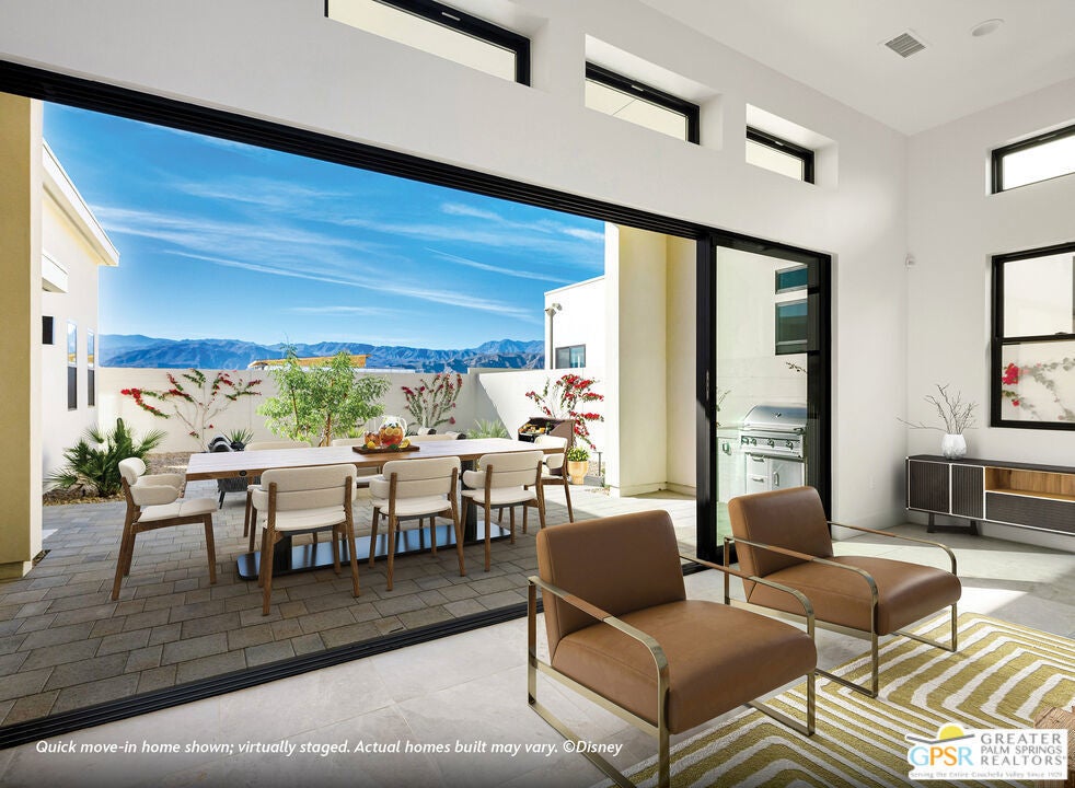 Welcome to Cotino, a Storyliving by Disney community, located in Rancho Mirage. Nestled on a great street and in close proximity to the voluntary Artisan Club and Cotino Bay, this exquisite 3-bedroom, 3-bathroom home is approximately 2,925 square feet and thoughtfully designed for those seeking a quick move-in home at Cotino. Built by Shea Homes as part of their Grand Collection, this stunning Sonora design showcases a distinctive Oasis exterior elevation that blends modern style with timeless elegance. This residence invites you to discover a thoughtfully designed open-concept floor plan that seamlessly connects spacious living areas for comfort and ease. The elegant primary suite serves as a private retreat, featuring an expansive bath and a generous walk-in closet. Two secondary bedrooms, each with their own baths, provide ample space for guests or family. The well-appointed kitchen is a chef's dream, showcasing gourmet-quality finishes, a large central island perfect for gathering, and a walk-in pantry for abundant storage. Step outside to the expansive outdoor living area, accessible from both the great room and the primary suite, ideal for entertaining or enjoying tranquil moments. A versatile flex space offers the perfect setting for an office, entertainment room, or hobby studio, tailored to your lifestyle needs. Cotino combines natural beauty, charming parks, and the magic of Disney to create a unique and vibrant community -- perfect for beginning your next chapter. Come see for yourself and experience all that this exceptional community has to offer.