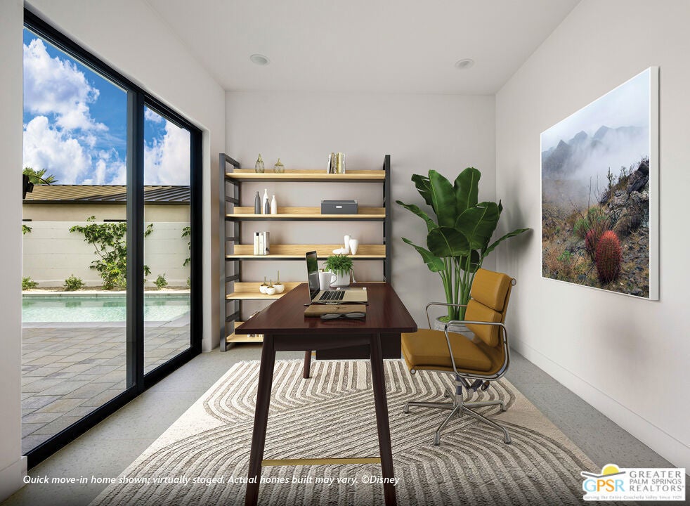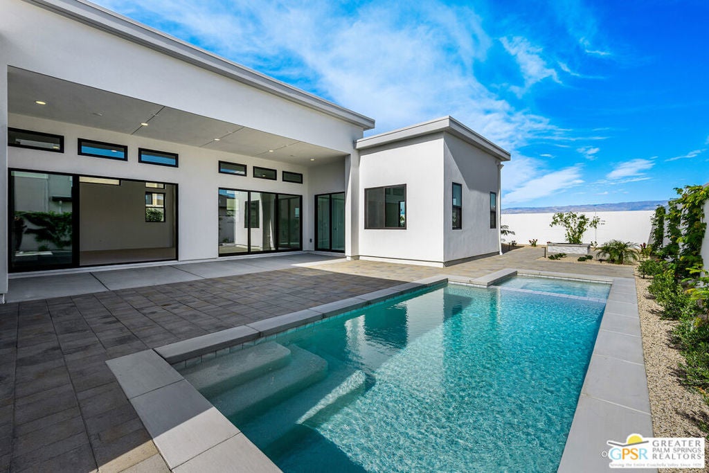 Welcome to Cotino, a Storyliving by Disney community, located in Rancho Mirage. Nestled on a great street and in close proximity to the voluntary Artisan Club and Cotino Bay, this exquisite 3-bedroom, 3-bathroom, home with a gorgeous pool and spa is approximately 2,925 square feet and thoughtfully designed for those seeking a quick move-in home at Cotino. Built by Shea Homes as part of their Grand Collection, this stunning Melodia design showcases a distinctive Oasis exterior elevation that blends modern style with timeless elegance. This residence invites you to discover a thoughtfully designed open-concept floor plan that seamlessly connects spacious living areas for comfort and ease. The elegant primary suite serves as a private retreat, featuring an expansive bath and a generous walk-in closet. Two secondary bedrooms, each with their own baths, provide ample space for guests or family. The well-appointed kitchen is a chef's dream, showcasing gourmet-quality finishes, a large central island perfect for gathering, and a walk-in pantry for abundant storage. Step outside to the expansive outdoor living area, accessible from both the great room and the primary suite, ideal for entertaining or enjoying tranquil moments. A versatile flex space offers the perfect setting for an office, entertainment room, or hobby studio, tailored to your lifestyle needs. Cotino combines natural beauty, charming parks, and the magic of Disney to create a unique and vibrant community -- perfect for beginning your next chapter. Come see for yourself and experience all that this exceptional community has to offer.
