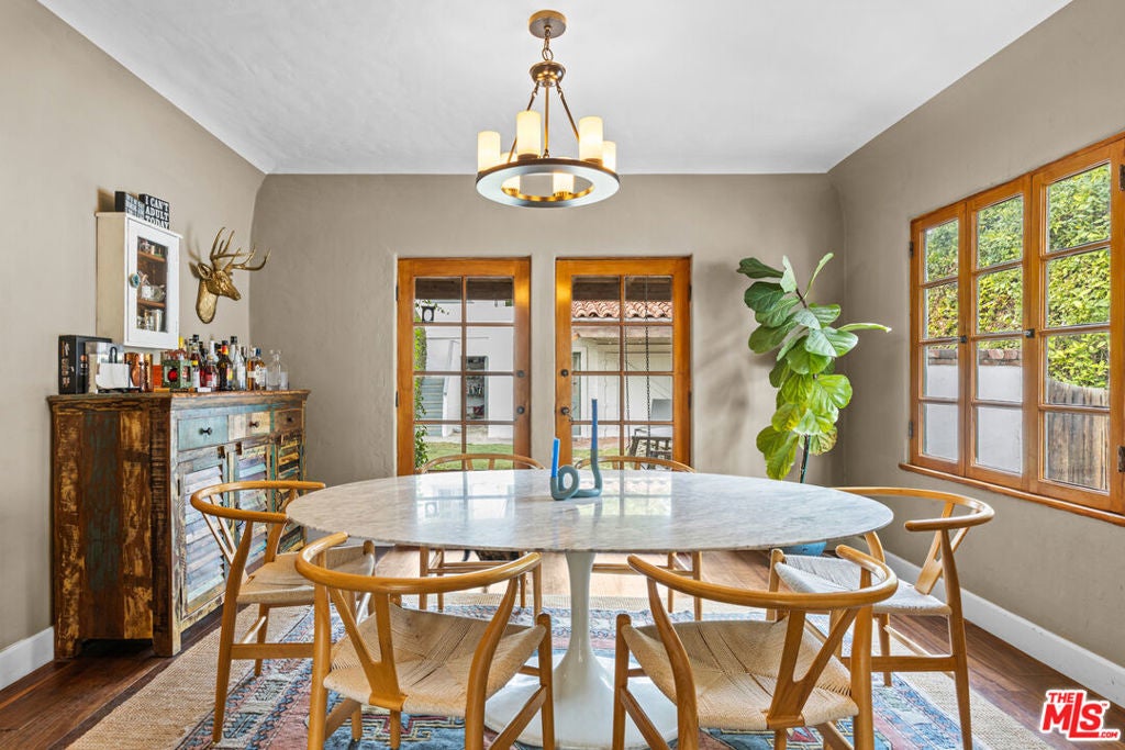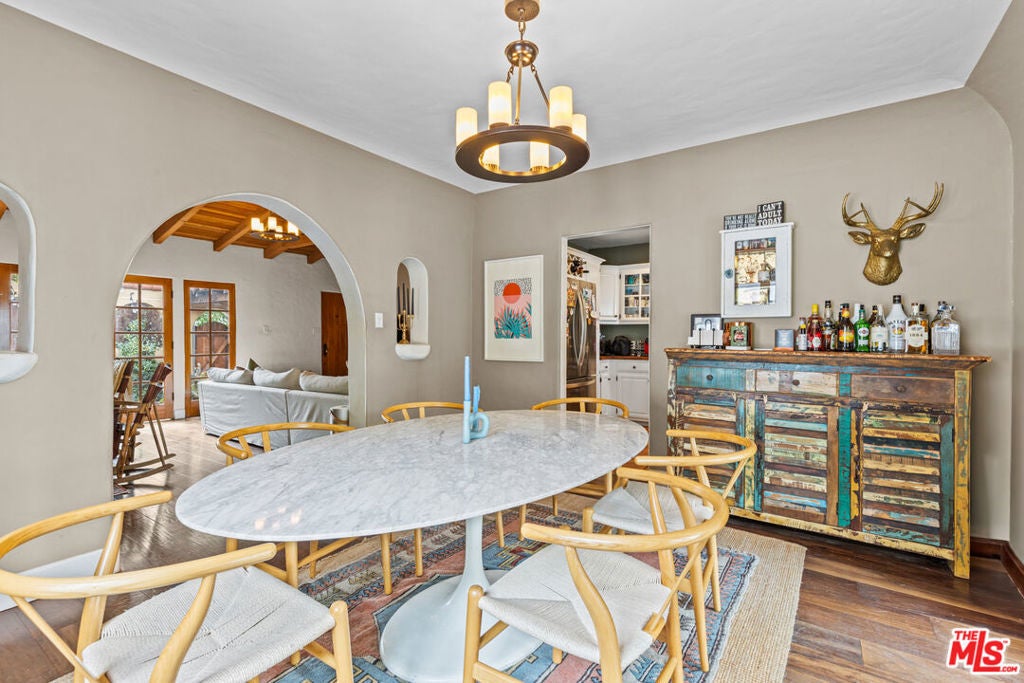 Now will be delivered vacant. This Spanish-style property exudes character and charm, featuring exposed wood beams and excellent bones throughout. The main house offers 2 bedrooms and 2 baths, complemented by a permitted two-story bonus structure that adds exceptional versatility. A detached, fully finished garage provides additional functional space. Beautiful original details have been thoughtfully preserved, highlighting the home's unique architectural appeal. Overall, the property blends timeless craftsmanship with valuable modern potential.