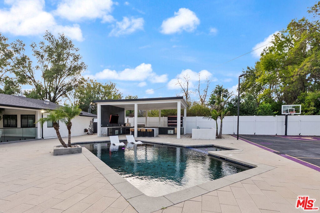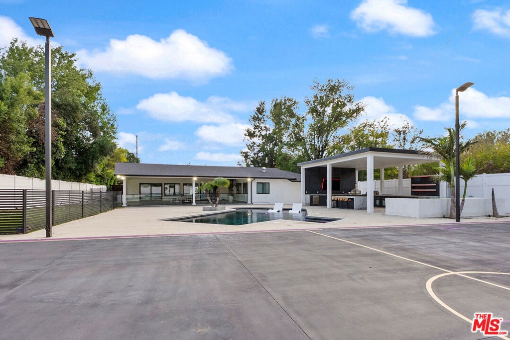 Tucked behind gates and set on an expansive 30,000+ square-foot lot, this extraordinary private estate delivers a rare blend of space, privacy, and resort-style entertainer's dream rarely found at this price point. The residence offers 4 bedrooms and 6 bathrooms, with every bedroom featuring its own private ensuite, providing exceptional comfort and privacy for family and guests alike. The primary suite is a true retreat, boasting dual walk-in closets and a spa-inspired bathroom complete with dual vanities, a deep soaking tub, and an oversized luxury shower, creating a serene, hotel-like experience. Outdoors, the property truly shines with a full-length basketball court, resort-style pool and jacuzzi, and multiple curated gathering spaces ideal for hosting unforgettable events. The grounds are fully outfitted for elevated outdoor living, including a custom Italian pizza oven, two additional BBQ stations, an outdoor fire pit, and a fully equipped outdoor kitchen complete with dual refrigerators, bar, island, integrated trash, television, and surround sound perfect for seamless indoor-outdoor entertaining. A striking Buddha statue welcomes you at the driveway, setting the tone for the estate's serene yet grand presence. With parking for 50+ vehicles, the property is exceptionally suited for car collectors, private events, or extended family living.The interior offers an excellent opportunity for personalization, with select updates such as flooring, paint, and minor cosmetic improvements to suit the next owner's taste reflected in the pricing and presenting strong value for the land, amenities, and scale offered. Offering exceptional privacy, space, and lifestyle potential, this one-of-a-kind property is ideal for an owner-user seeking a personal retreat, an entertainer's compound, or a value-driven long-term investment.
