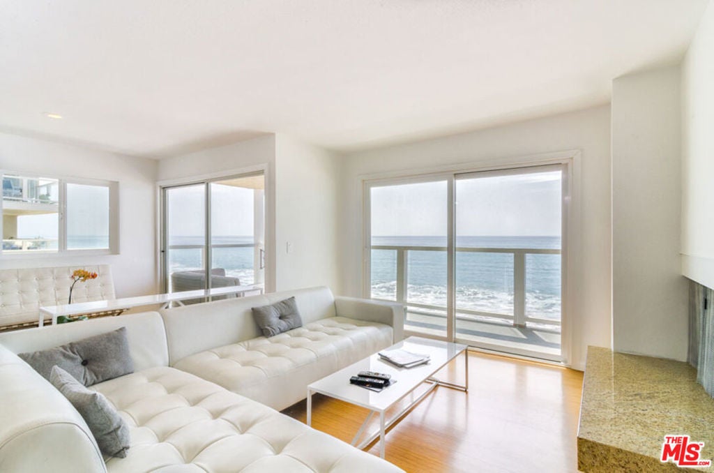 Right on the beach! Take a sunrise or sunset stroll on pristine Carbon Beach. It's right there, at your feet. Or settle onto your balcony at The Malibu and watch the entire panorama unfold before you: shoreline, ocean, islands, dolphins, pier, and the ever-changing drama of the sky. This freshly painted oceanfront condo is beautifully appointed for comfort, style, and entertaining, with easy access to Malibu dining and shops. New flooring throughout creates a luminous and relaxing atmosphere, with an open layout and every comfort. The living room, with a fireplace and wall-to-wall windows, opens onto the beachfront balcony, as does the dining area. The kitchen is open to both the living and dining areas. The primary suite has ocean views while the second bedroom could double as an office or media room. The unit is equipped with washer and dryer, a brand new air conditioning/heating unit and The Malibu amenities include a swimming pool, outdoor grills, assigned parking in a secured garage, four shared laundry facilities, security cameras, and direct access to the beach. Central, contemporary, and comfortable, this Malibu property has it all.