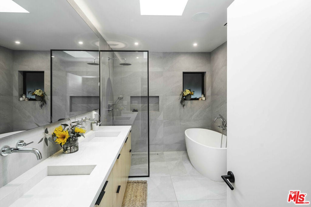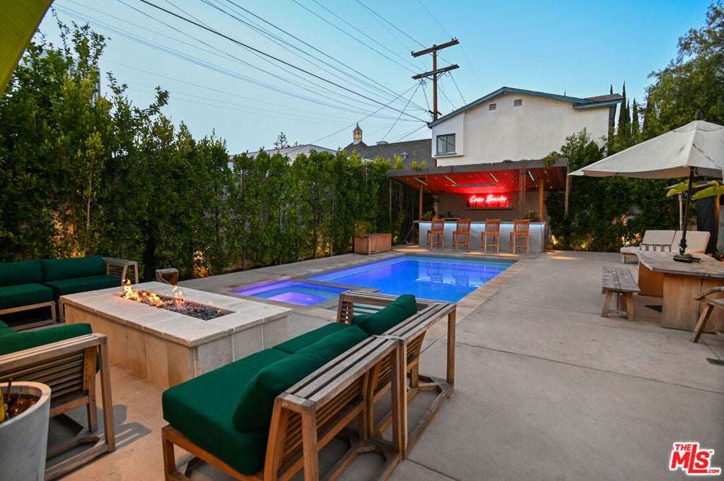 Available FULLY FURNISHED, Flexible Lease Length! Welcome to "Casa Bonita," a luxurious sanctuary nestled in the heart of LA on a peaceful and quiet street. One of the only DOUBLE-WIDE LOT in Miracle Mile, giving the villa an exceptionally open feel. This exquisite villa is just steps away from Museum Row, Equinox, the Grove, the hottest restaurants and nightlife, Whole Foods, Trader Joe's, and more. This villa boasts an array of luxurious amenities, including an outdoor gazebo/tiki bar, a heated pool and spa, an outdoor shower, and both outdoor and indoor fireplaces. The earthy interior design exudes tranquility, making you feel as if you're on a perpetual vacation. With 5 bedrooms and 5 1/2 bathrooms, this spacious home features a detached, stylish guest house, an open floor plan, and a cozy ambiance. The bifold doors create a seamless indoor/outdoor environment, perfect for enjoying the beautiful LA weather. The chef's kitchen is equipped with top-of-the-line appliances. Step outside to find a lush side yard, fruit trees, and a cherry blossom tree, creating a natural dreamscape right in the center of Los Angeles. The property also includes an outdoor 220v car charger for eco-friendly automobiles. This smart home is equipped with a state-of-the-art security system, Lutron smart lights, and a 2-zone NEST climate system, ensuring both luxury and convenience at your fingertips. Welcome to "Casa Bonita," where everyday living feels like a lavish retreat.