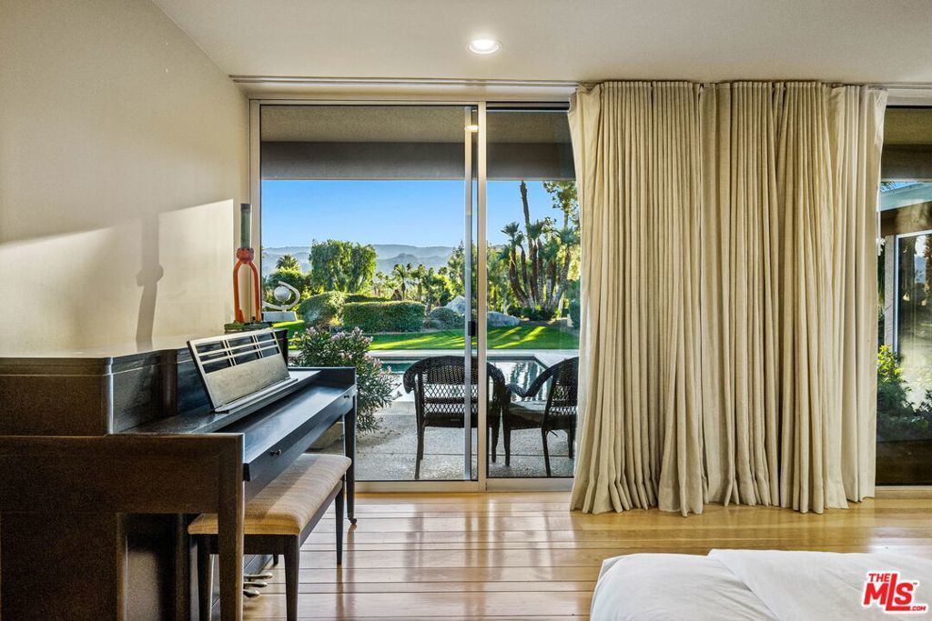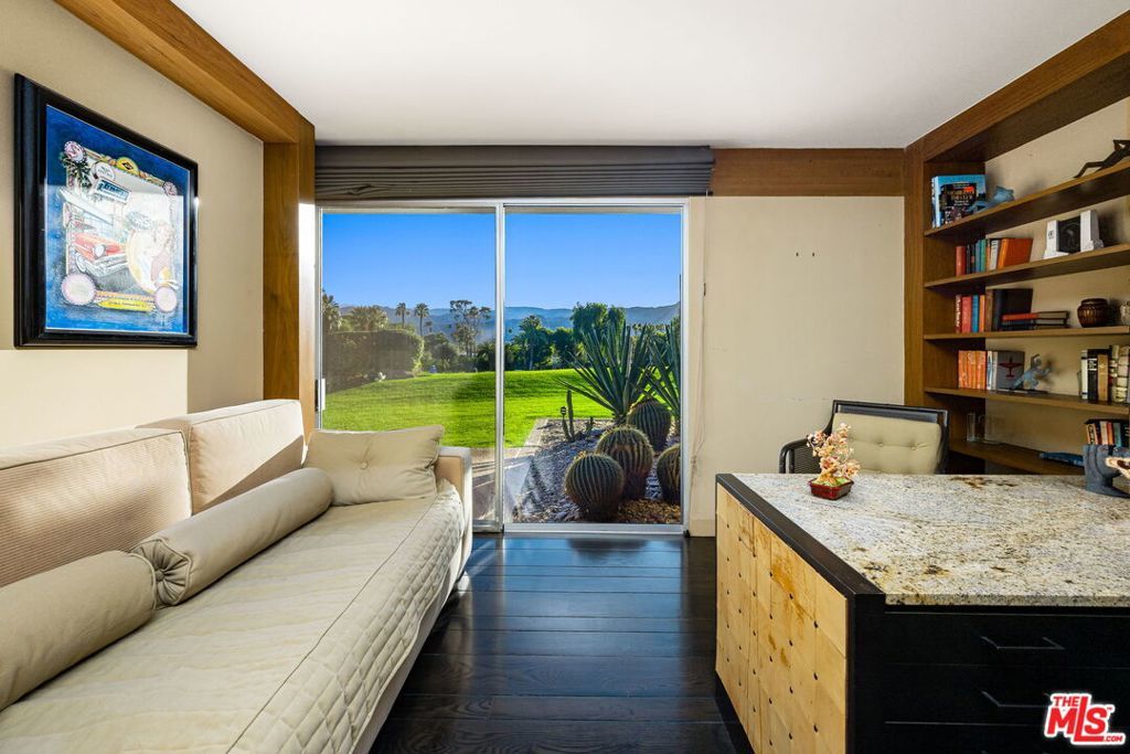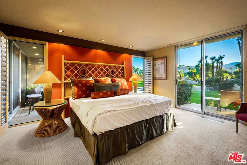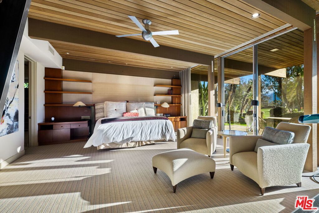 An Artful Masterpiece on the Fairway 13th hole. Discover a rare intersection of architectural pedigree and curated luxury. Designed by the legendary William Cody, this sprawling single-level retreat spans four parcels, offering over an acre of absolute privacy. From the moment you enter, you are greeted by floor-to-ceiling glass walls that frame the Santa Rosa Mountains. The heart of the home is a dramatic great room featuring a unique double-sided fireplace that connects the interior warmth to the desert night. Whether you are hosting cocktails at the five-seat wet bar or preparing a feast in the gourmet kitchen outfitted with black granite, dual islands, and professional-grade appliances, every detail serves a life of refinement. Oversized living room, formal dining room with sit down bar along with a unmatched family room for movie night and a late night lounge located in a separate wing of the estate. The estate is intelligently segmented into wings to balance social connection with total solitude: The East Wing: A sanctuary housing the primary suite with endless closets, dressing rooms, private den and dual bathrooms all with jaw dropping views, two additional bedrooms, and a private office all with direct patio access. The West Wing: A sophisticated enclave of two guest suites, one of which is the second primary, designed for flexible living or an interconnected private suite. The Casita: A fully self-contained residence featuring its own living area, kitchen, and two private suites along with a private entry. Outside, the experience is unrivaled. Enjoy a private tennis match with elevated viewing deck, a dip in the heated pool, or an al fresco dinner prepared in the outdoor kitchen as the sun sets over the greens.