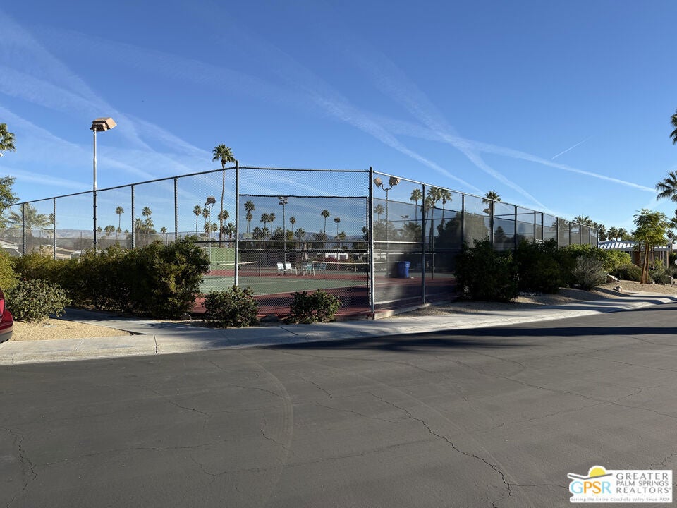El Dorado Palm Estates is an active over 55 community with CC&Rs and Homeowner assn. The community is gated and close to Target Shopping Center and Trader Joes. The second (smaller) community pool is directly across the street from this home. This home has solar to help with your summer electric bills. The community has many amenities and is very party/social if thats what you like or very quiet atmosphere if you prefer. There is parking for two cars tandem in the covered carport. There are tenants in residence now moving the end of January. We need a few hours notice to preview the home please. There is a community parking area for RVs if needed for a reasonable fee to residents. This community has all the clubs, pools and tennis courts, (also painted for pickleball). It has a very large separate spa, a library, and a well equipped work out room. Gated entry.