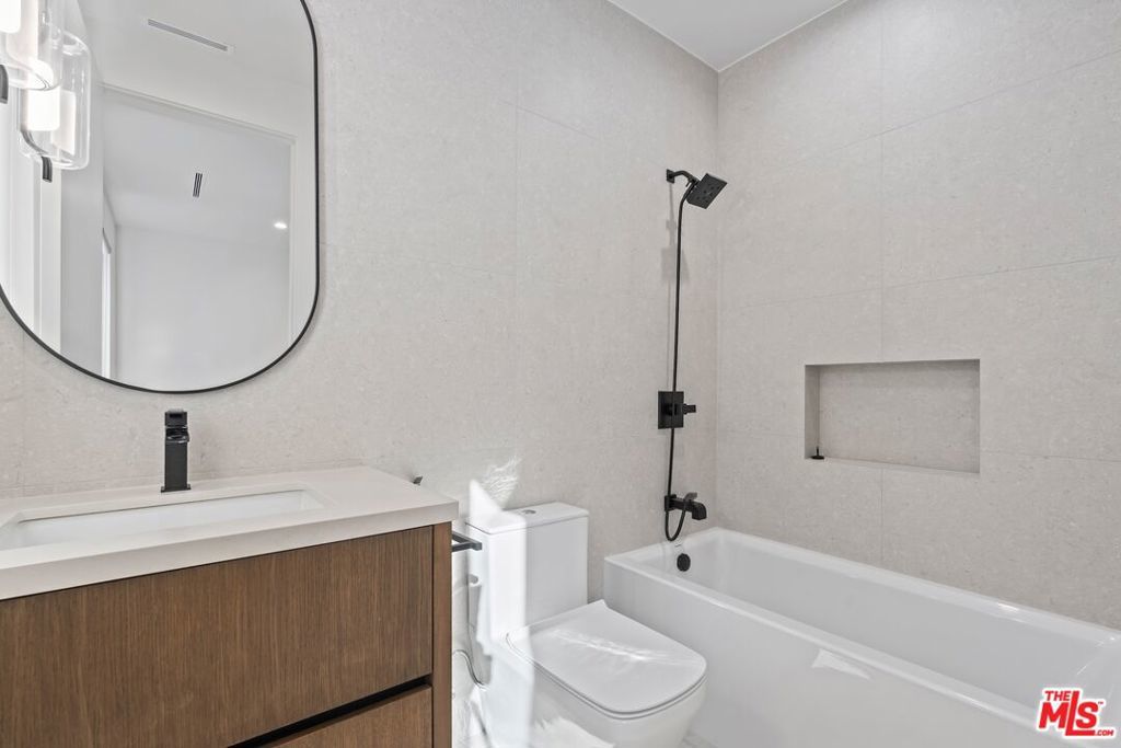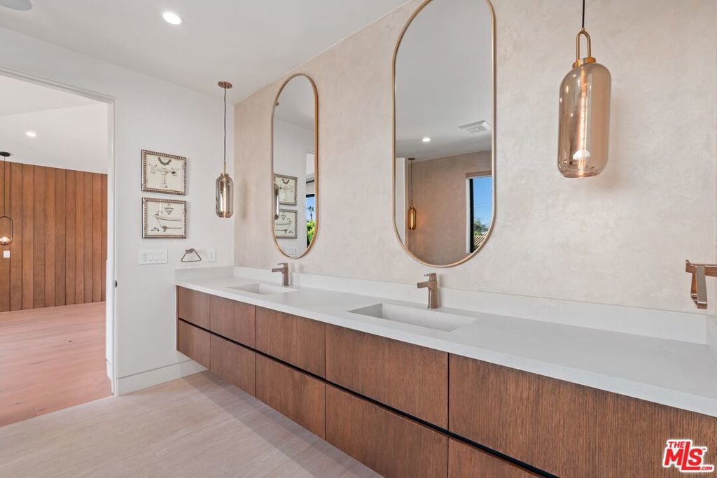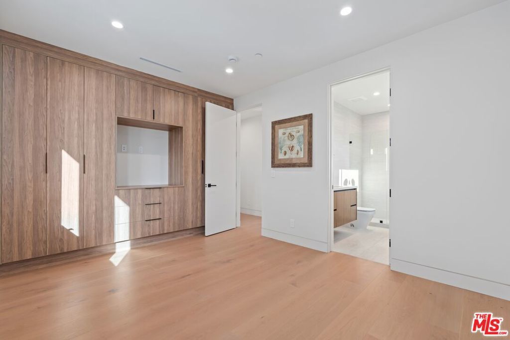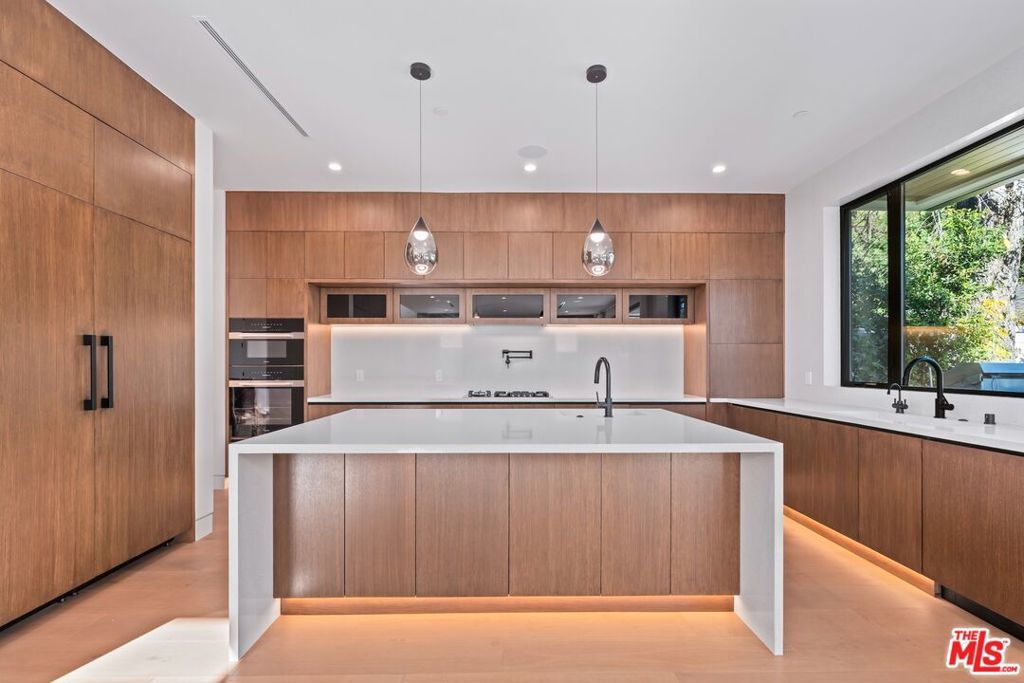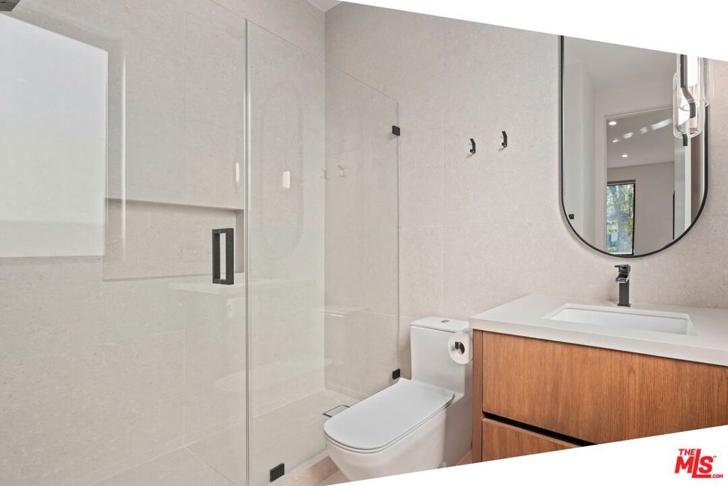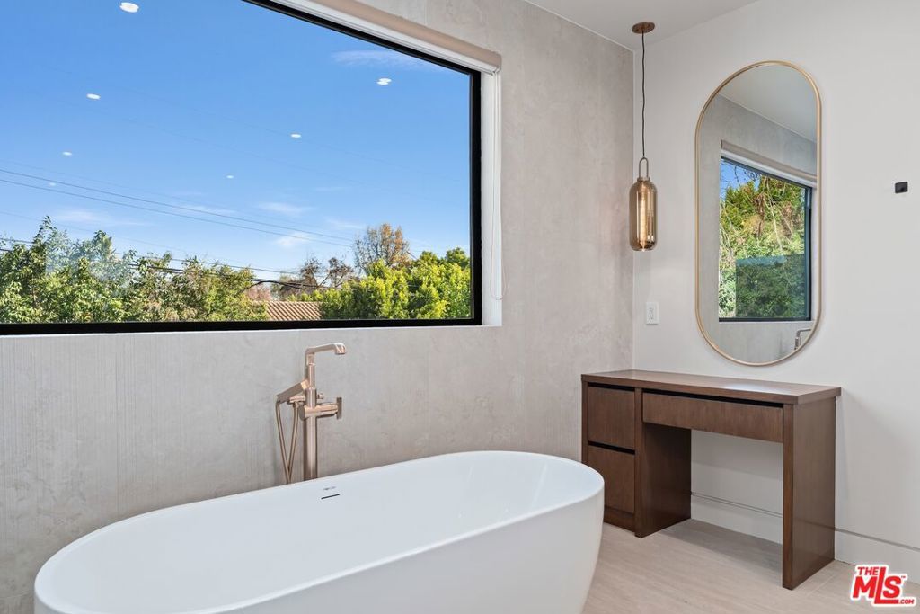Welcome to The Noble - a gated modern farmhouse in one of Sherman Oaks' most sought-after neighborhoods. This 3,800 sqft architectural home features 4 bedrooms, 5.5 bathrooms, and a cabana, blending contemporary design with timeless elegance. Soaring ceilings, glass walls, and premium finishes including European oak floors, stone and wood accents, Venetian plaster, and designer lighting create a bright, open atmosphere. The open-concept layout connects the living, dining, and chef's kitchen, equipped with Miele smart appliances, quartz countertops, a waterfall island, and walk-in pantry. Sliding glass doors open to a private backyard oasis with pool, spa, fire pit, outdoor kitchen, BBQ, lawn, and a cabana with bath perfect for a gym or pool house.Upstairs offers three ensuite bedrooms and a luxurious primary suite with fireplace, walk-in closet, spa-like bath, and a balcony overlooking the yard. Additional highlights include a Crestron smart home system, EV charging prep, and a quiet tree-lined location just minutes from Ventura Blvd, with easy access to the 405 & 101.