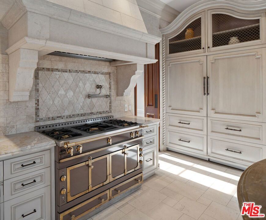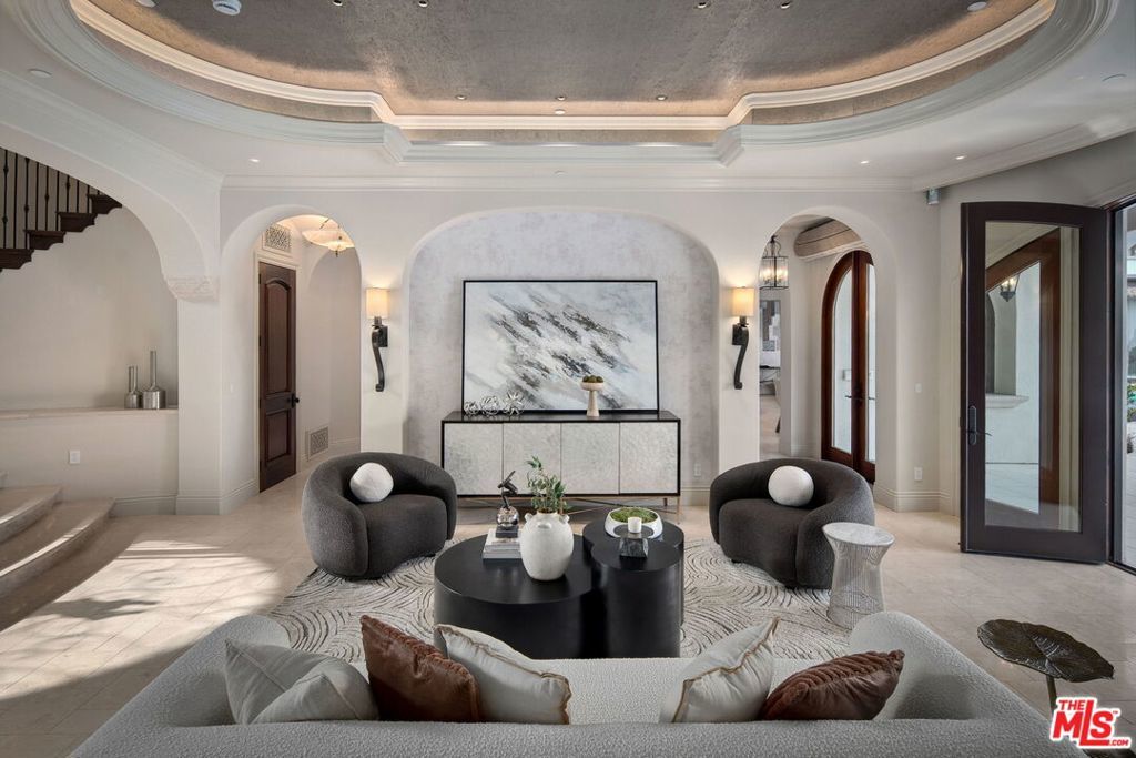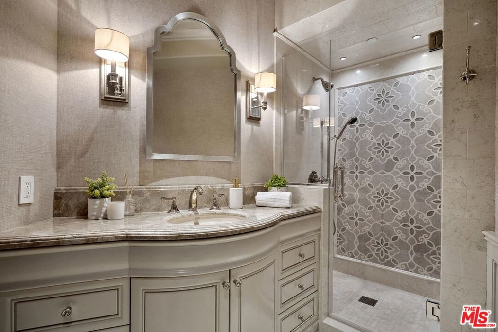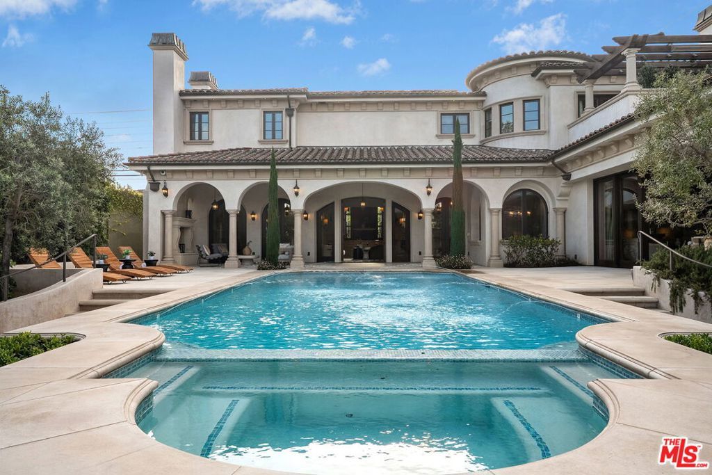 Nestled on a coveted 16,008 sq. ft. lot in one of North Kentwood's most desirable neighborhoods, this extraordinary Mediterranean estate blends timeless elegance with modern luxury. Offering 8,733 sq. ft. of meticulously crafted living space and a 1,166 sq. ft casita, this private retreat showcases unparalleled craftsmanship and high-end finishes, including Italian marble, limestone, and natural woods, in a thoughtfully designed layout that exudes sophistication and warmth. The main residence features five bedrooms, seven bathrooms, and two half baths, complemented by a two-bedroom, one-bath guest house an ideal haven for multi-generational living or stylish guest accommodations. Both homes are fully equipped smart homes, powered by advanced Crestron technology, allowing seamless control of lighting, climate, security, and entertainment systems. Constructed with flame-retardant lumber, a robust water-softening and filtration system, solar panels, and a hard-wired security system with geo-fencing, the estate offers state-of-the-art innovation with enduring quality. Enter through the grand foyer, where soaring ceilings and a sweeping curved double staircase immediately set a tone of opulence. The open yet well-defined floor plan flows effortlessly between formal and informal living spaces. A stately formal living room with a gas fireplace and mahogany doors opens to the lush backyard, while the sophisticated formal dining room offers a perfect setting for elegant gatherings. The family room, featuring a striking coffered ceiling, pocket doors, and an outdoor fireplace, invites relaxation and seamlessly merges indoor and outdoor living. The heart of the home is an expansive kitchen equipped with high-end appliances, a La Cornue stove, a spacious marble island, and a separate chef's kitchen for effortless entertaining. A full-service wet bar enhances the home's hosting capabilities. The main level also includes a private office with coffered ceilings and French doors opening to the front loggia and garden, a hand-carved limestone staircase spiraling around a three-story touret with niche lighting, an adjacent powder room, and an elevator for added convenience. Designed for both grand entertaining and serene retreats, the backyard is a true sanctuary, featuring a large salt-water pool and spa, two outdoor fireplaces, and a tranquil fountain surrounded by lush, mature landscaping that offers exceptional privacy. Upstairs, the primary suite is a luxurious escape, complete with a private balcony offering sweeping views, a cozy fireplace, a spa-inspired ensuite bath with heated floors, a soaking tub, a separate shower, dual vanities, and a refrigerated bar area. Expansive dual closets provide impeccable storage. Four additional en-suite bedrooms ensure comfort and privacy for family and guests, while a conveniently located laundry room adds everyday ease. A first-floor en-suite bedroom, with a refrigerated minibar and French doors to the garden, offers flexibility and accessibility. Entertainment and lifestyle amenities abound, including a temperature-controlled wine cellar for collectors, a private state-of-the-art movie theater with custom seating, an adjacent full-service wet bar and snack center with microwave and refrigerated drawers, a full salon with hair and nail stations, a dedicated gift wrapping, hobby, and homework center, plus a large gym for wellness enthusiasts. The separate guest house offers fully independent living with a custom kitchen, washer/dryer, two large bedrooms, a full bath, and a separate outdoor pool bath, ensuring extended family or guests enjoy complete comfort and privacy. A four-car garage and a gated driveway provide secure parking for six or more vehicles, adding everyday practicality to the estate's grand presence. This rare offering presents a unique opportunity to own an estate that flawlessly blends luxury, functionality, and exquisite design all within the vibrant heart of Westchester.